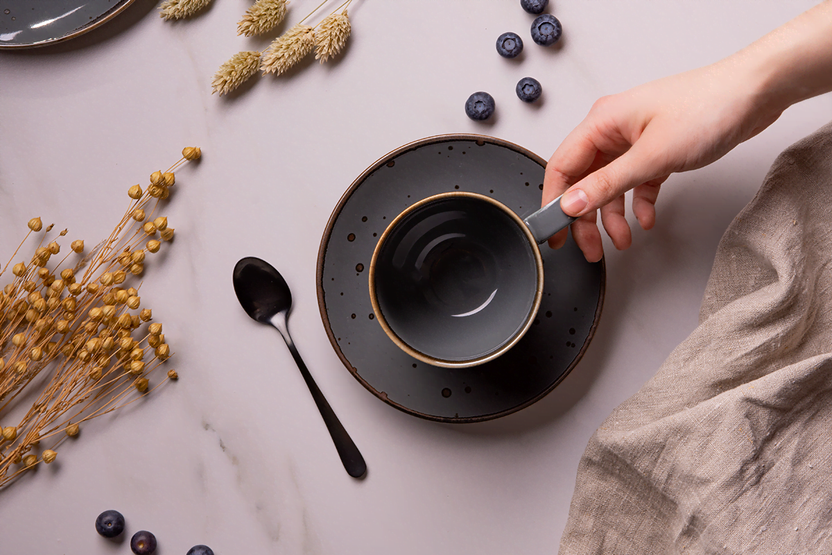 ALUMINA Objav celú kolekciu Šálka s tanierikom- farba Chata Grafit