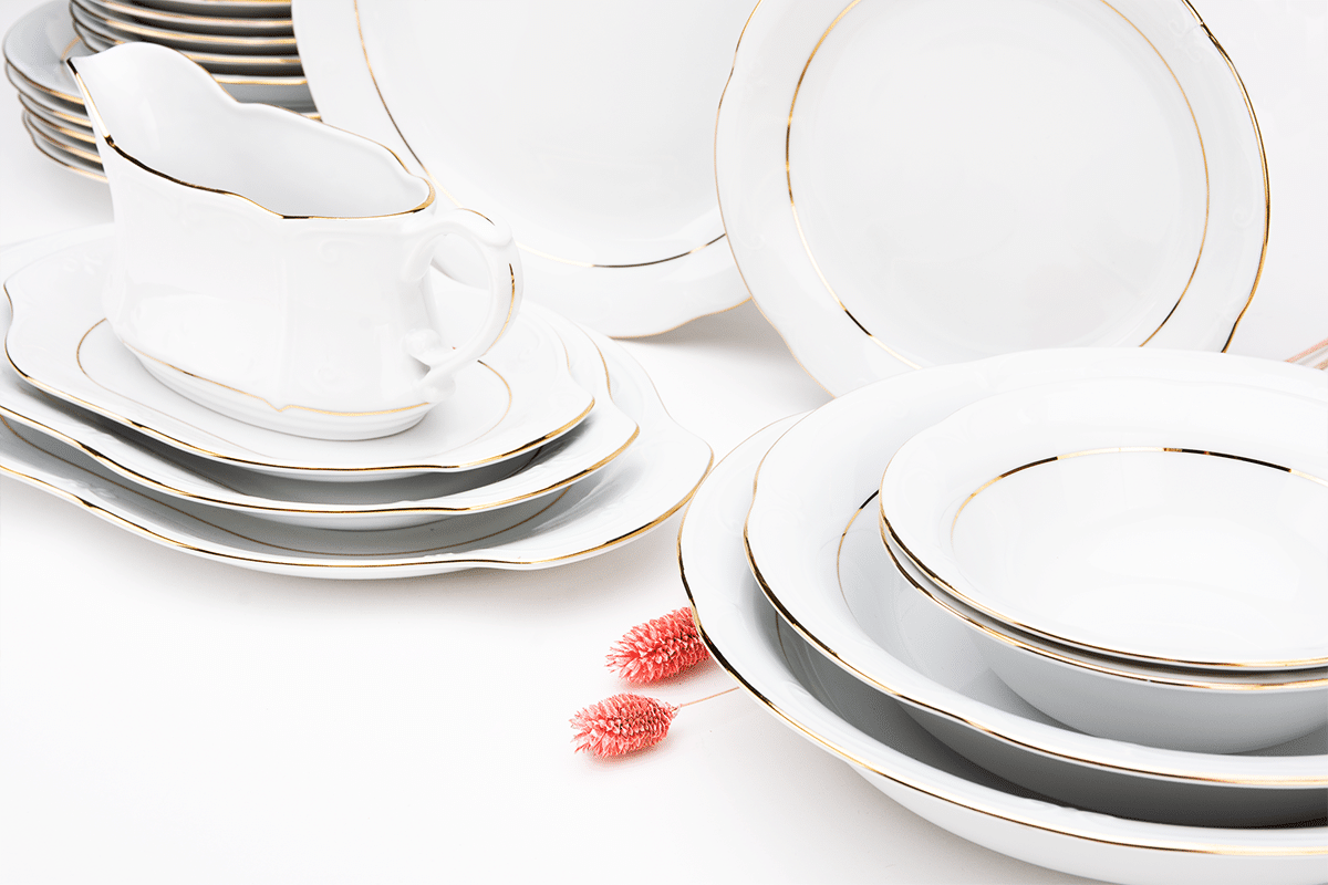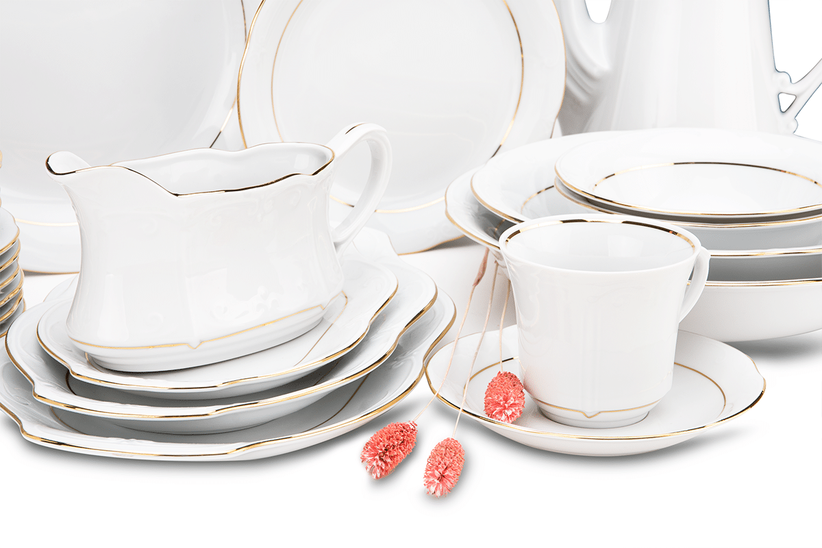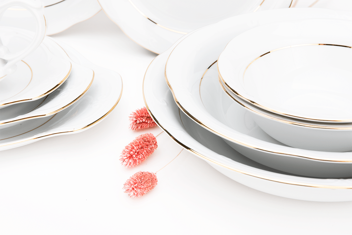 KAMELIA ZŁOTA LINIA Objav celú kolekciu Jedálenská súprava 44 ks. (12os.)- farba Zlatá linie
