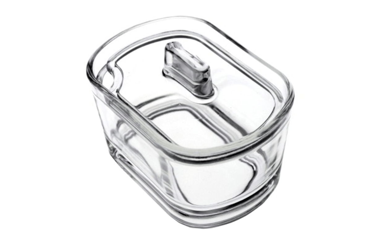 Elegantná sklenená cukornička s oválnym tvarom a praktickým viečkom sa veľmi dobre hodí ku každému riadu.