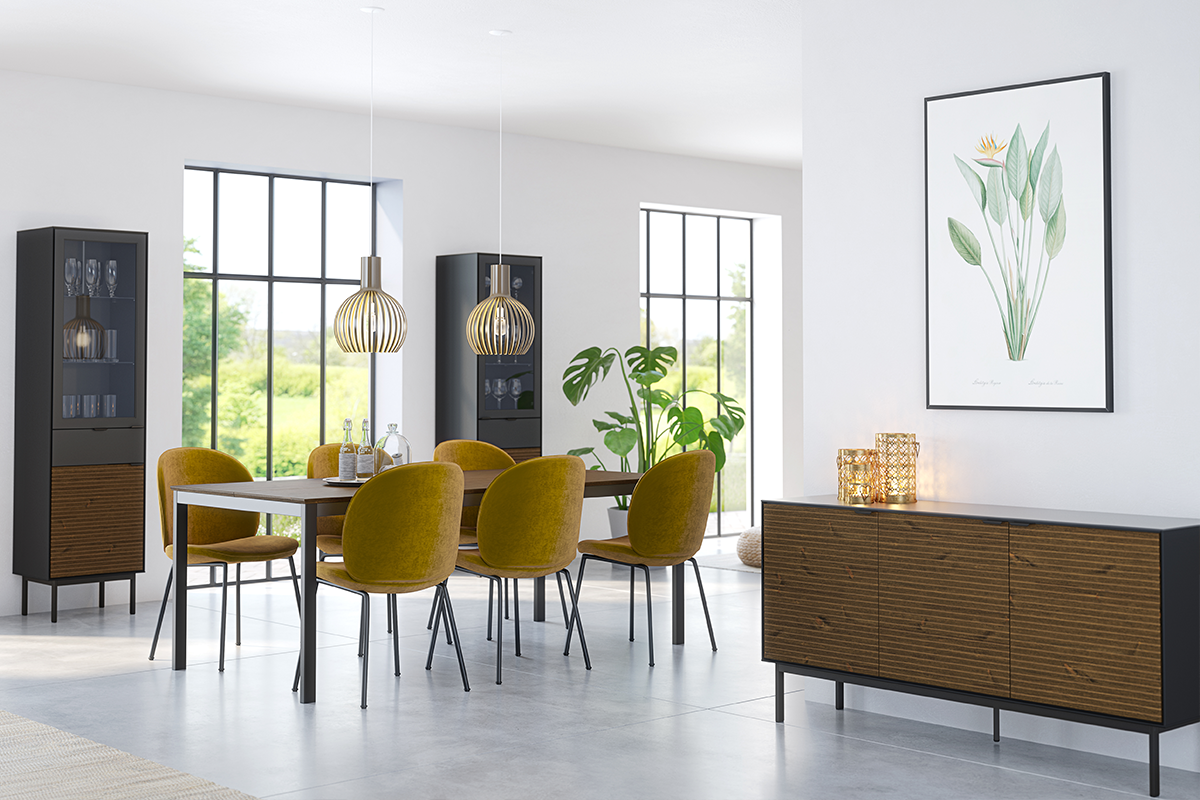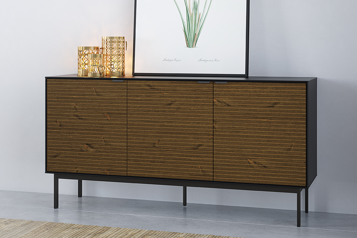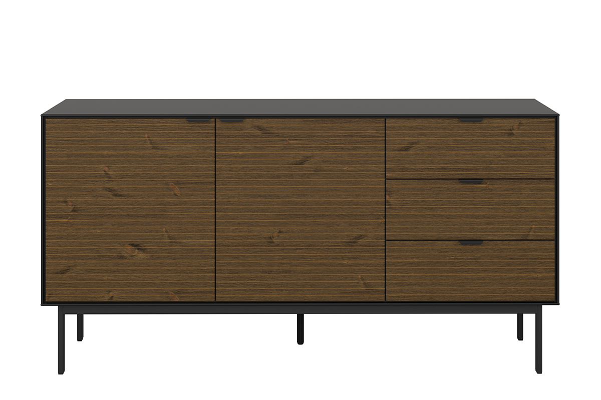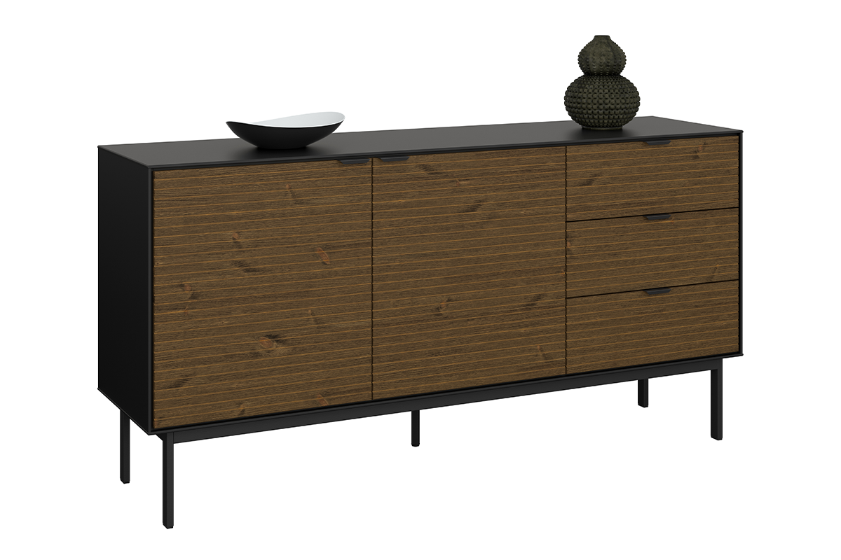 Komoda z kolekcie SOMA je kombináciou najkvalitnejších surovín, zaujímavého designu a funkčnosti. Nábytok nájde uplatnenie ako v spálni, tak aj v obývacej izbe. Je praktická a veľmi nastaviteľná, vďaka čomu ľahko zariadite akýkoľvek interiér. Iste si získa srdcia priaznivcov industriálneho a loftového štýlu, ktorí ocenia geometrické telesá, zaujímavé farebné kombinácie (čierna/tmavý jaseň) a originálne doplnky a dekoratívne prvky.