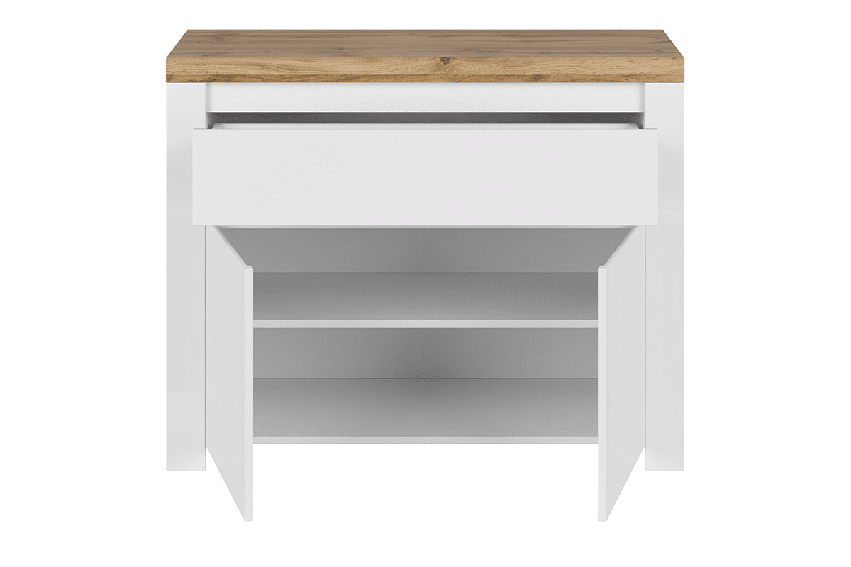 produktu Priestranná komoda s policami a zásuvkou do obývacej izby biela / dub