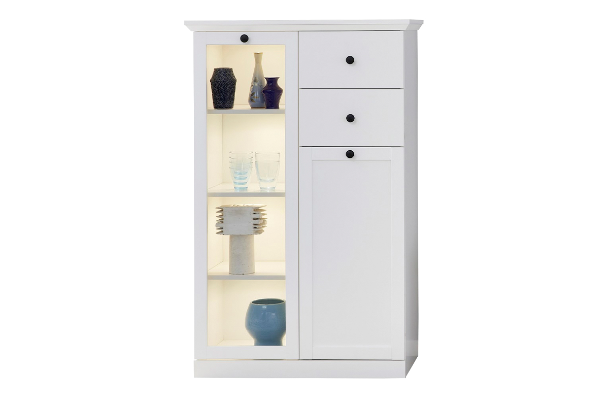 LIANTE Objav celú kolekciu Biela sklenená vitrína do obývacej izby- farba bílý