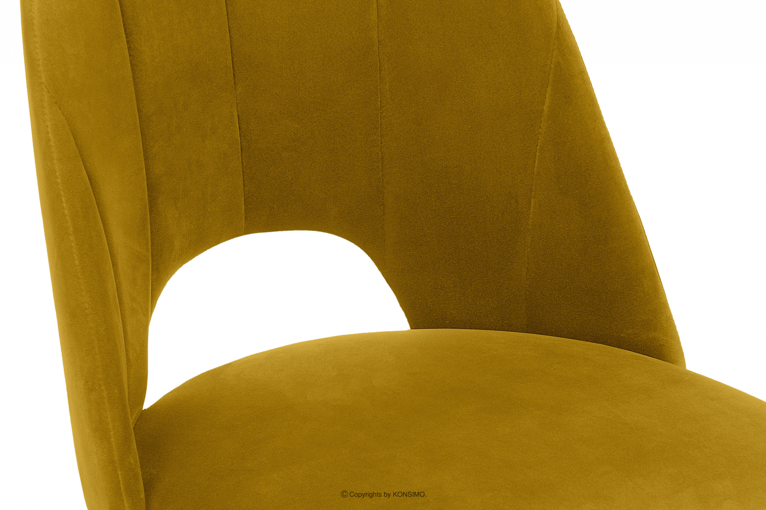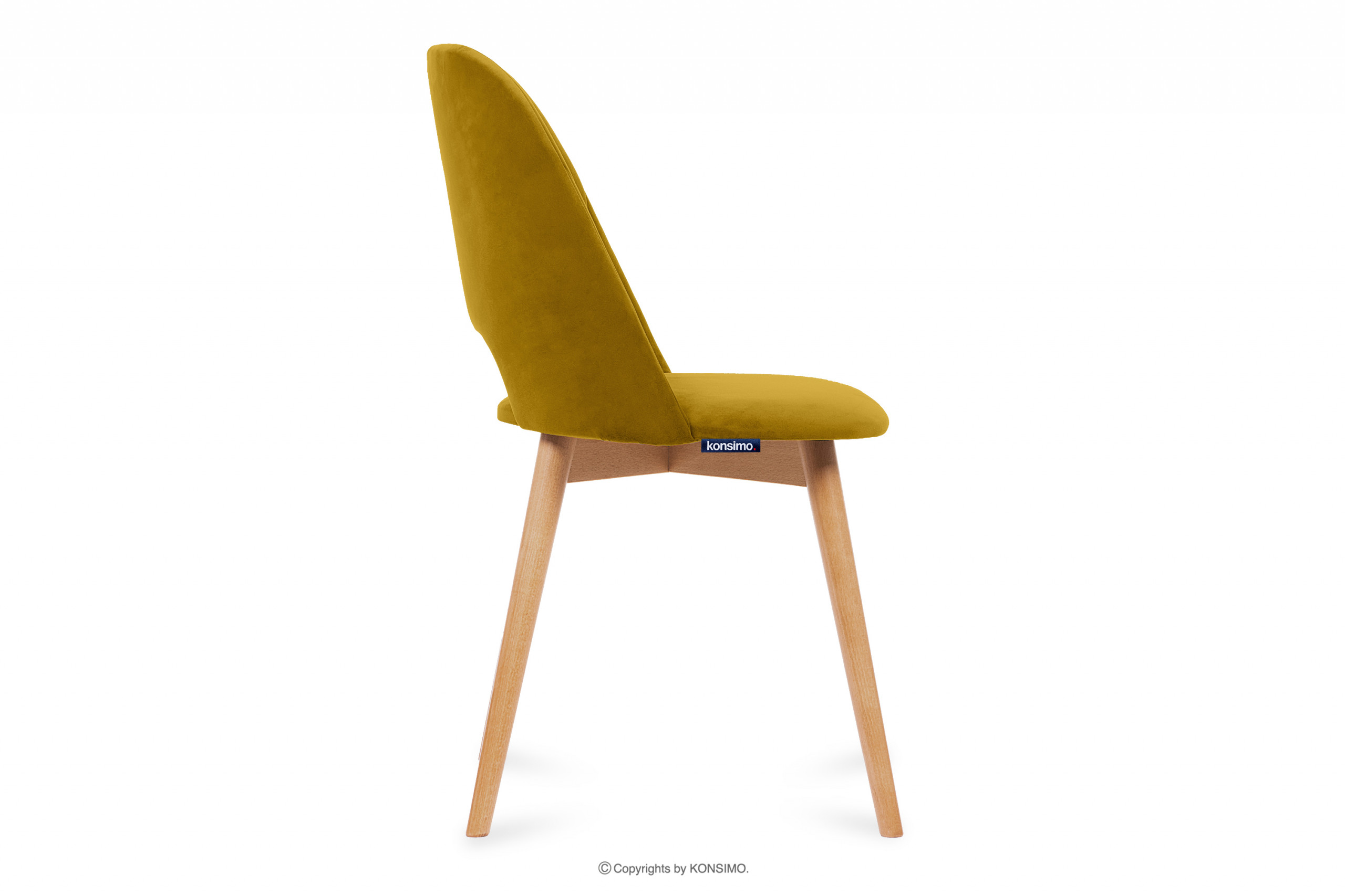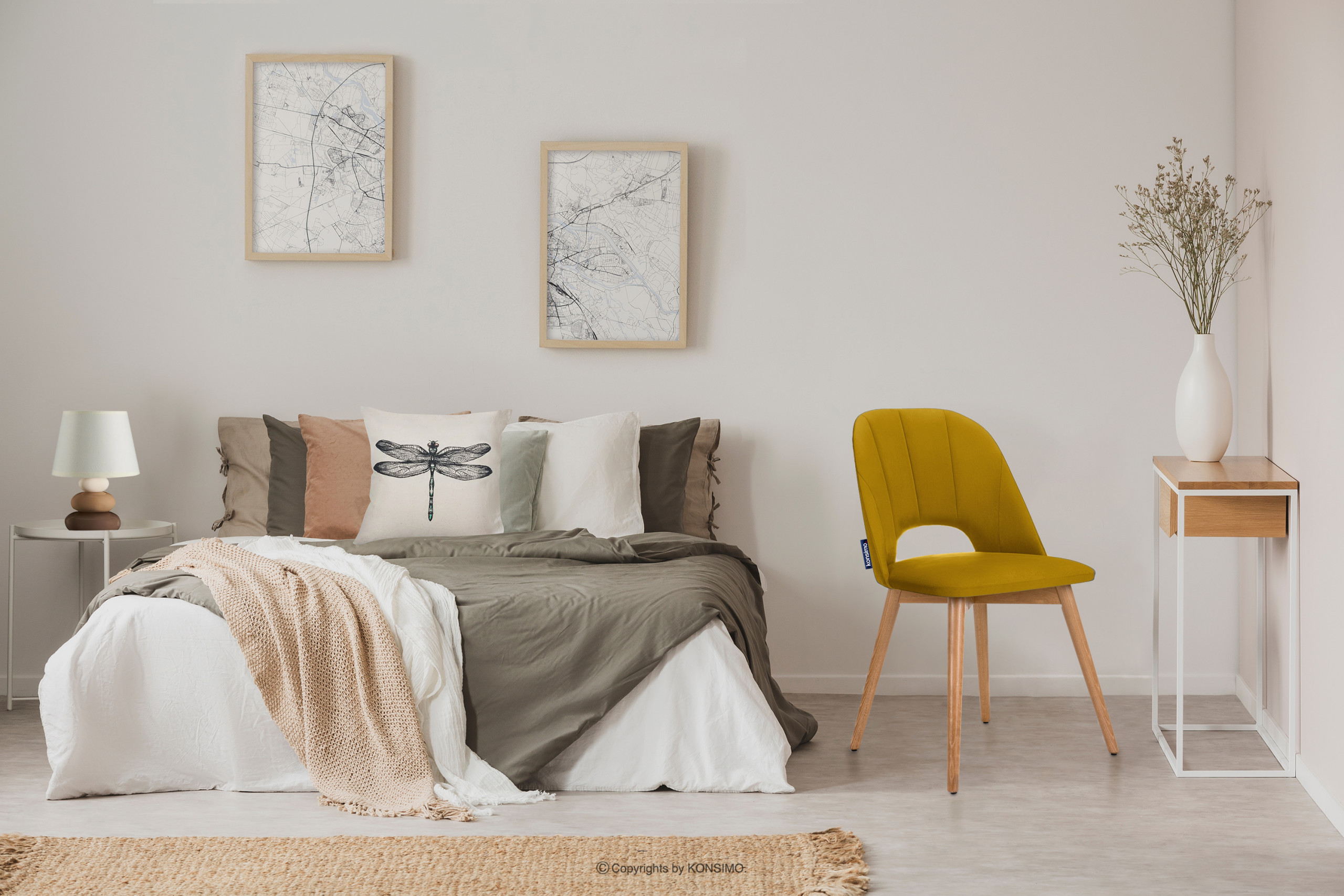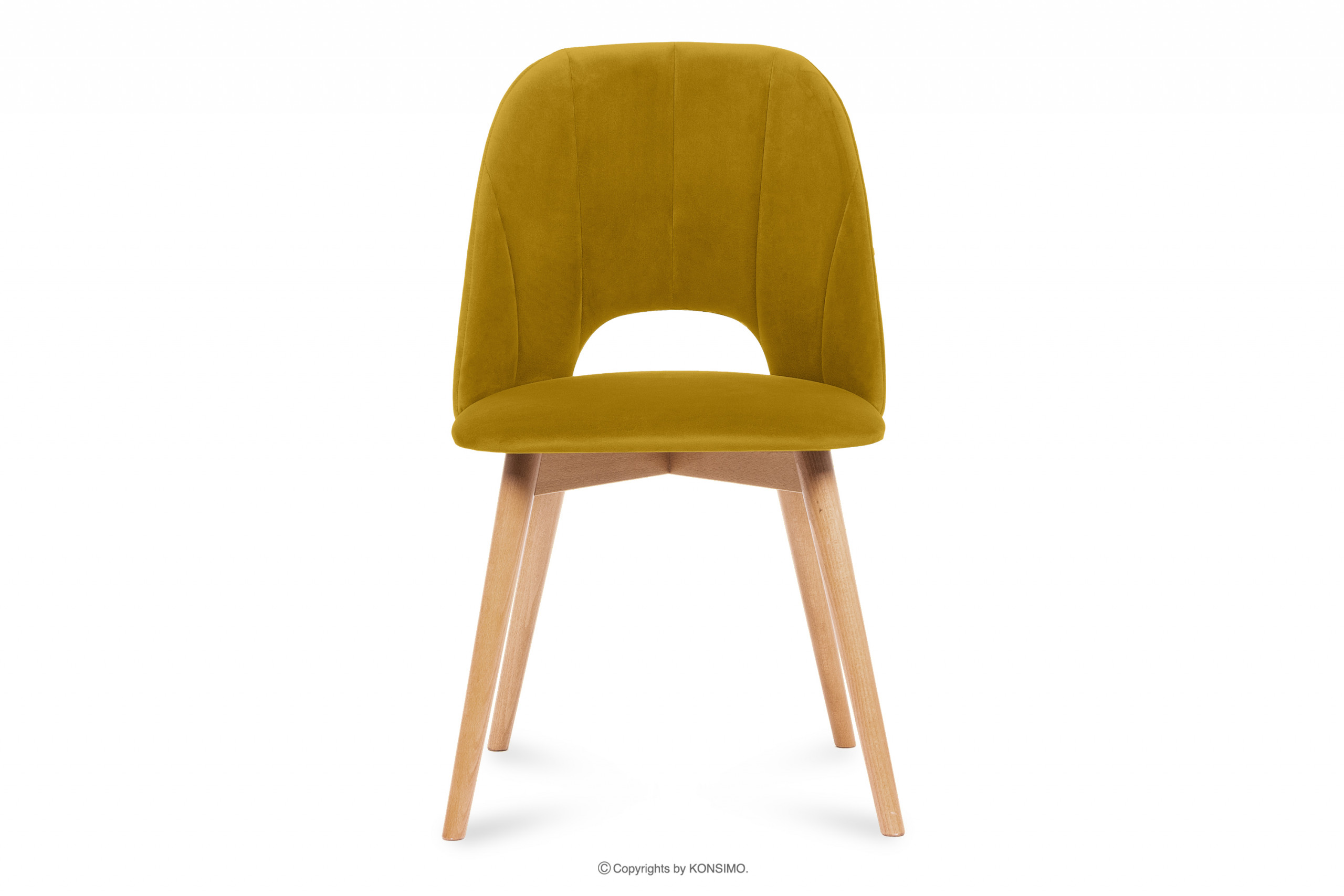TINO Objav celú kolekciu Žltá velúrová jedálenská stolička- farba hořčice/světlý dub