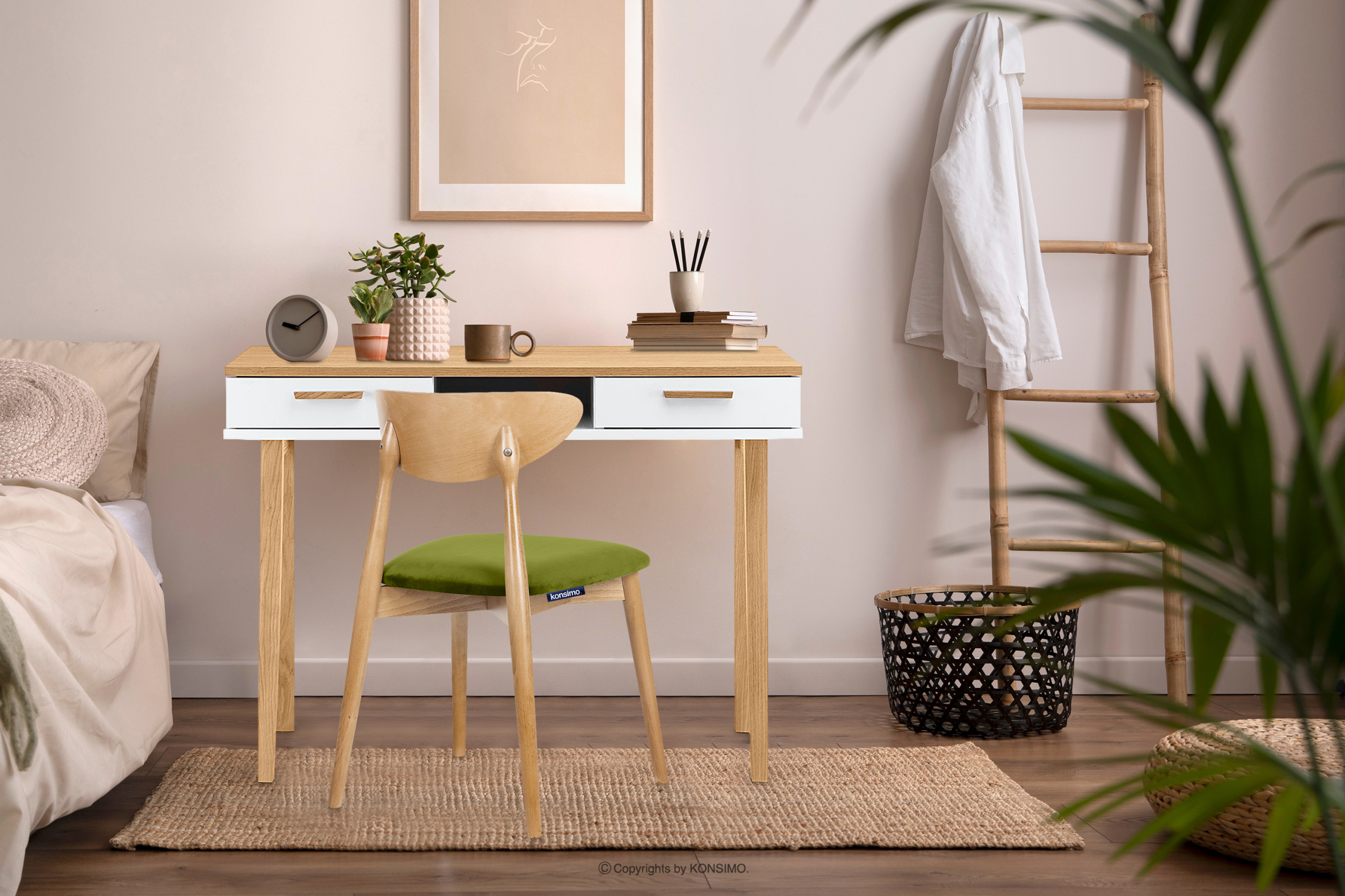 RABI Objav celú kolekciu Drevená stolička dub a zelený velúr- farba olivový/světlý dub