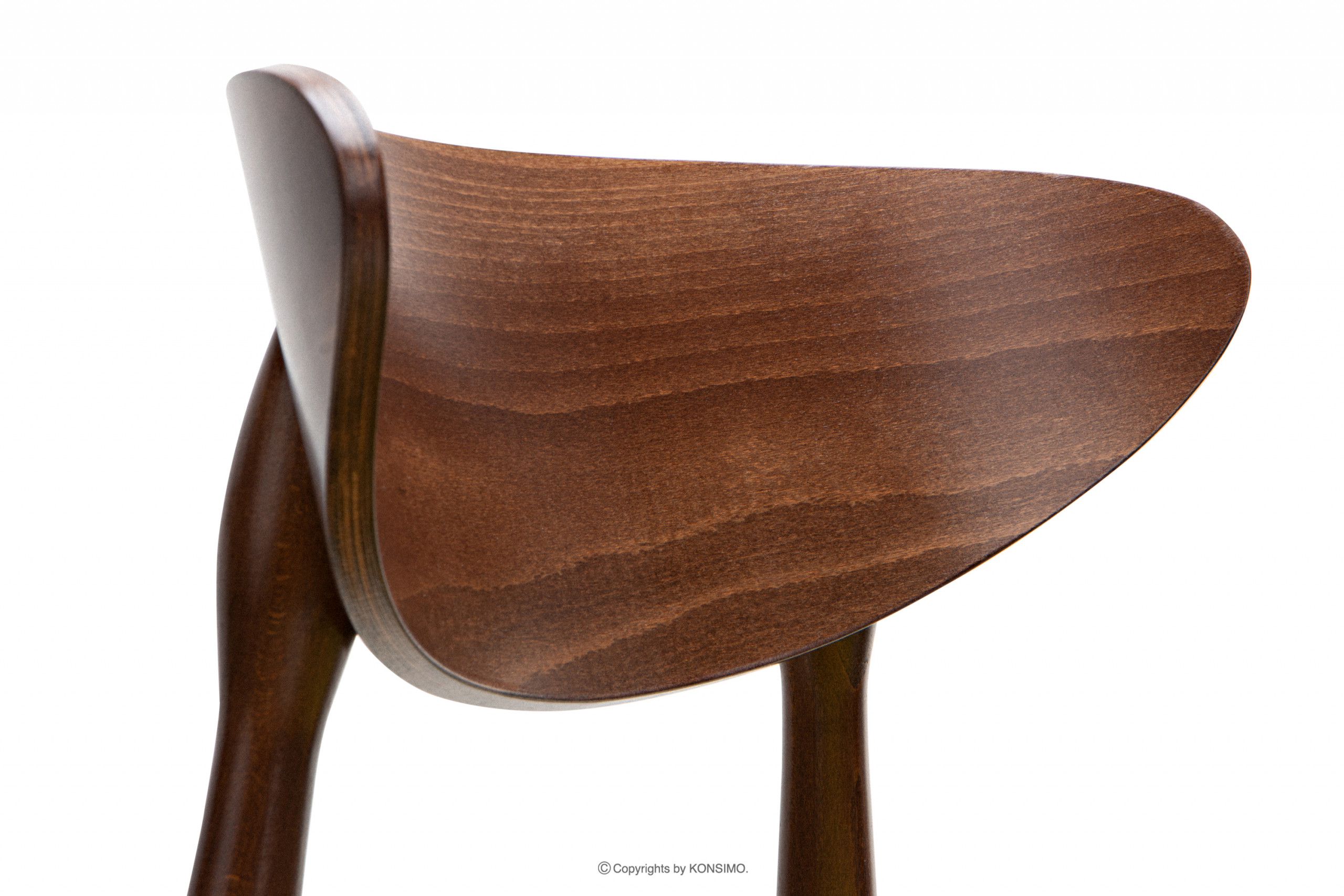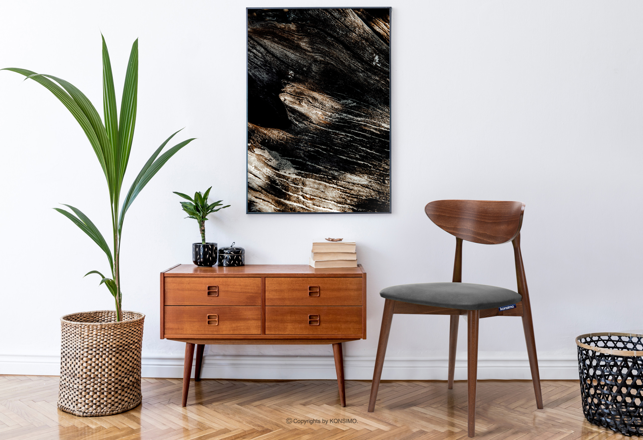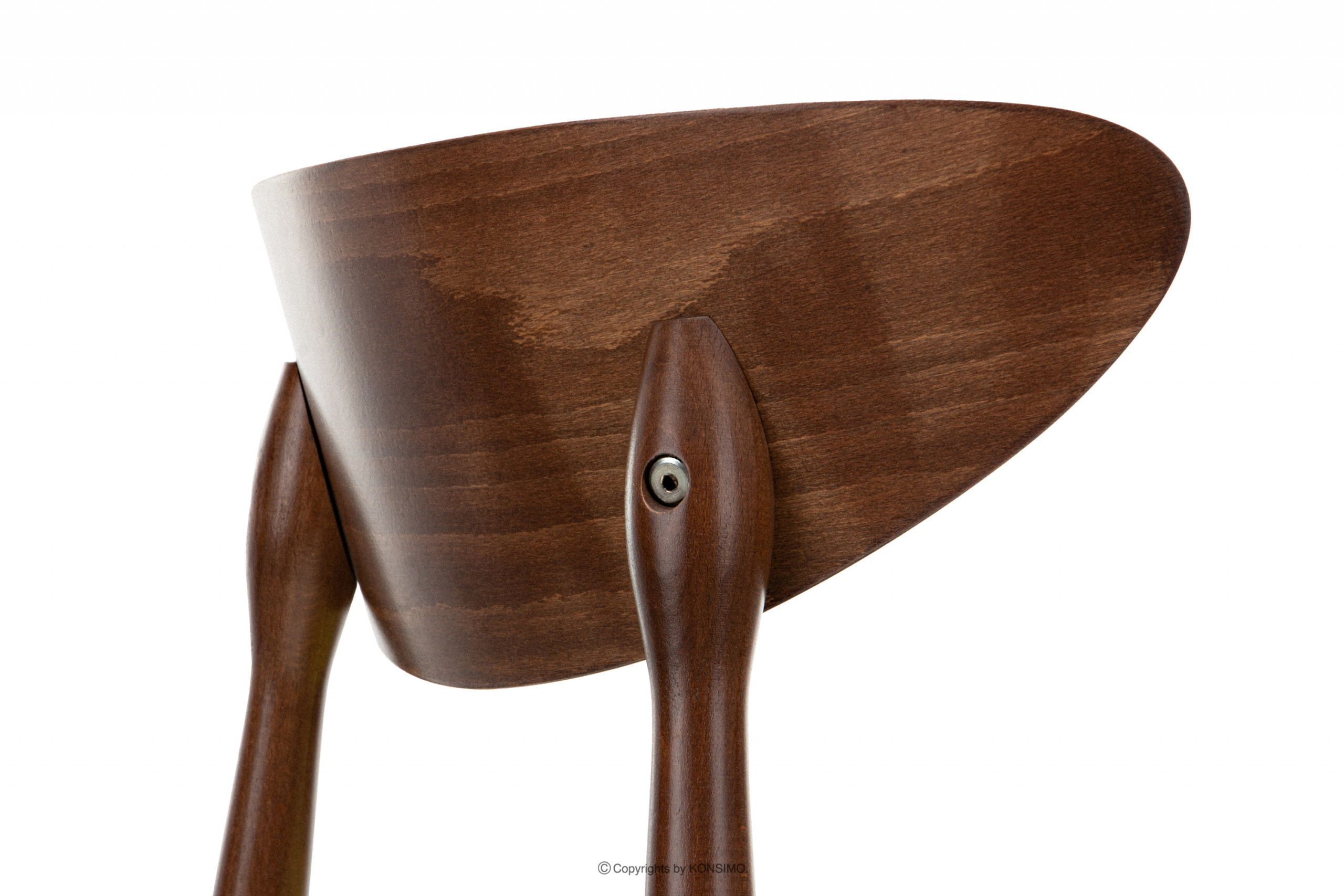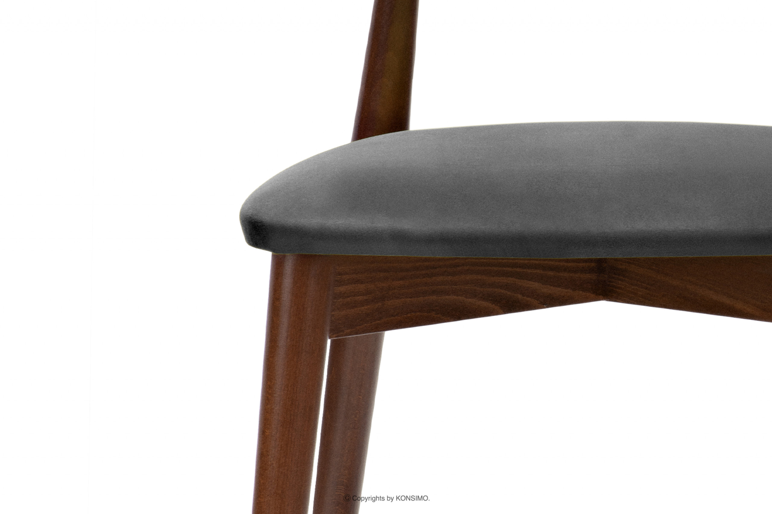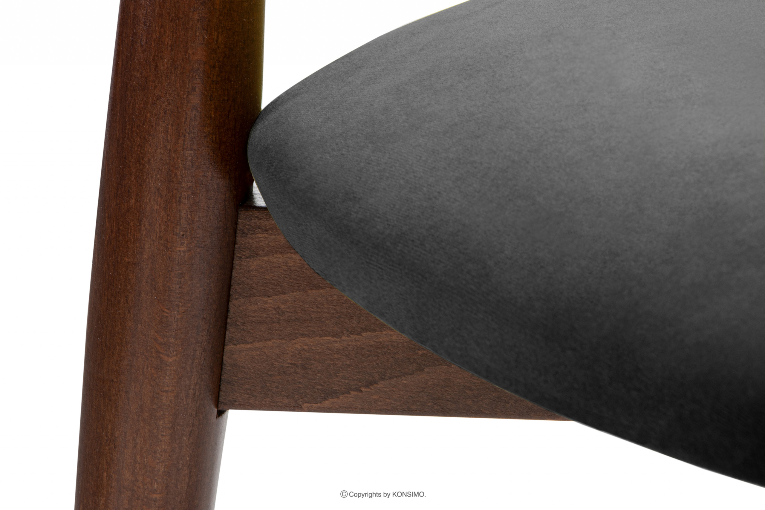 Stolička RABI je v prvom rade klasika. Vďaka kombinácii čierneho velúru a rámu vo farbe orecha odkazuje na retro štýl. Je vyrobená z masívneho dreva, ktoré vydrží dlhé roky aj pri každodennom používaní. Dizajn zaujme aj zakriveným operadlom, ktoré nábytok nielen zdobí, ale je aj veľmi pohodlné. Drevená stolička z orechovo čierneho velúru je ideálna do jedálne, obývačky alebo aj kuchyne a hodí sa k stolom rôznych štýlov.