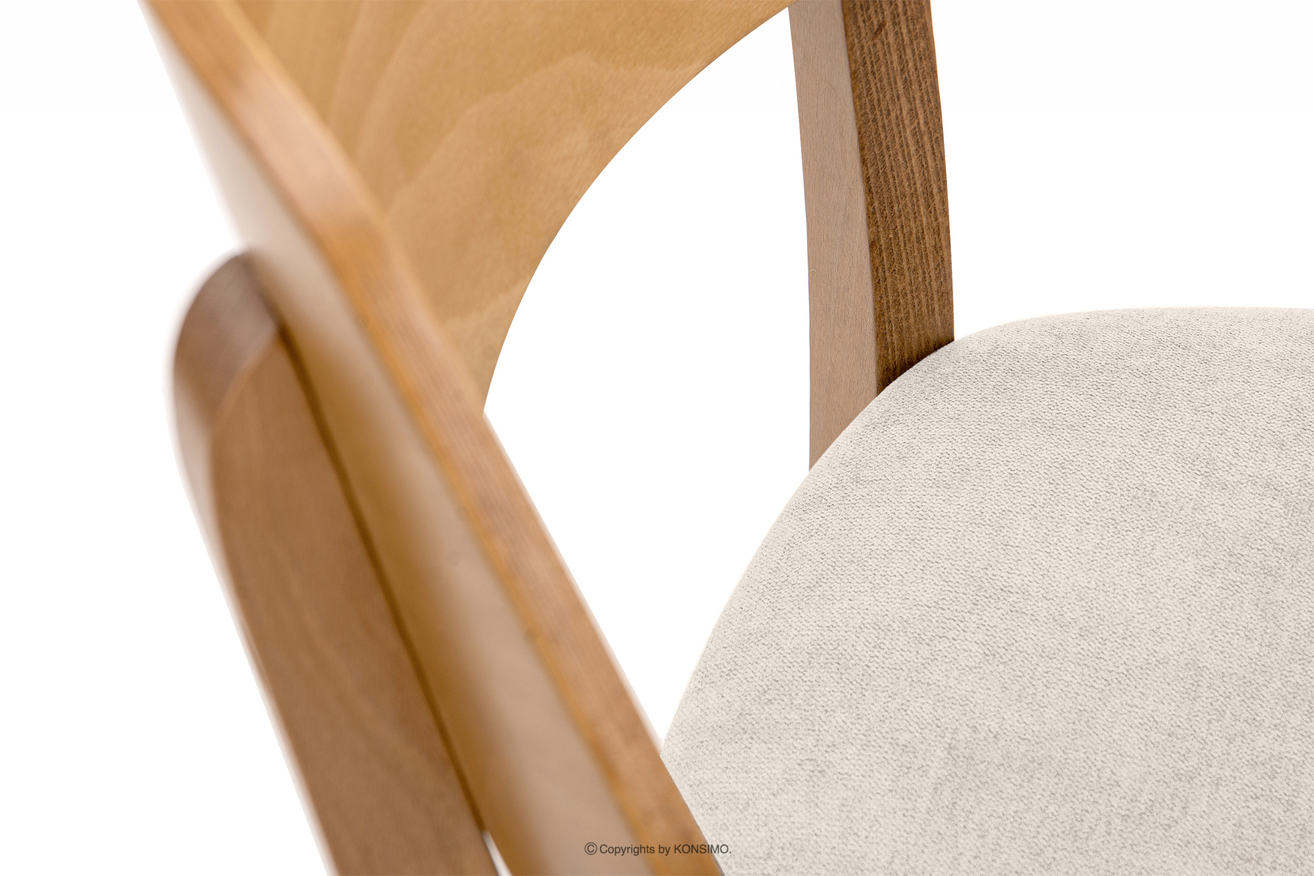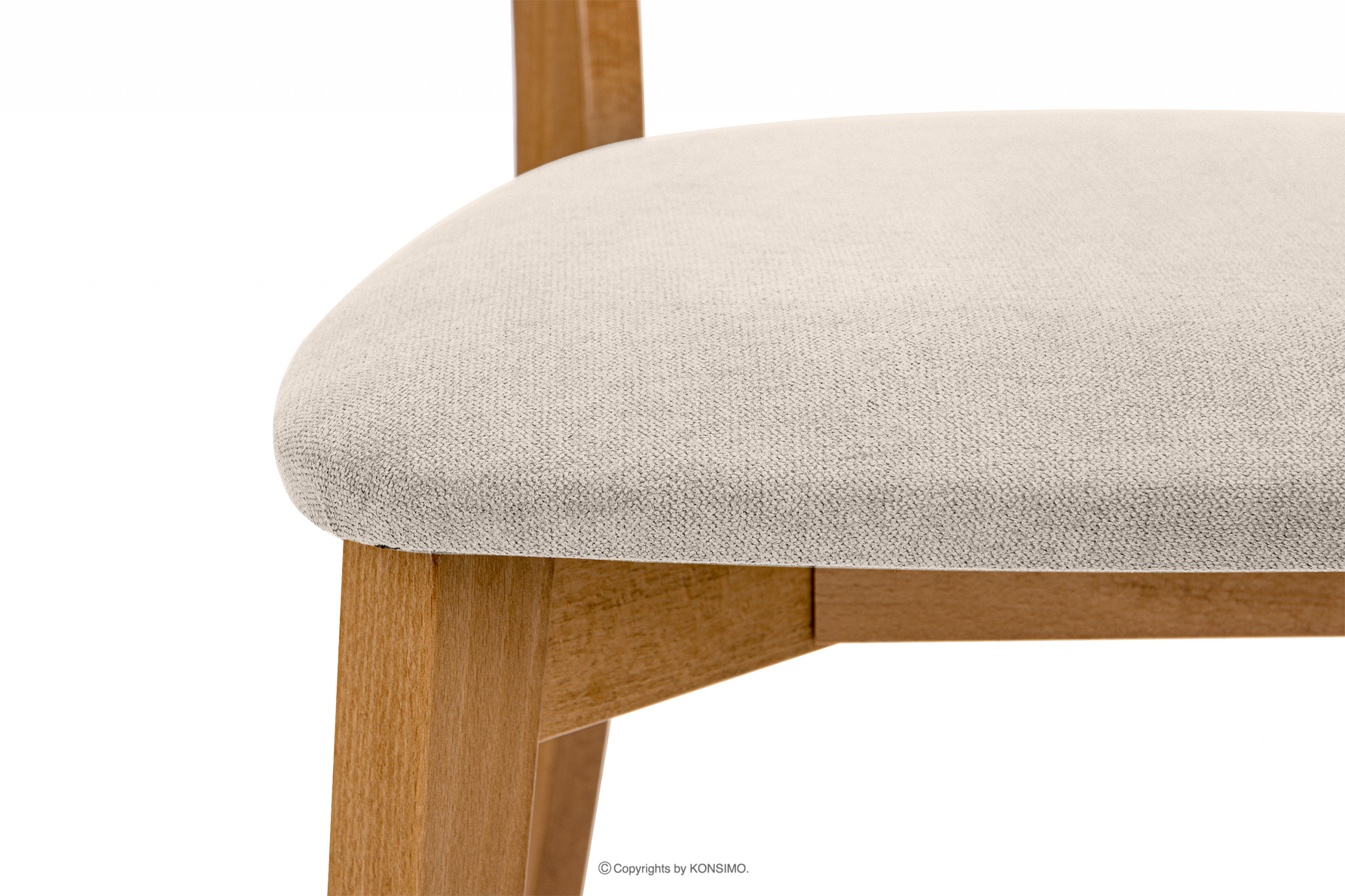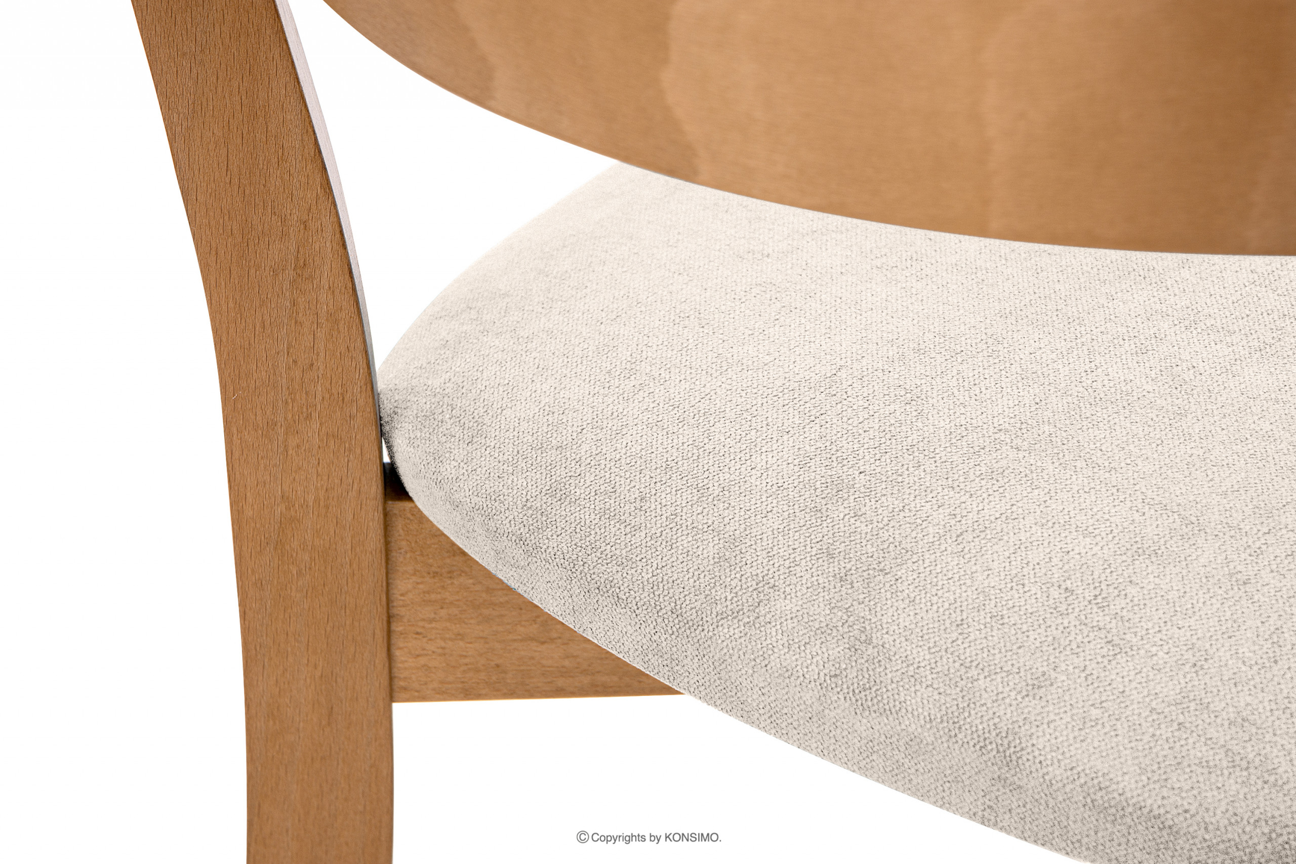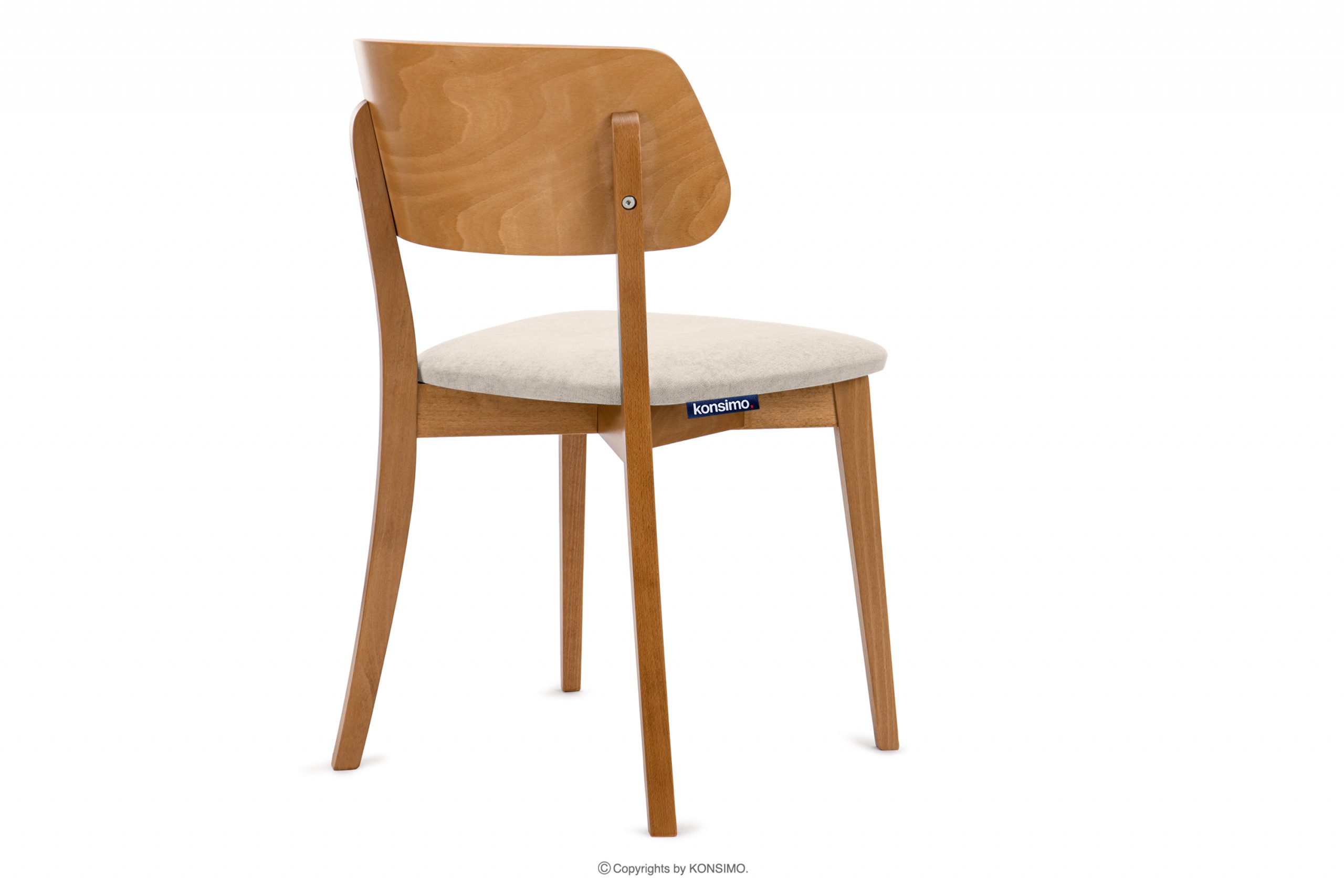 Stolička VINIS je predovšetkým klasická s jednoduchými tvarmi. Vďaka kombinácii krémovej látky a dubového rámu odkazuje na retro štýl. Moderná drevená stolička v krémovej dubovej farbe je vhodná na zaujímavé aranžmány pre milovníkov prírodných interiérov. Je vhodná do malých aj veľkých jedální a zaručuje pohodlie aj pri spoločnom rodinnom stolovaní.
