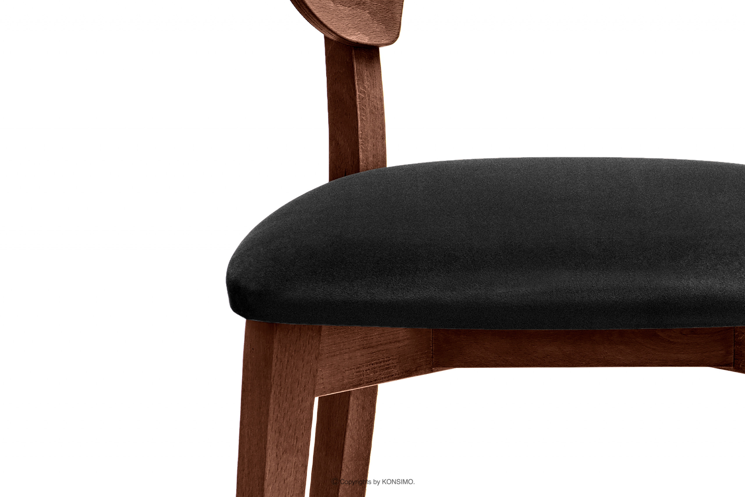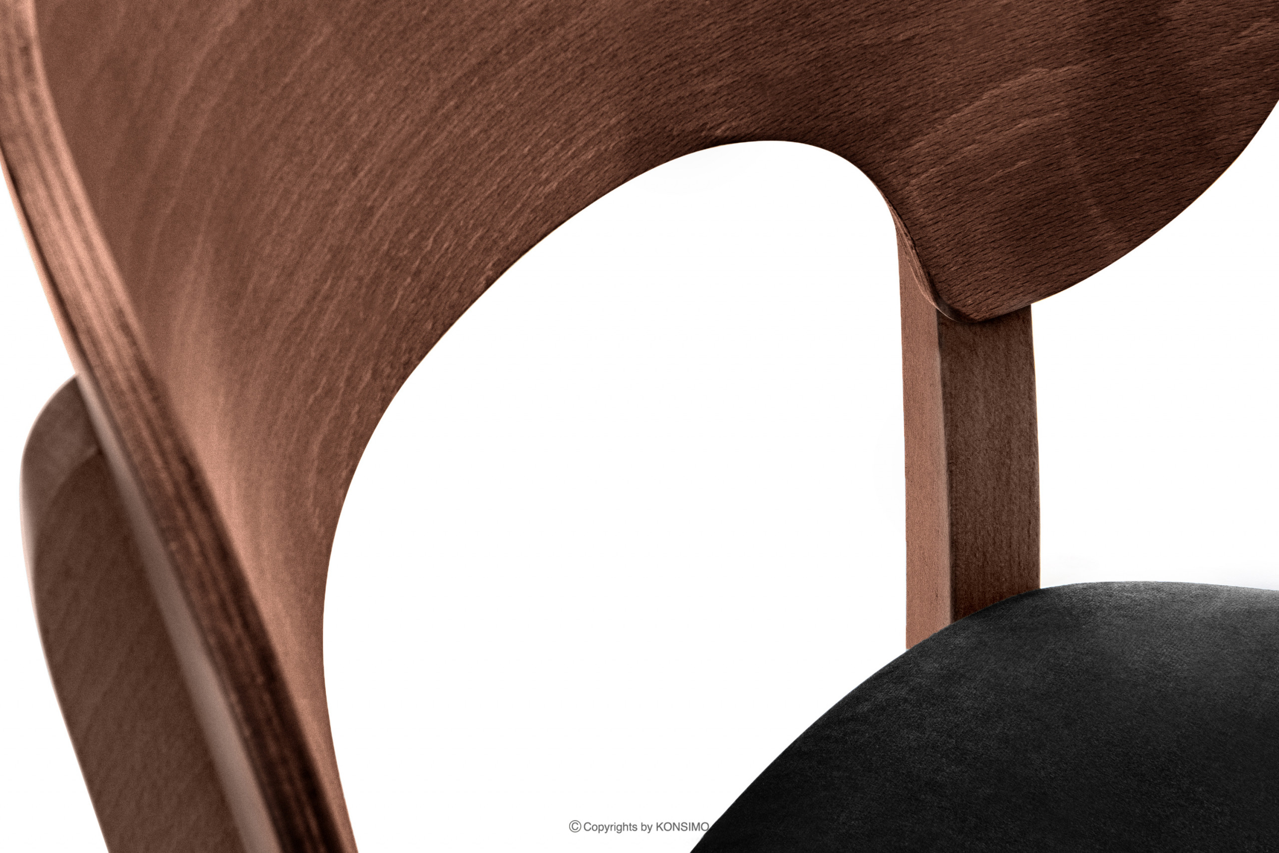 Sedadlo stoličky je vyplnené polyuretánovou penou a čalúnené zamatovou látkou. Ľahko sa udržiava v čistote a látka je príjemná na dotyk. Mierne zakrivený sedák navyše poskytuje pohodlie a je prispôsobený používateľovi. Samozrejme, má aj estetickú funkciu a spolu s mierne zakrivenými nohami vyzerá skvele.