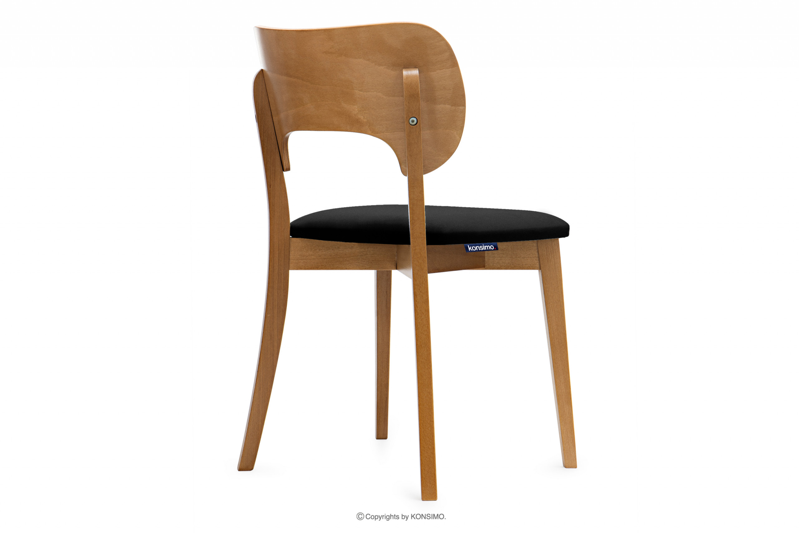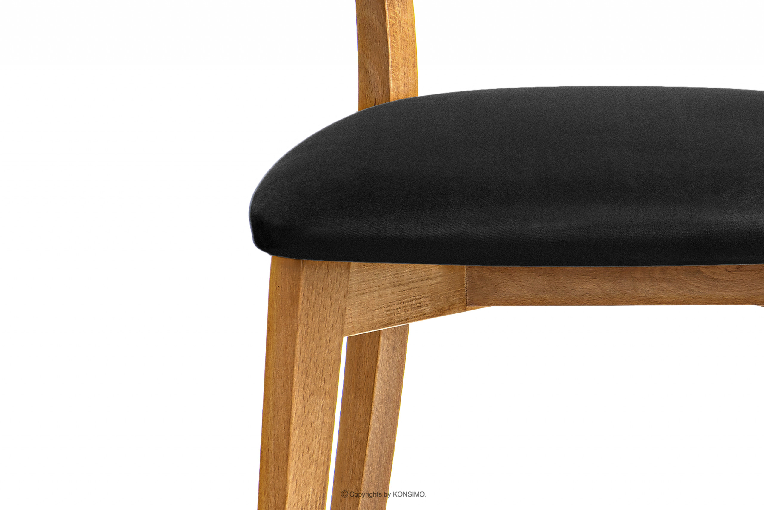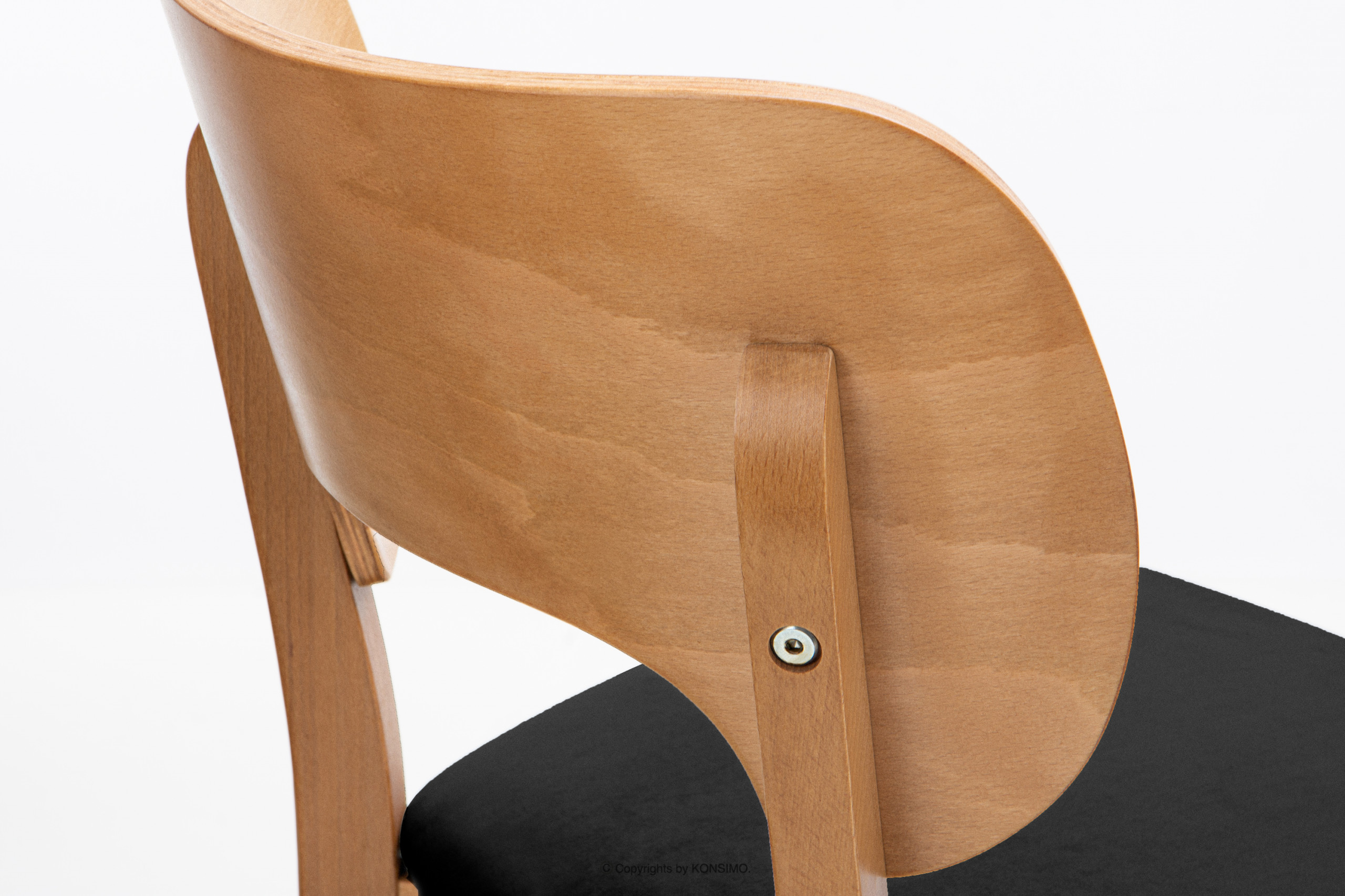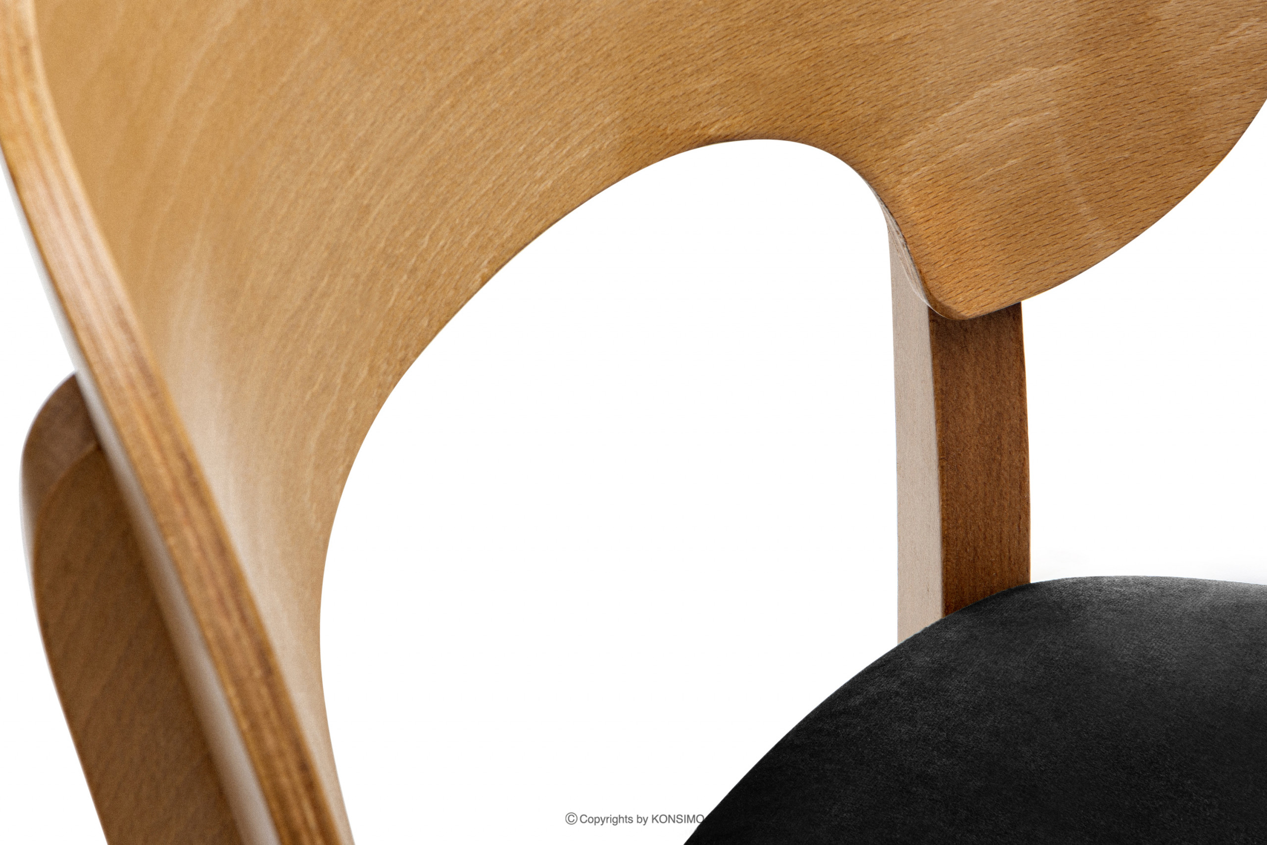 Sedadlo stoličky je vyplnené polyuretánovou penou a čalúnené zamatovou látkou. Ľahko sa udržiava v čistote a látka je príjemná na dotyk. Mierne zakrivený sedák navyše poskytuje pohodlie a je prispôsobený používateľovi. Samozrejme, má aj estetickú funkciu a spolu s mierne zakrivenými nohami vyzerá skvele.