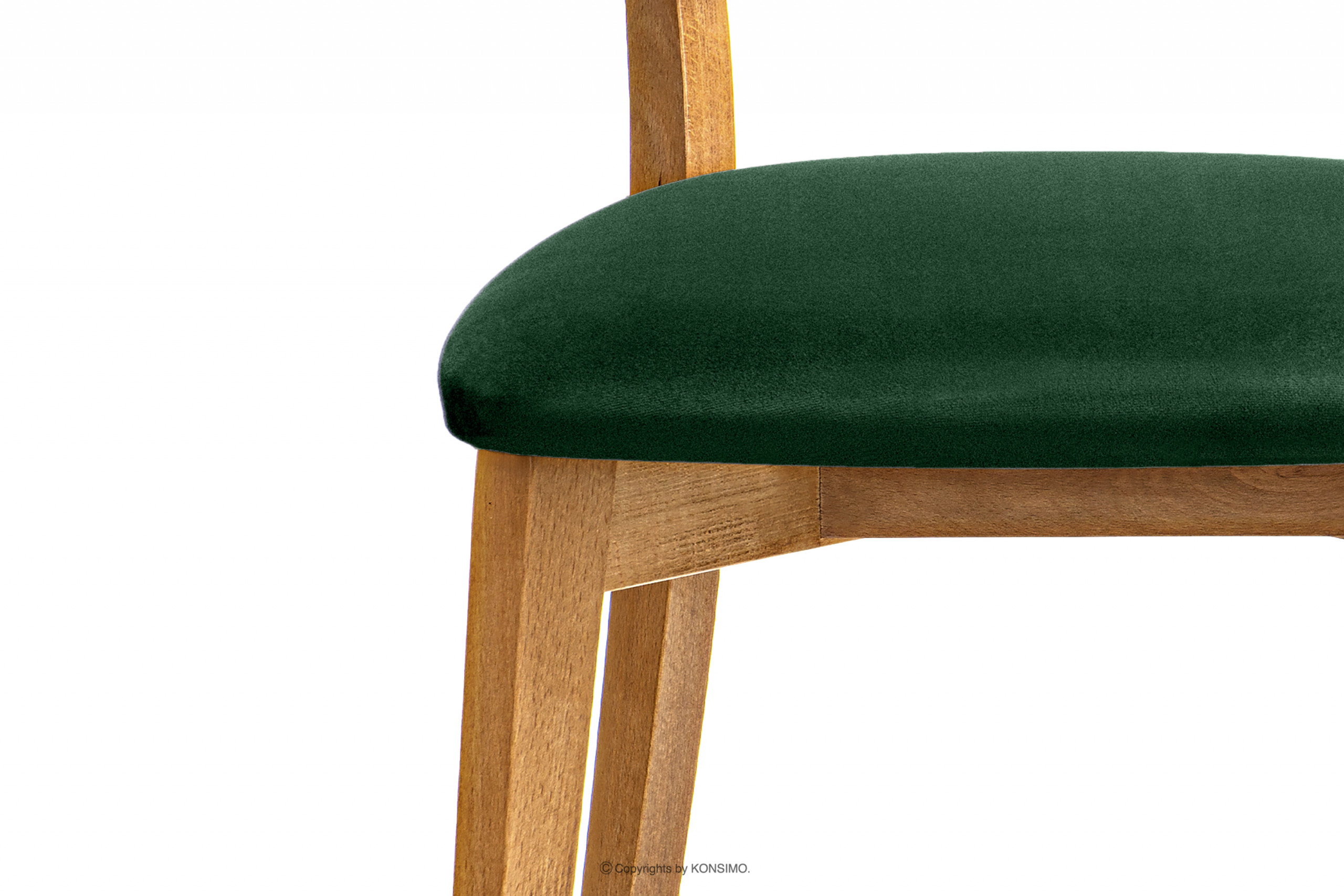 Sedadlo stoličky je vyplnené polyuretánovou penou a čalúnené zamatovou látkou. Ľahko sa udržiava v čistote a látka je príjemná na dotyk. Mierne zakrivený sedák navyše poskytuje pohodlie a je prispôsobený používateľovi. Samozrejme, plní aj estetickú funkciu a spolu s mierne zakrivenými nohami vyzerá skvele.