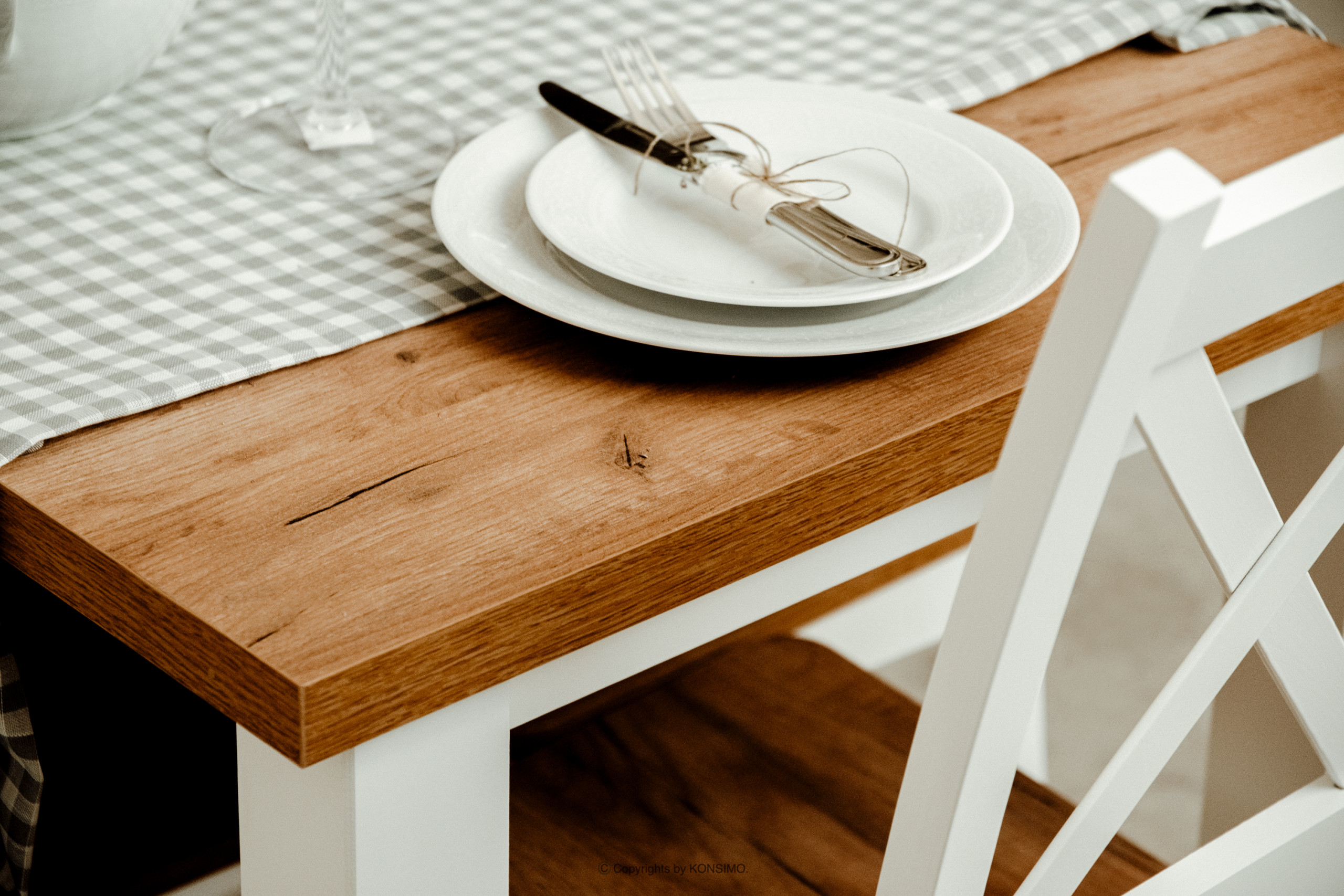 DAVI Objav celú kolekciu Škandinávsky kuchynský stôl so stoličkami- farba řemeslný dub zlatý/bílý