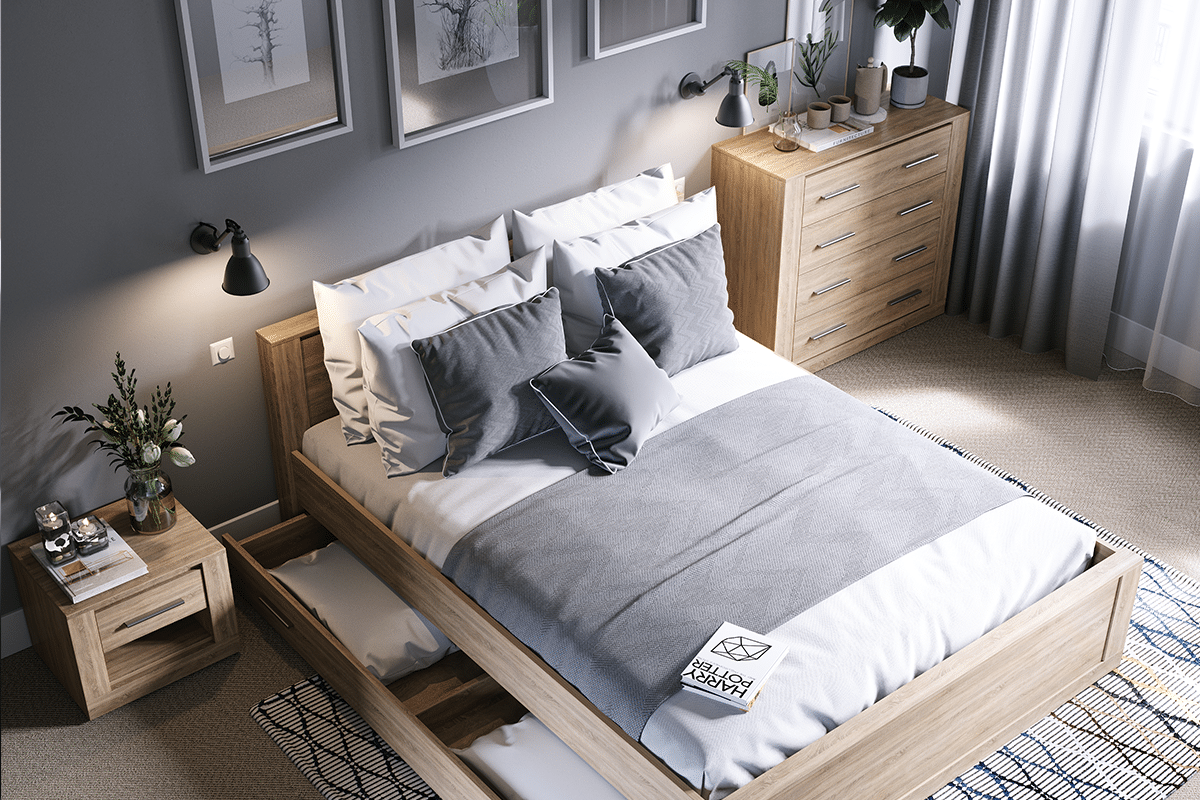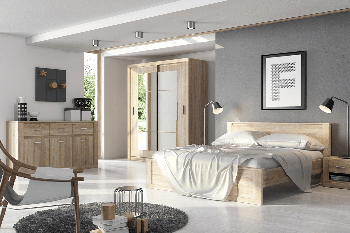 TIVO Objav celú kolekciu Veľká komoda s policami do spálne v prevedení dub sonoma- farba dub sonoma