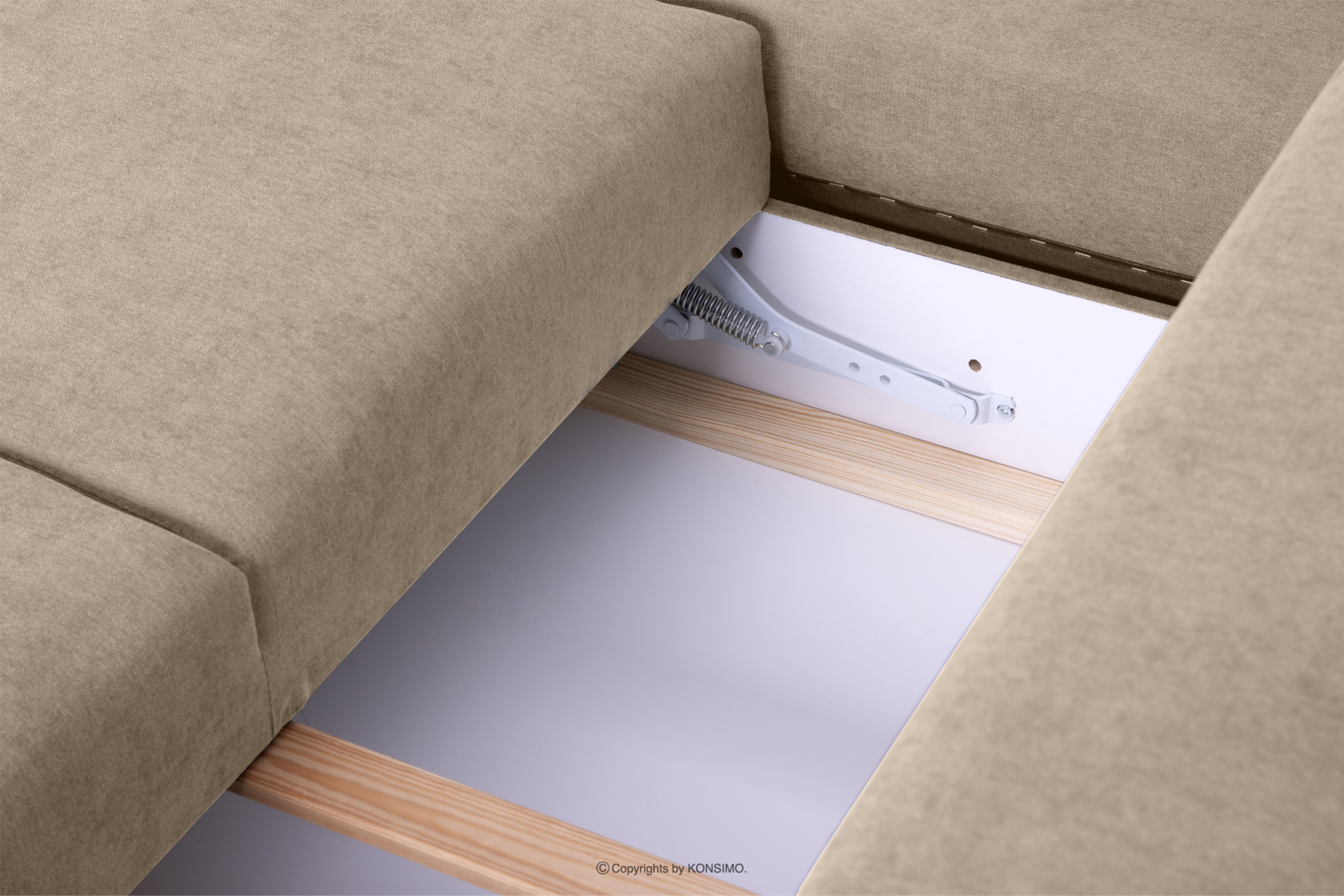VISNA Rozkladacia rohová pohovka do obývacej izby s úložným priestorom na lôžkoviny, béžová, ľavá