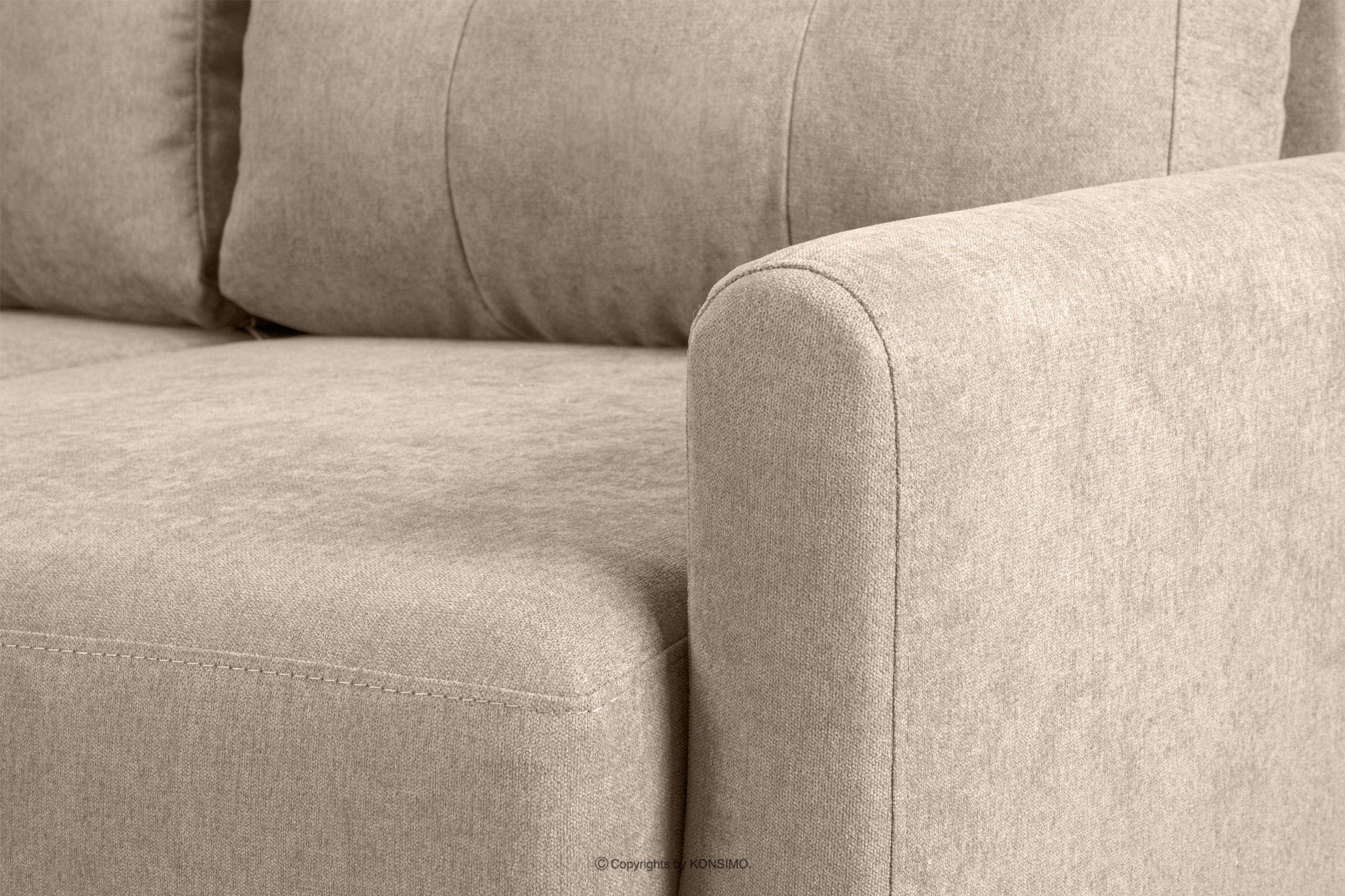 Rozkladacia pohovka do obývačky s kontajnerom na posteľnú bielizeň v béžovej farbe v škandinávskom štýle, ktorú charakterizujú drevené bukové nohy a vložky. Má funkciu spania a kontajner na lôžkoviny, čo je užitočné najmä v malých miestnostiach. Využíva systém DL, ktorý sa veľmi ľahko a rýchlo používa. Sedák je vyplnený penou T30 a používa vlnité pružiny typu B, takže sa neprehýba a drží svoj tvar.