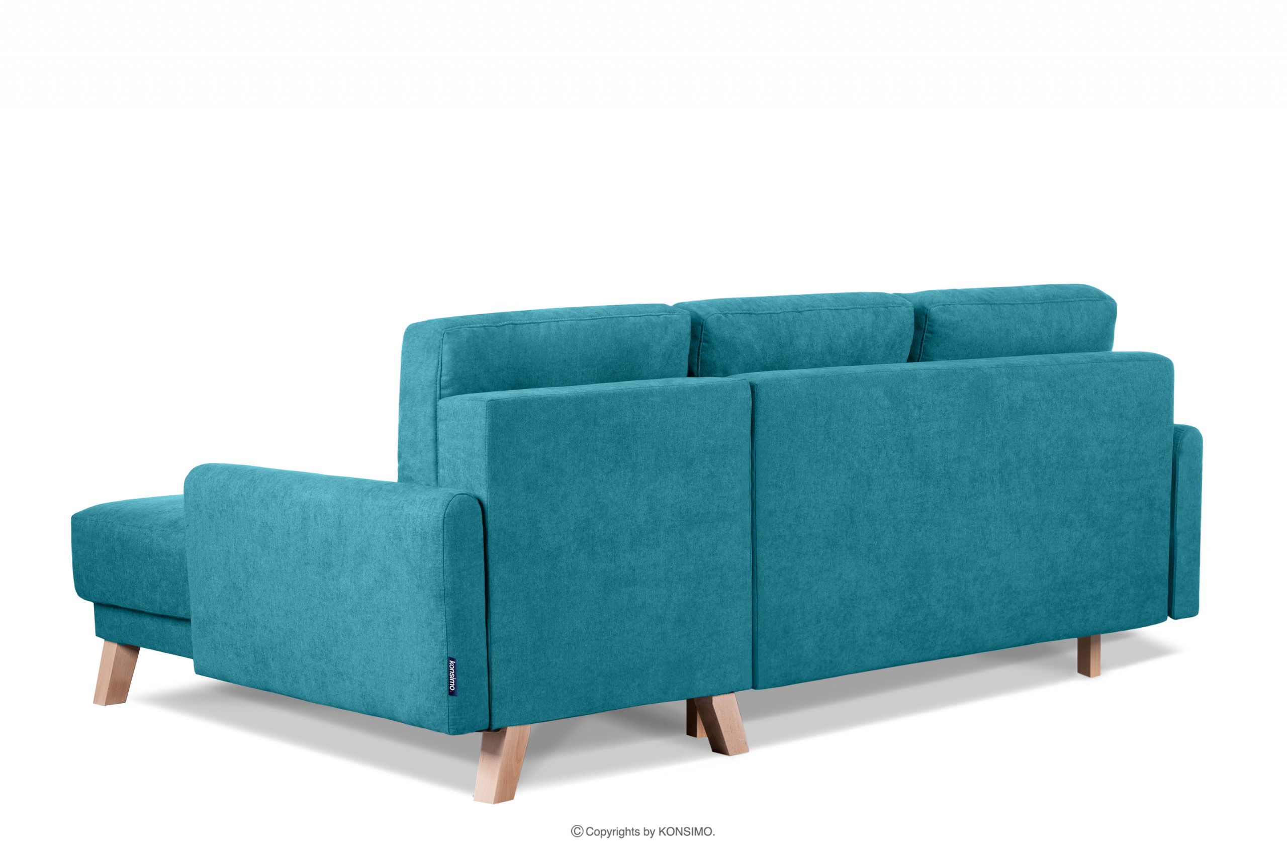 VISNA Rozkladacia rohová pohovka do obývacej izby s úložným priestorom na lôžkoviny, tyrkysová, pravá