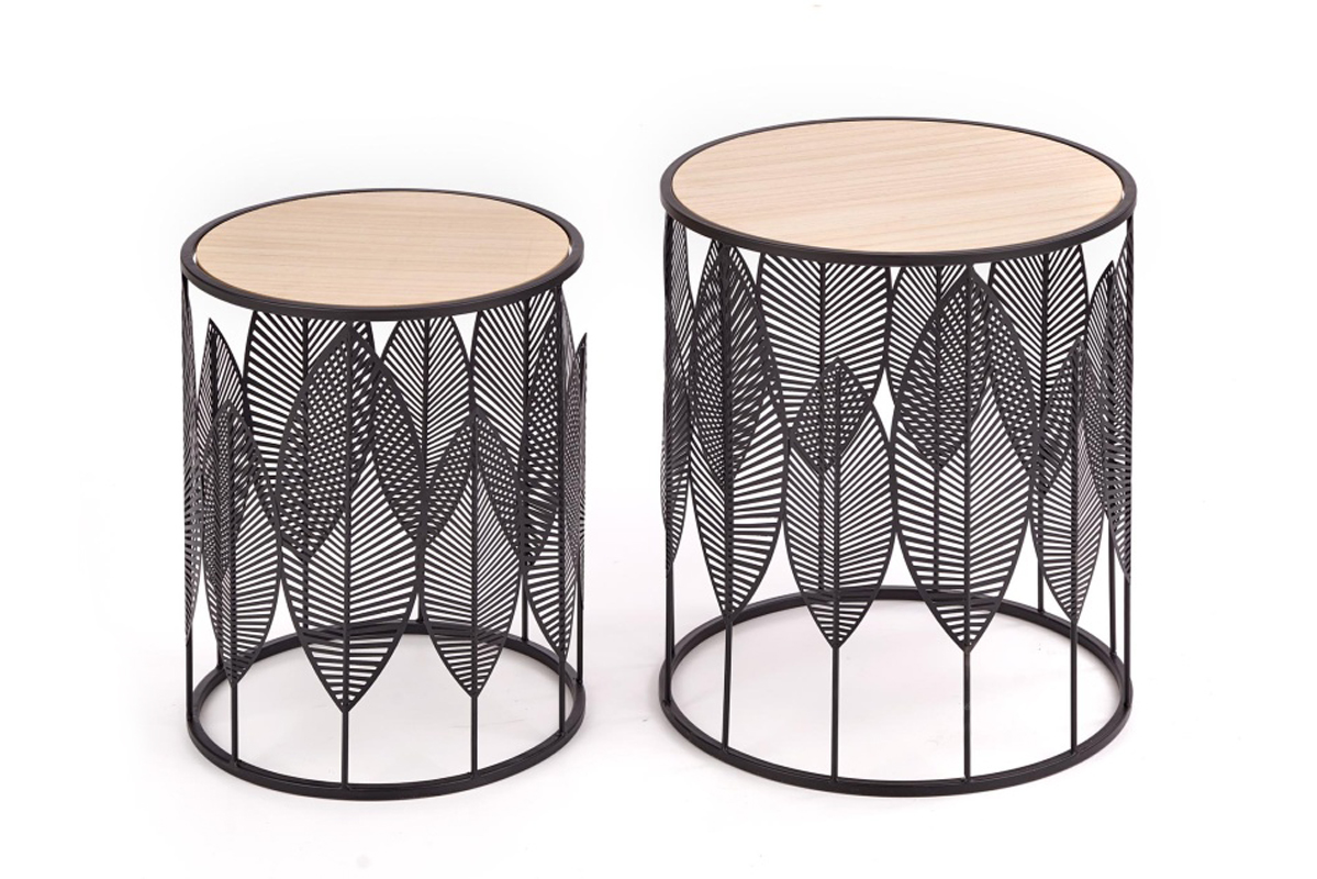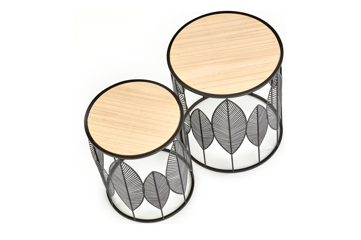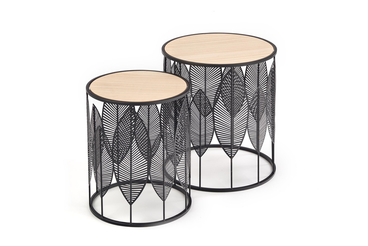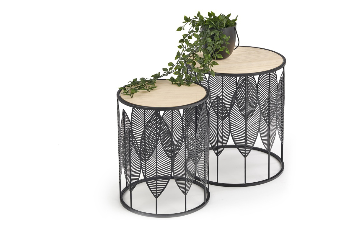 ERIO Objav celú kolekciu Súprava okrúhlych konferenčných stolíkov s prelamovaným čiernym rámom- farba přírodní dub/černá