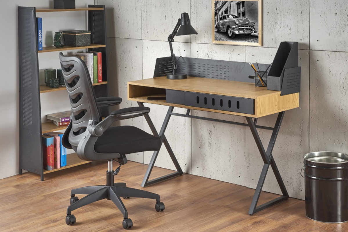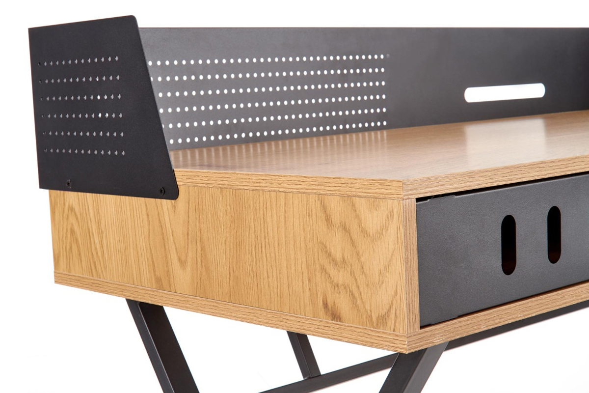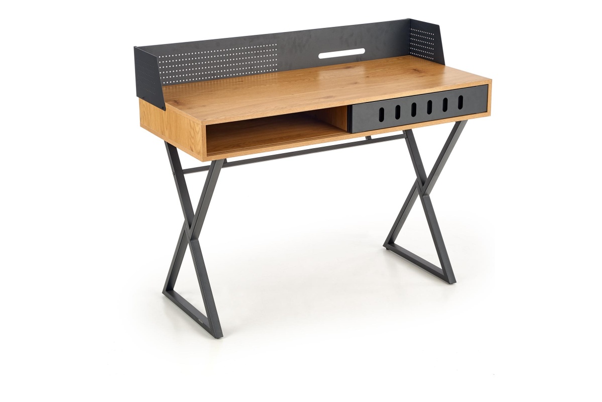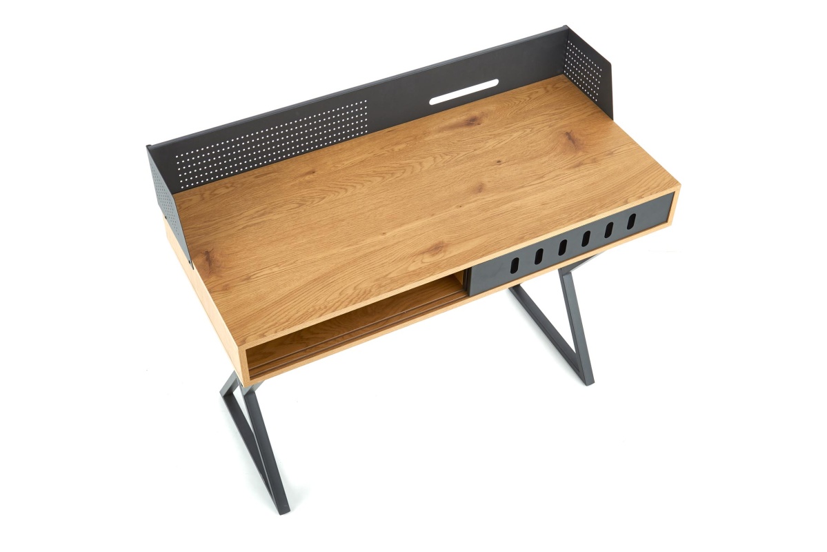 VORTI Objav celú kolekciu Industriálny písací stôl s policou- farba zlatý/černý dub