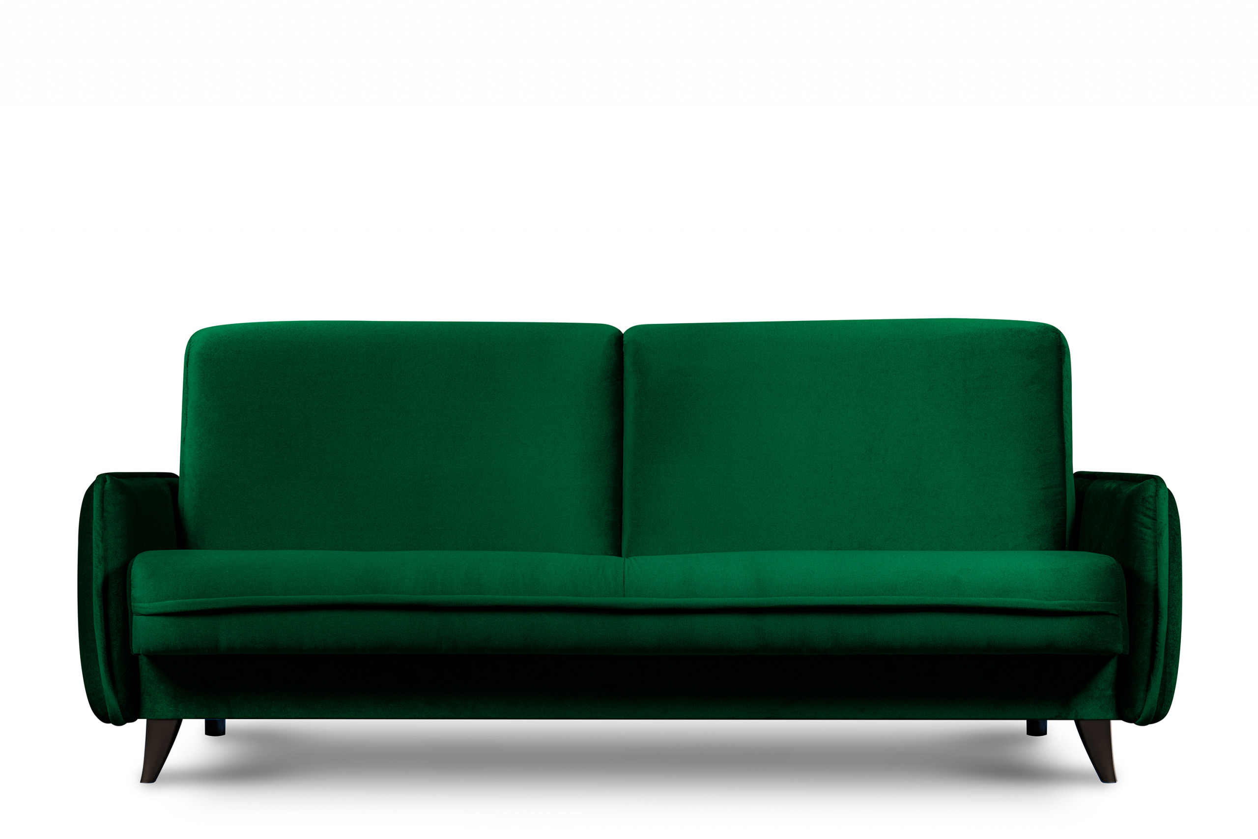Trojmiestna tmavozelená pohovka GRINDE je kus nábytku pre ľudí, ktorí hľadajú výrobky najvyššej kvality. Pohovka je vyrobená z velúru, ktorý je odolný voči vyblednutiu a svetlu a dlho si zachová svoj pôvodný vzhľad. Predovšetkým látka použitá na pohovke GRINDE je neuveriteľne príjemná na dotyk. Celkové rozmery výrobku sú 225 cm x 100 cm x 93 cm. Má rozkladací systém click-clack. Okrem toho má lôžko s rozmermi 176 cm x 78 cm. Po rozložení má plocha na spanie rozmery 120 cm x 190 cm. To je na pohovku tohto typu pomerne veľká plocha. Ďalšou výhodou pohovky "3" je sedák, ktorý je vybavený bonellovými pružinami. Tie sa nedeformujú vďaka tomu, že tlak je rozložený na celú plochu, a nie len na jedno miesto. V sedáku a operadle sa nachádza pena T30, ktorá sa vyznačuje vysokou hustotou, a teda výbornou tuhosťou a veľmi dobrou pružnosťou. Pohovka má aj škrupinu z drevovláknitých dosiek, ktorá je zo všetkých strán hladká. Skrinka je vzdušná. Predné nohy pohovky sú ozdobné, resp. tvarované. Sú vyrobené vo farbe wenge.