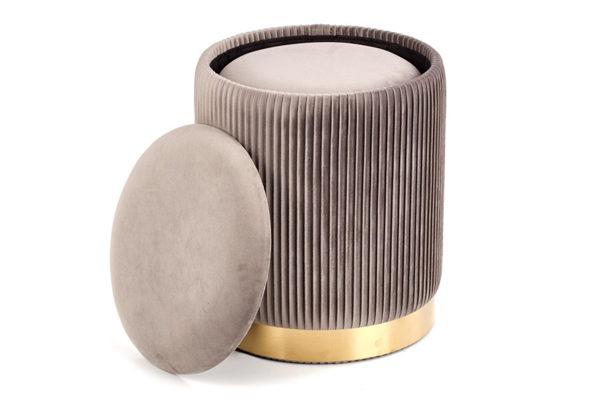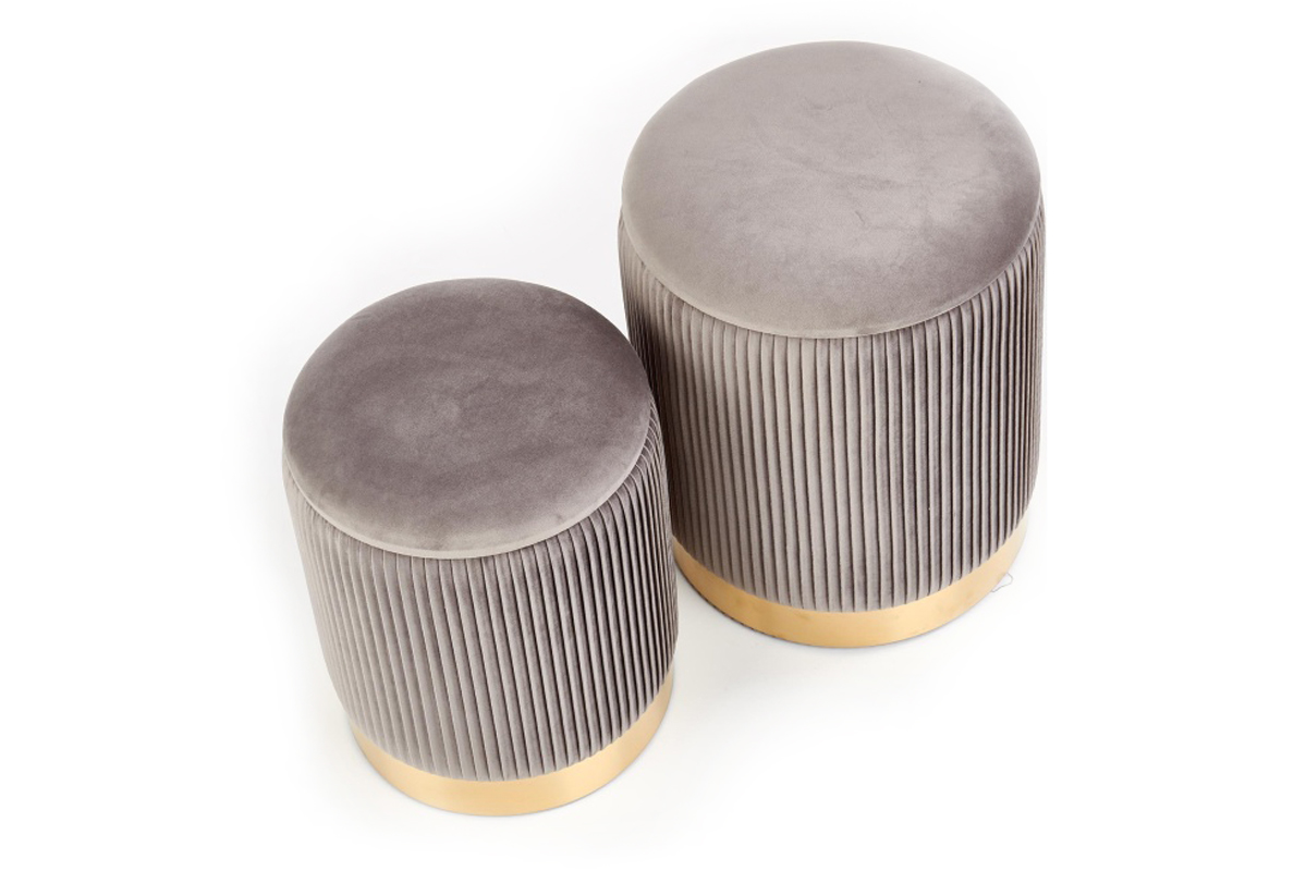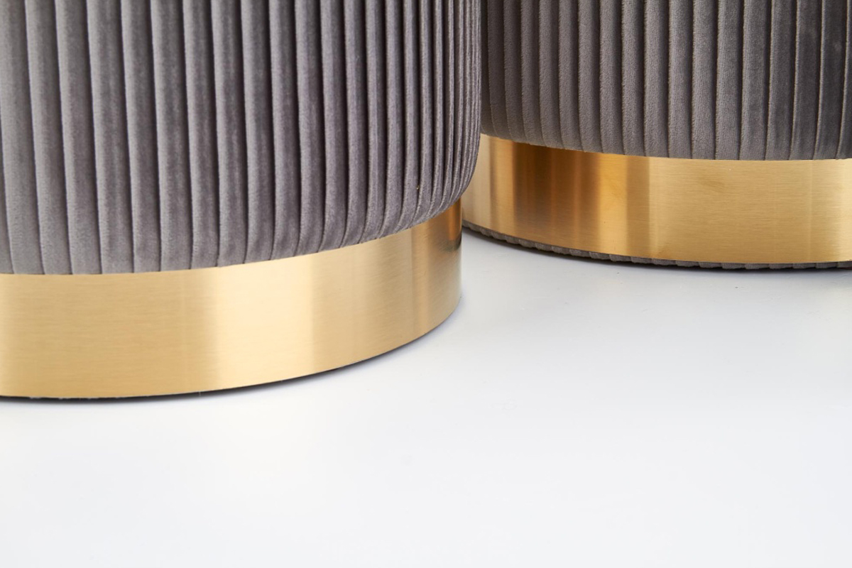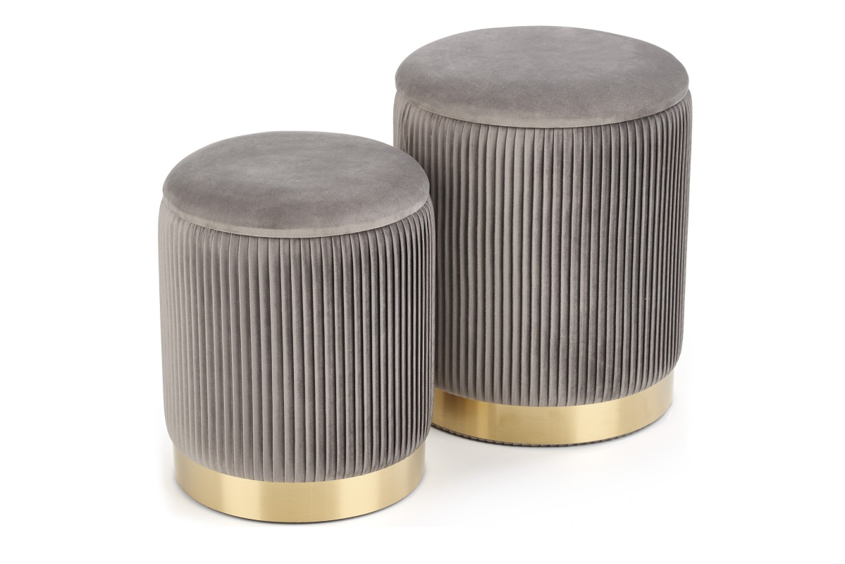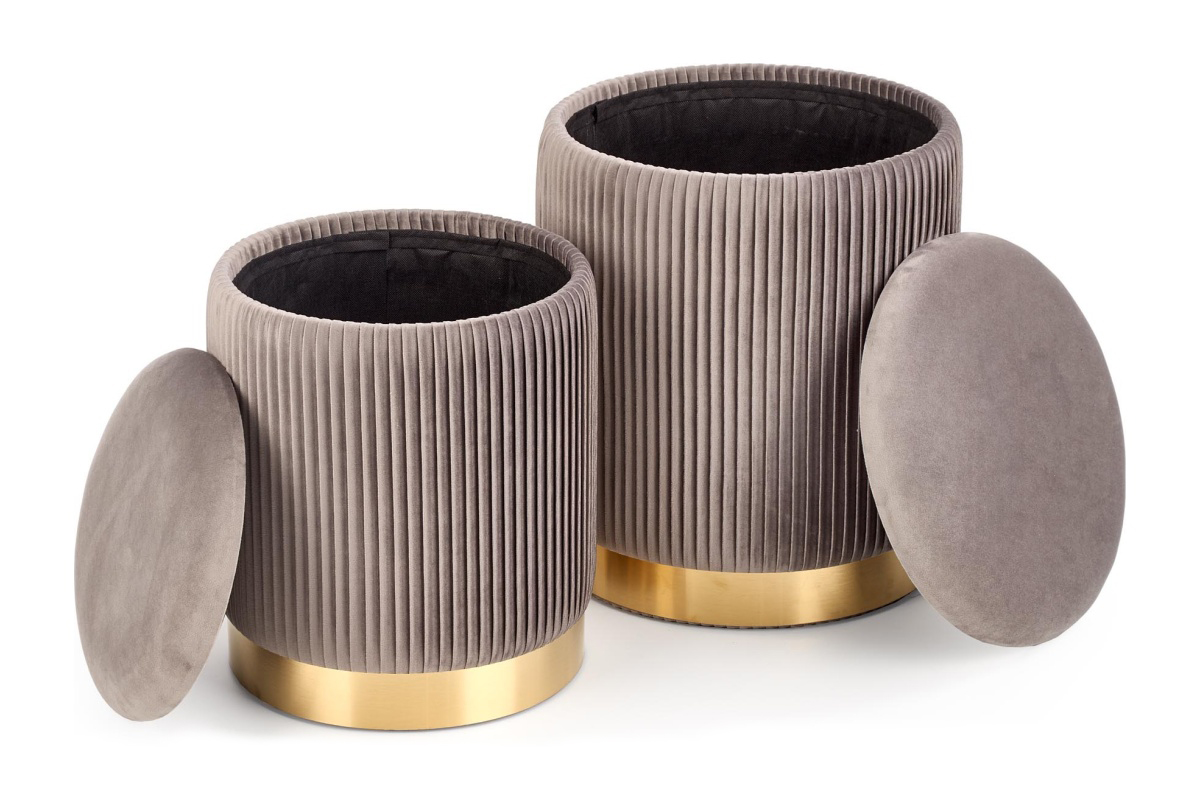 BRITIS Objav celú kolekciu Súprava 2 okrúhlych velúrových pufov s úložným priestorom, sivá- farba šedá/zlatá