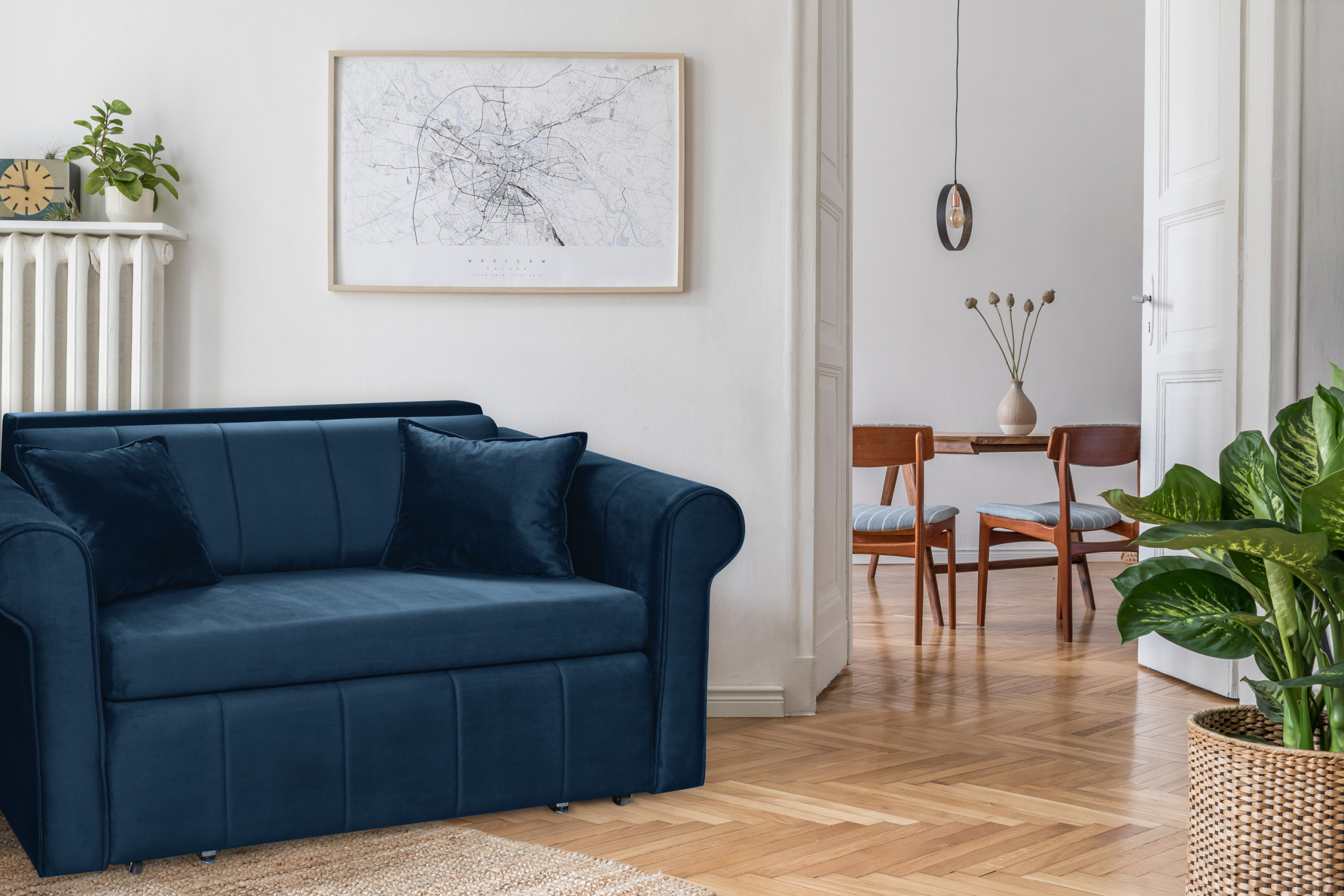 LAVIO Objav celú kolekciu Pohovka velvet glamour s vankúšmi tmavo modrá- farba námořnictvo