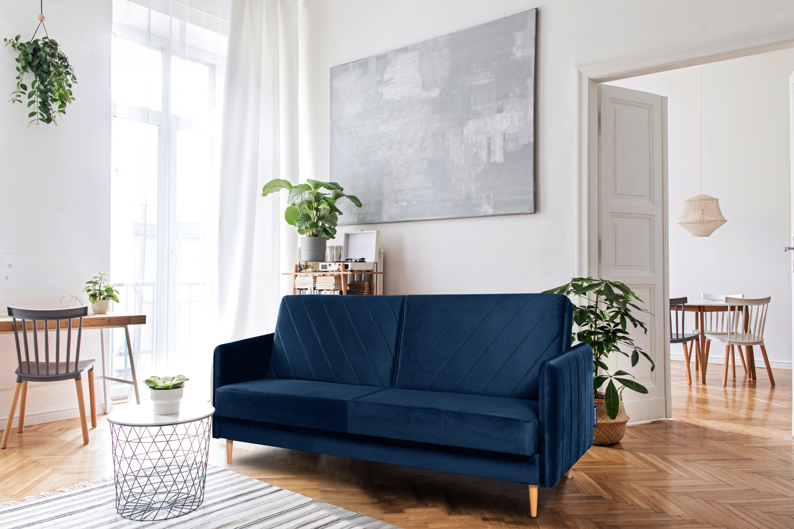 ORDO Objav celú kolekciu Velúrová pohovka s prešívaním, tmavo modrá- farba námořnictvo
