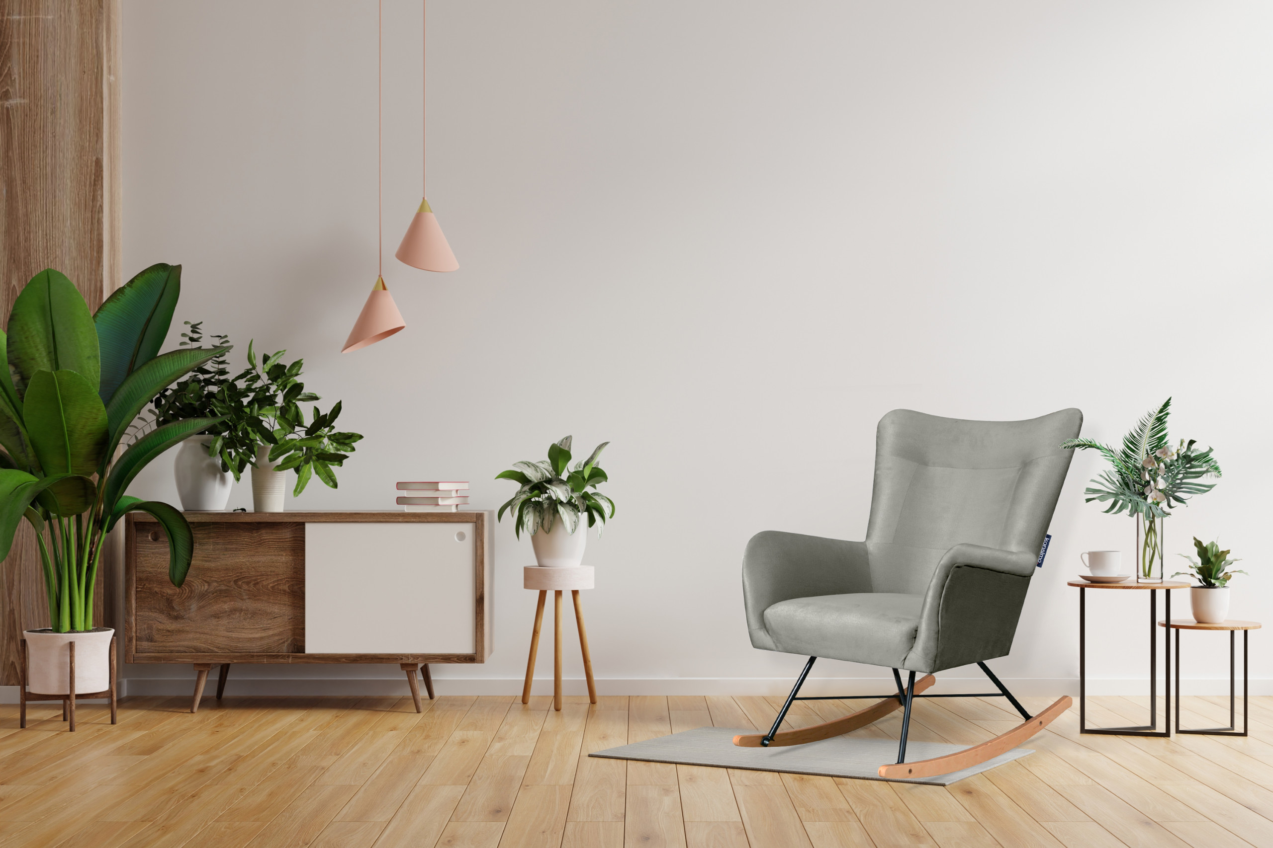 ADDUCTI Objav celú kolekciu Škandinávske béžové hojdacie kreslo ušiak- farba šedá