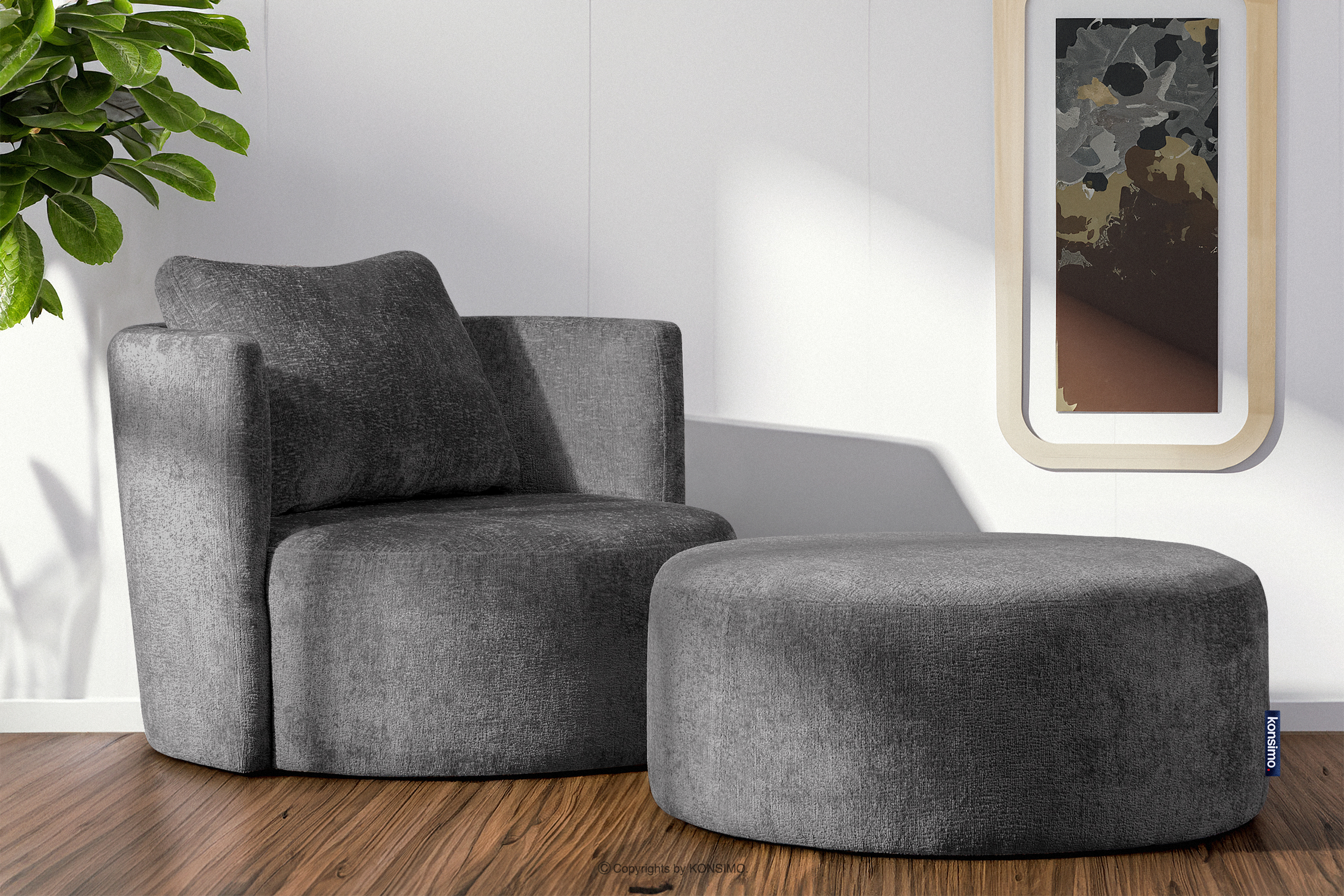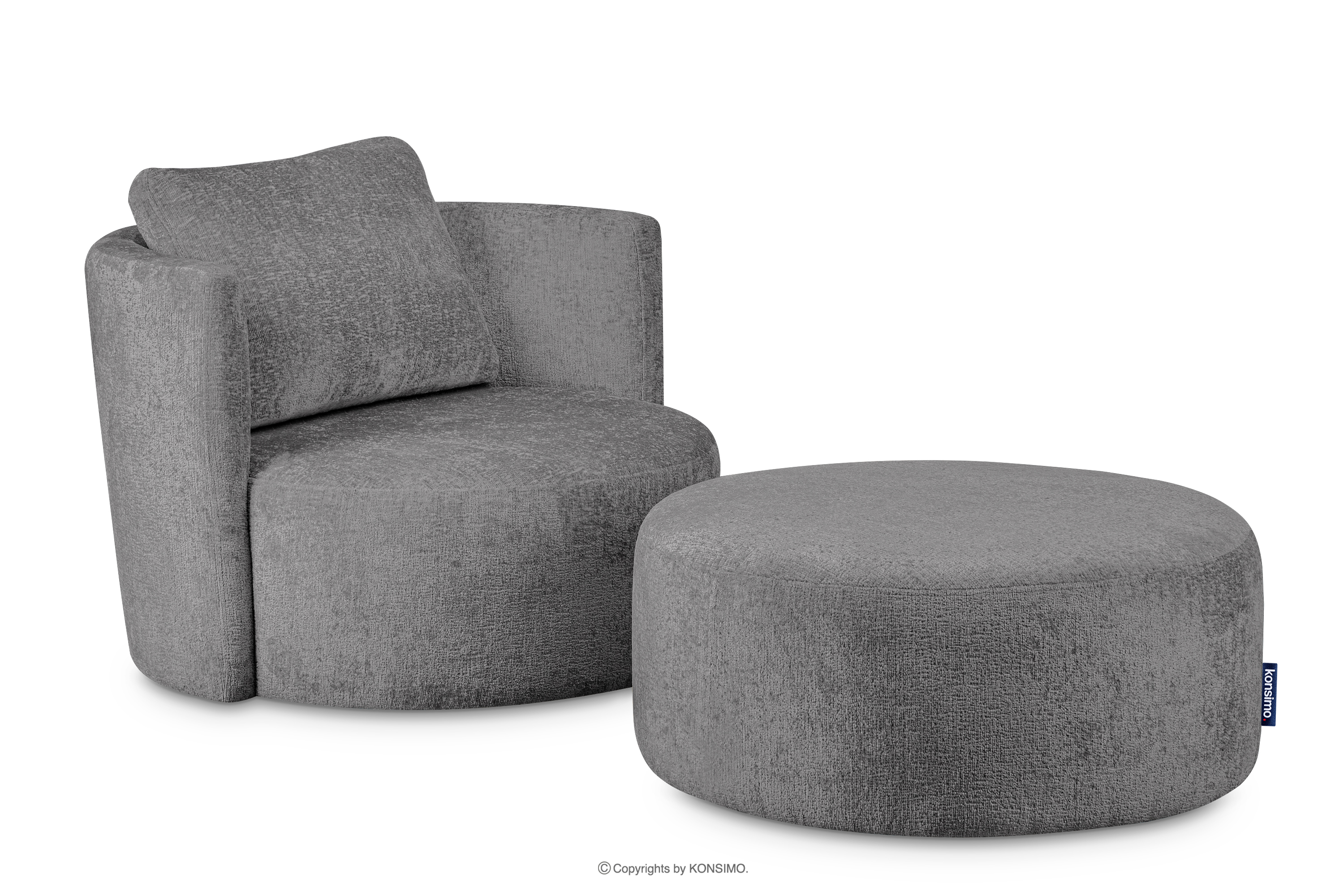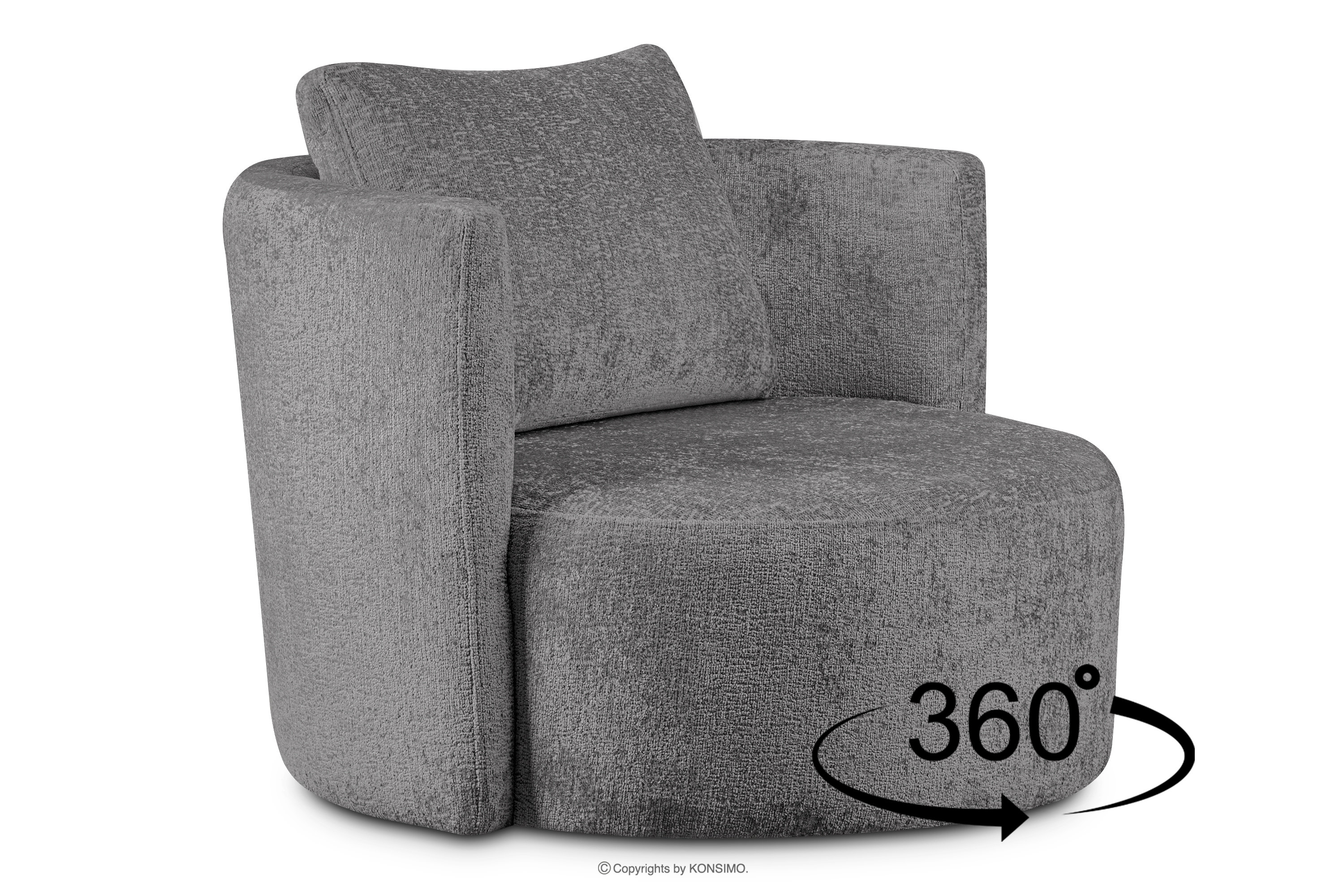 RAGGI Objav celú kolekciu Otočné kreslo v šenilovej látke sivej farby- farba šedá