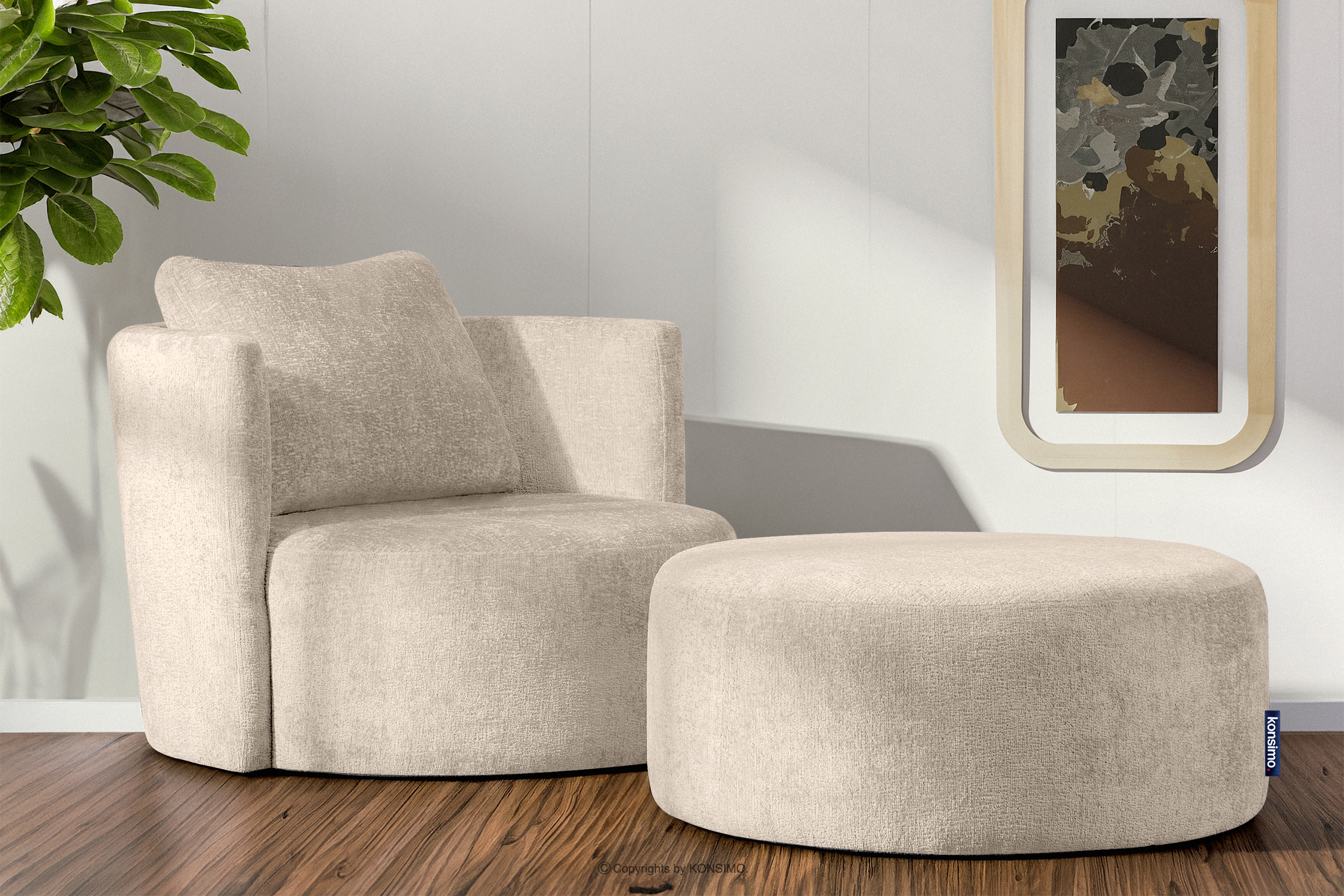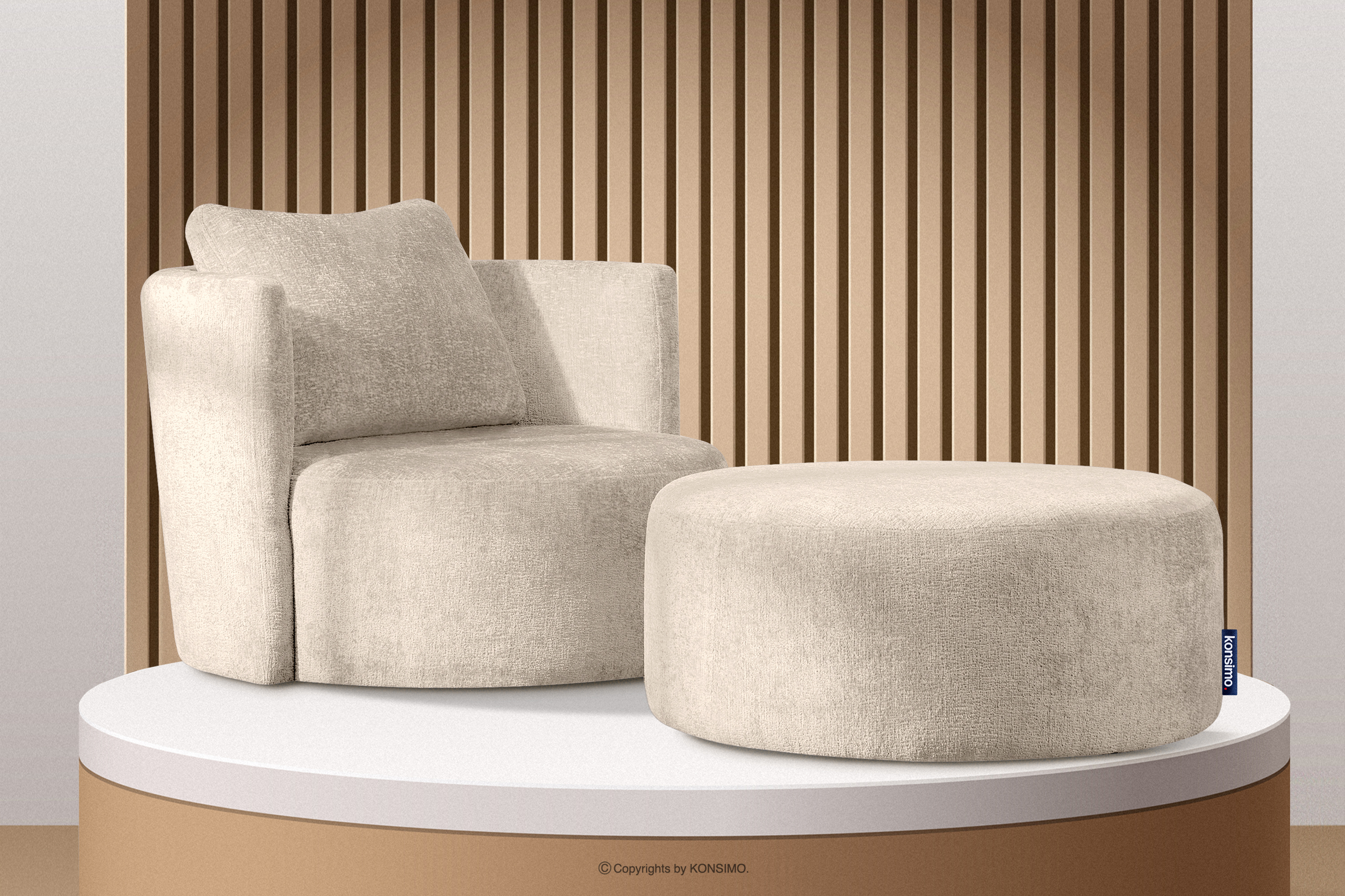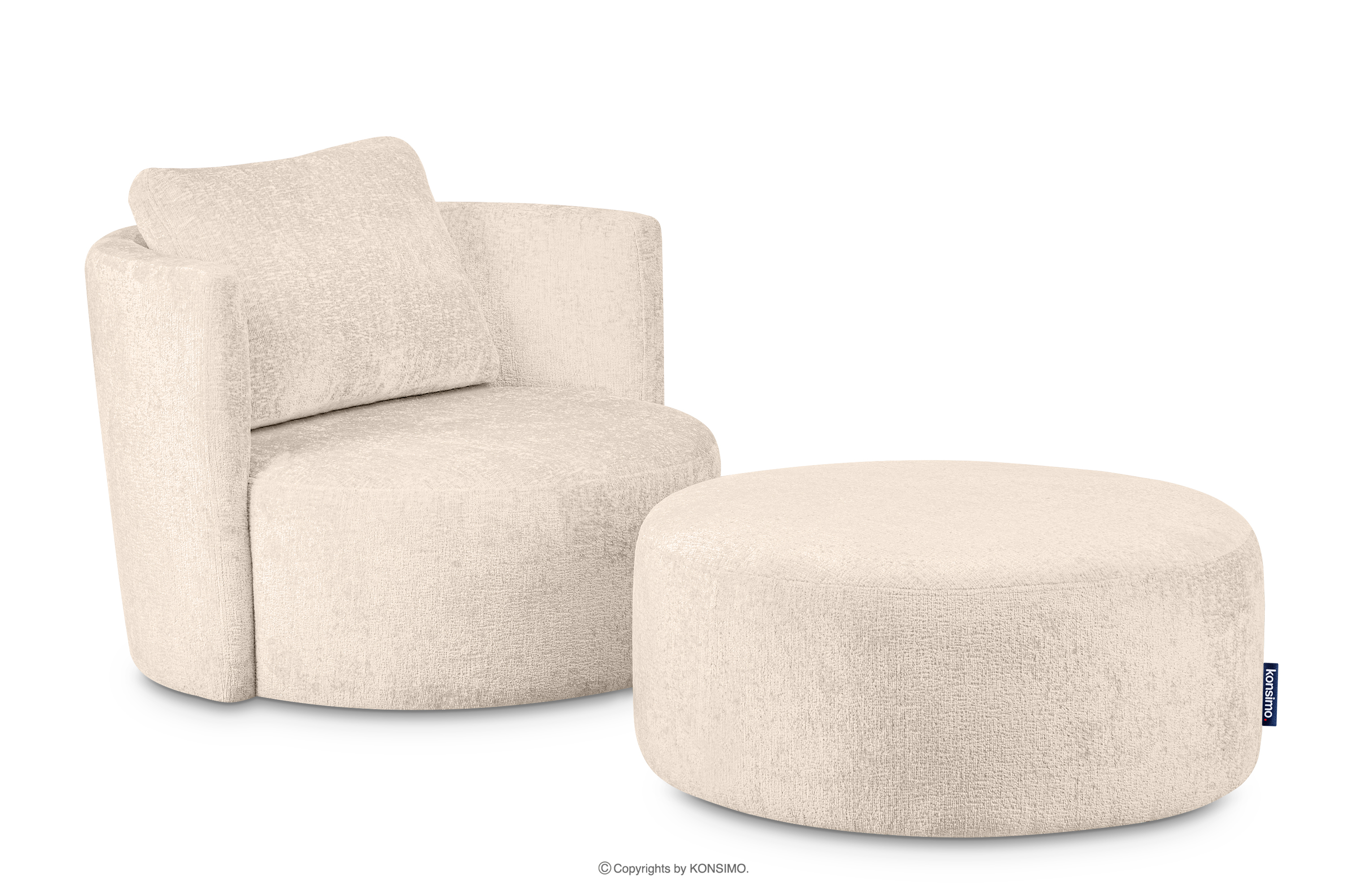 RAGGI Šenilové otočné kreslo ecru