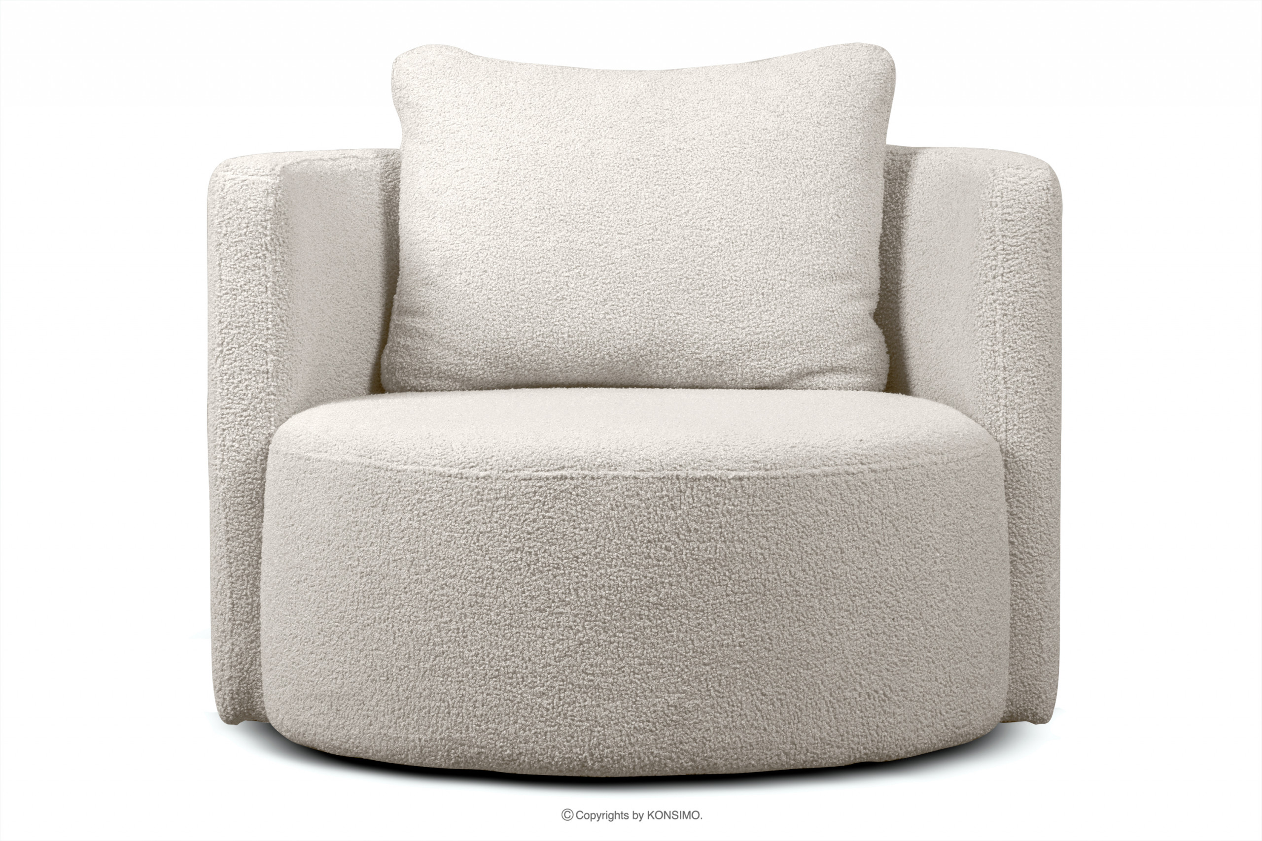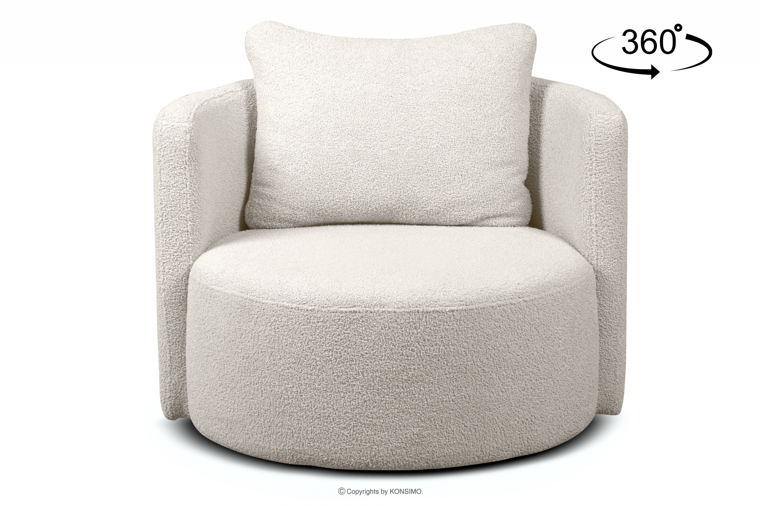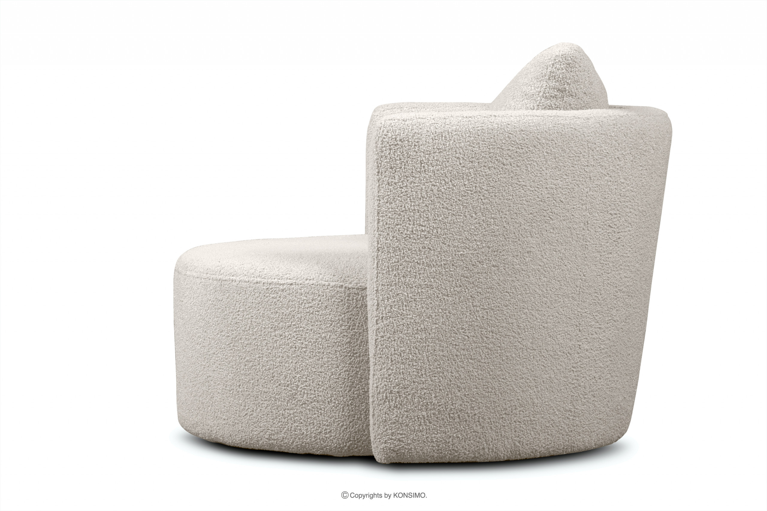 Kreslo a otočné kreslo boucle krémová jahňacia koža RAGGI sú výrobky, ktoré svojím nevšedným dizajnom zaujmú každého. Ich jedinečnosť spočíva v tom, že oba kusy sú otočné o 360 stupňov! Sú vyrobené v modernom štýle, ale nájdu si cestu aj do loftových alebo dokonca boho aranžmánov. Čalúnenie kresla je vyrobené z tzv.
