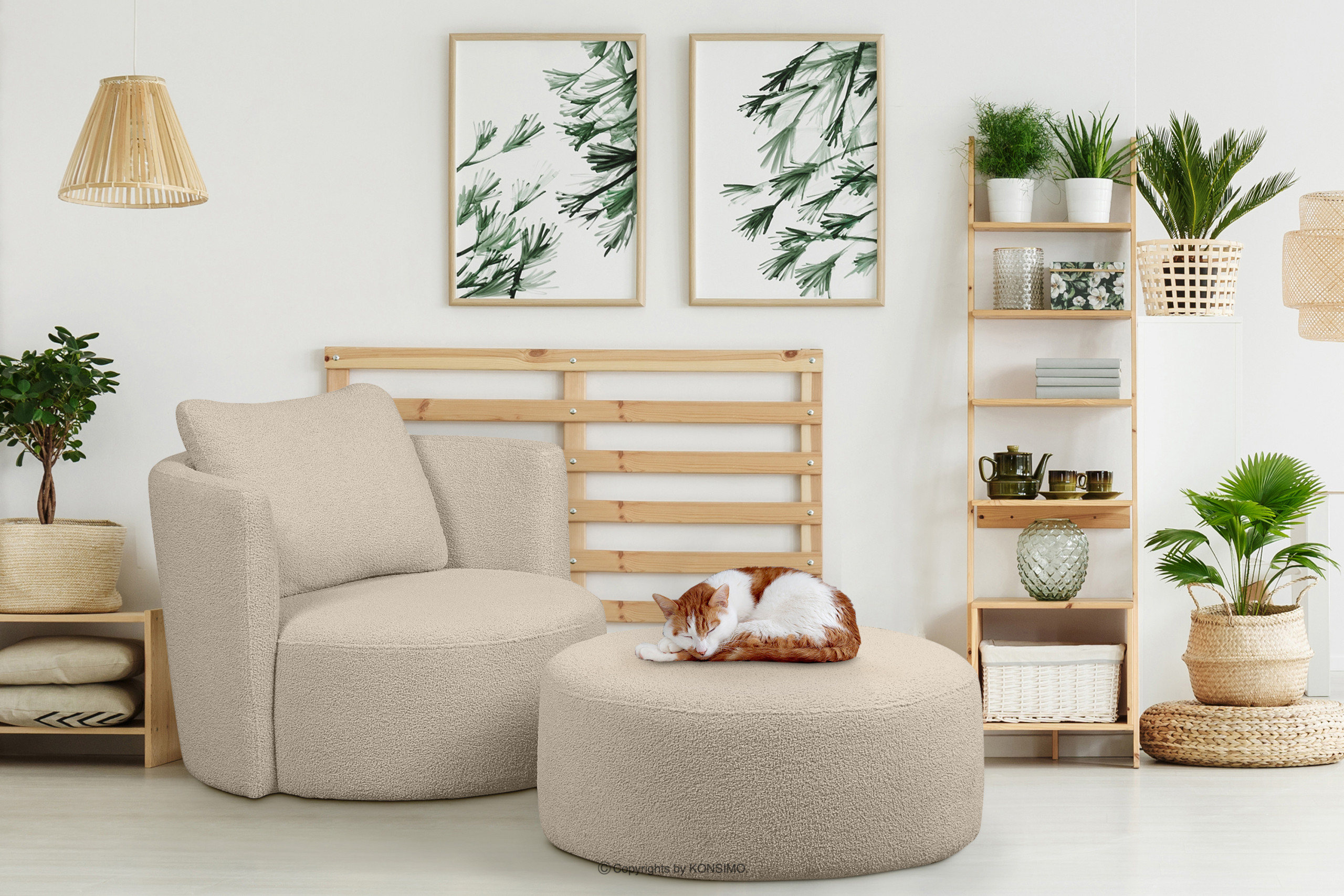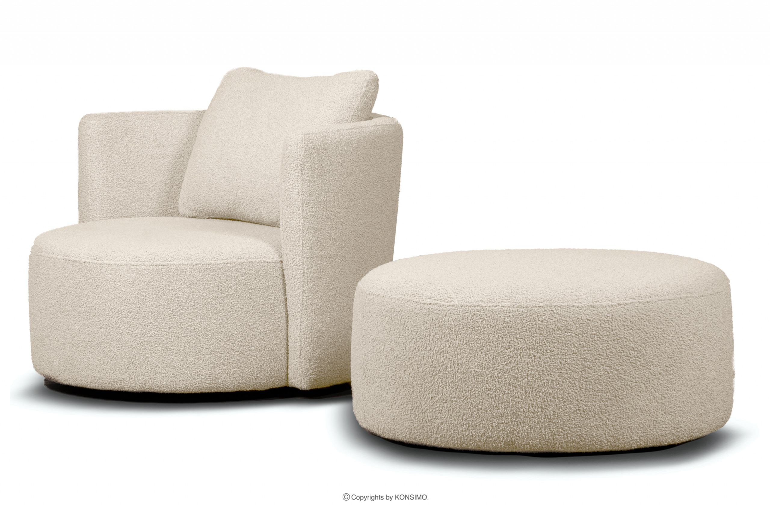 produktu Kreslo Boucle a otočný puf svetlá béžová ovčia koža
