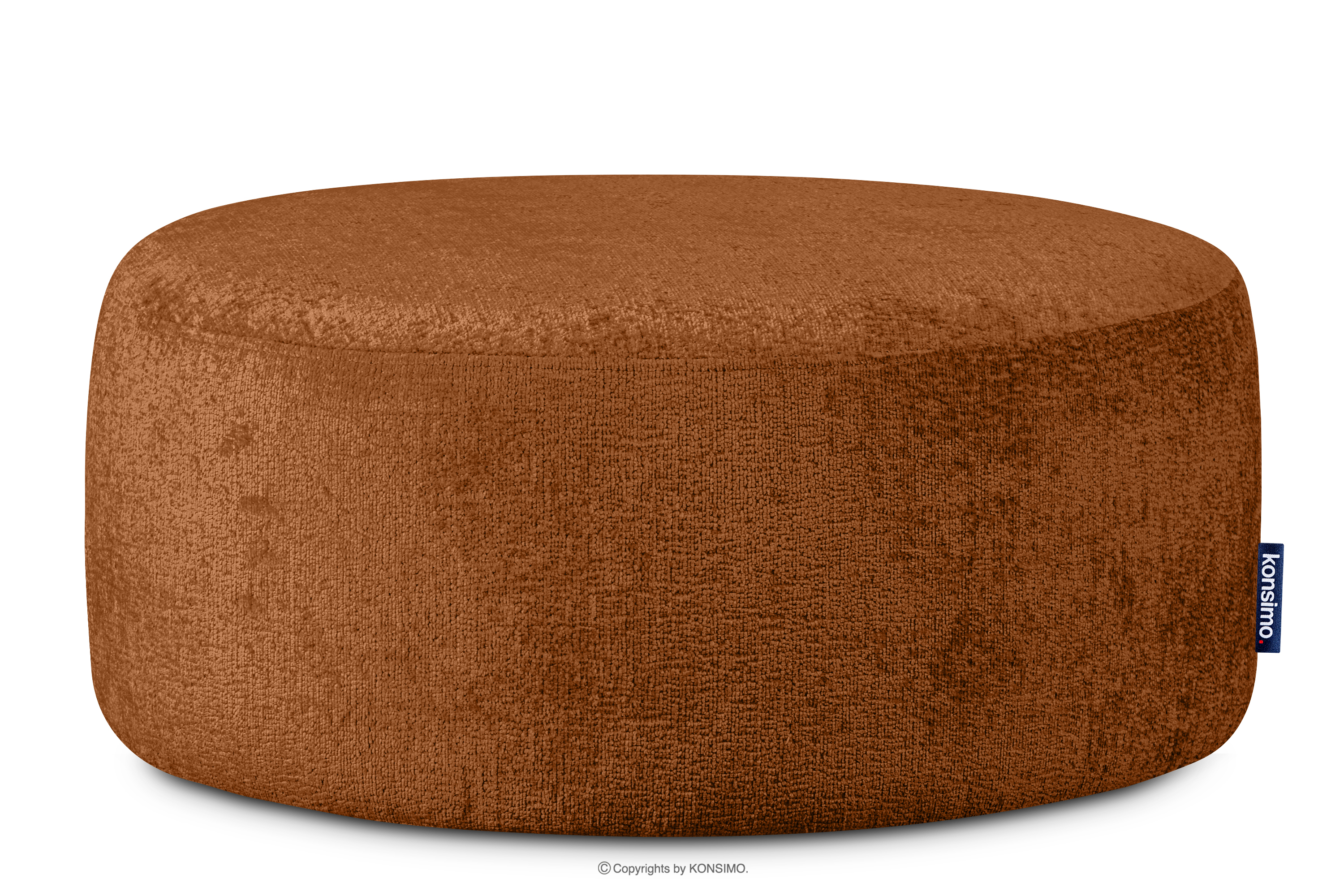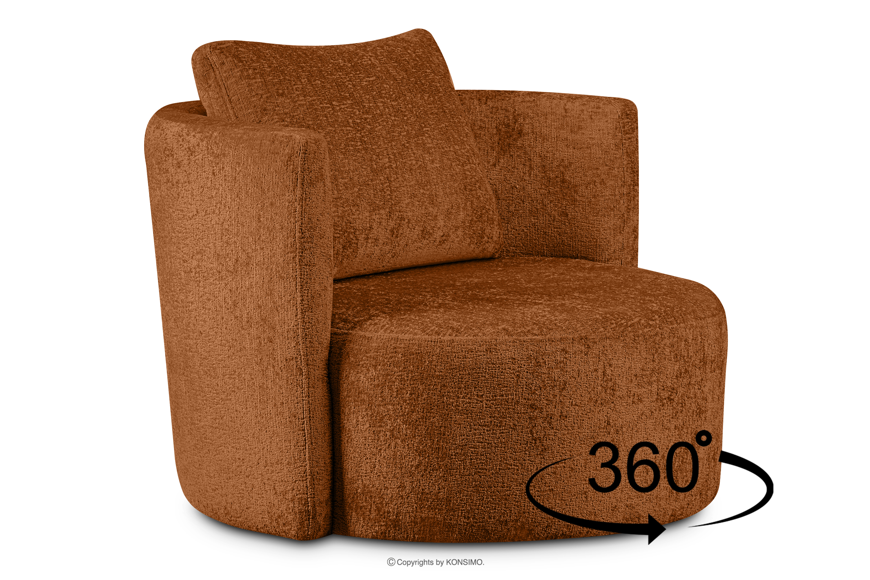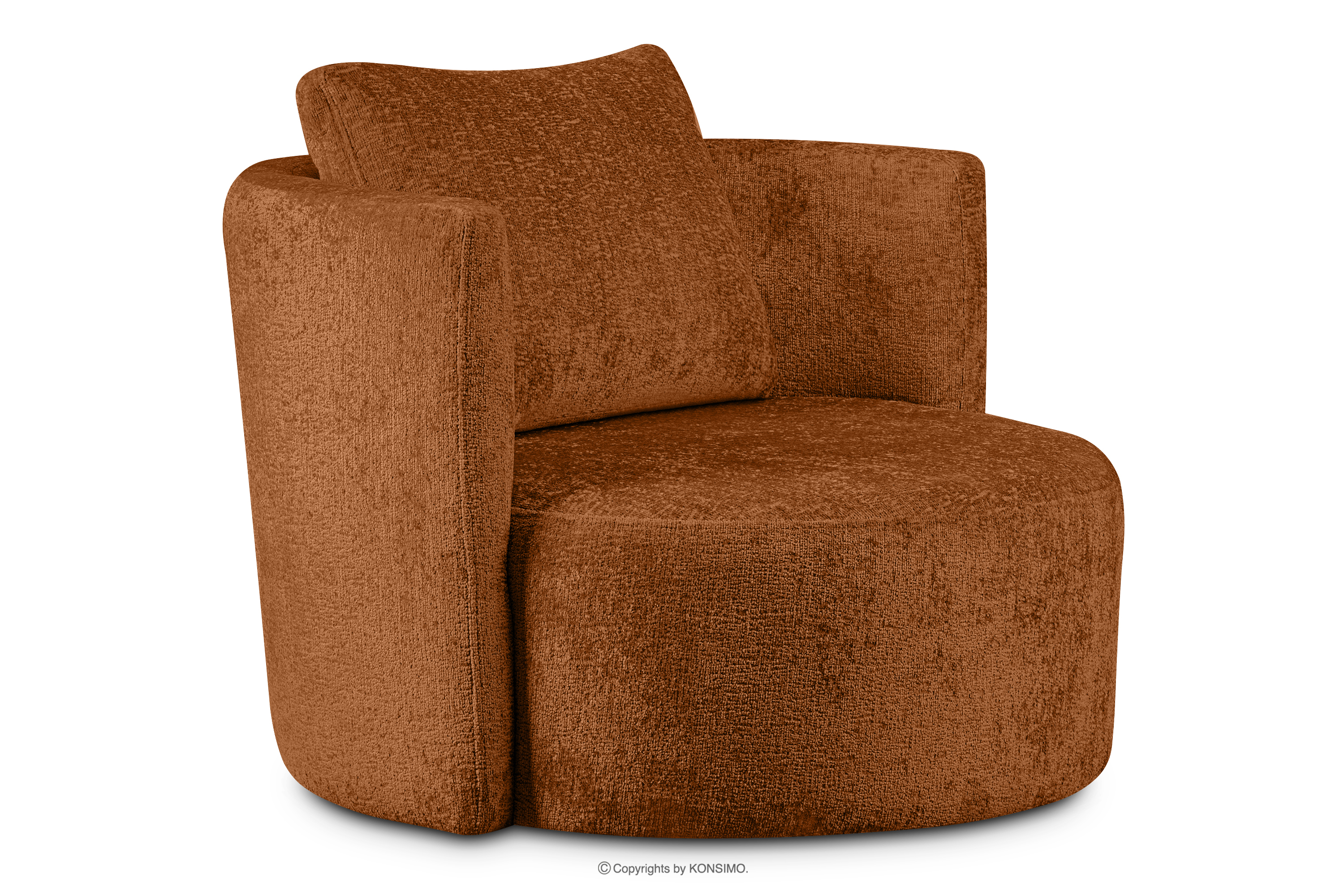 Súprava kresla a otočného pufu zo šenilovej červenej látky RAGGI - farba červená