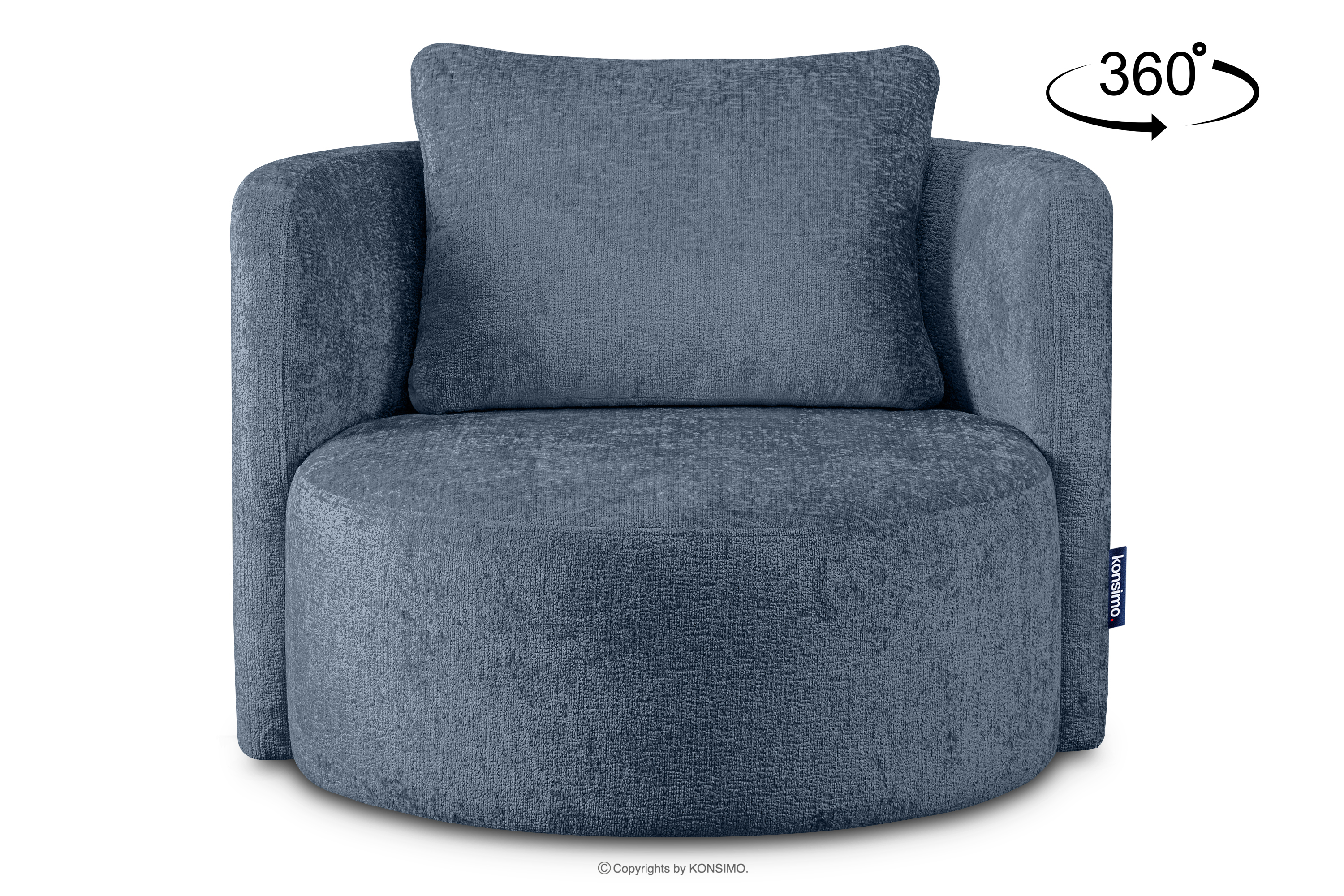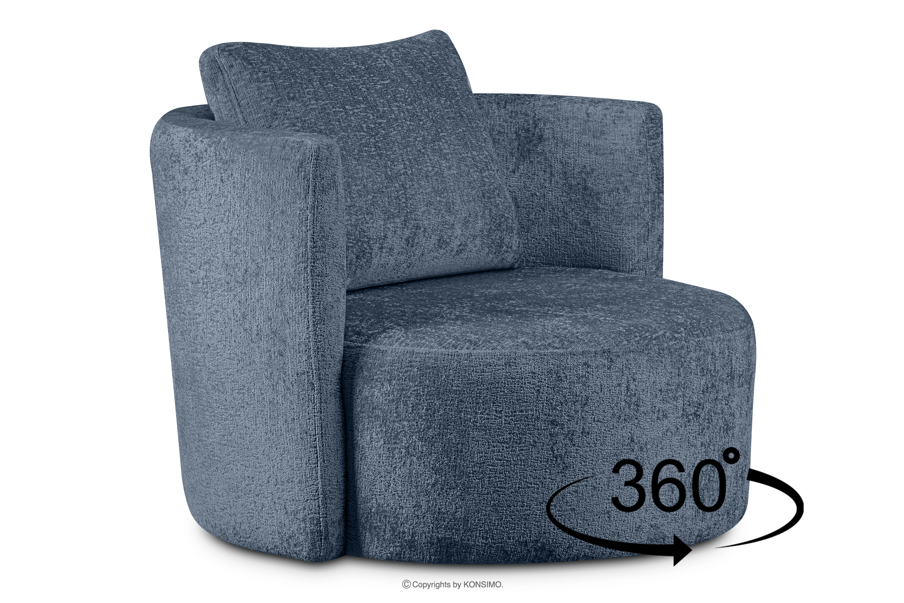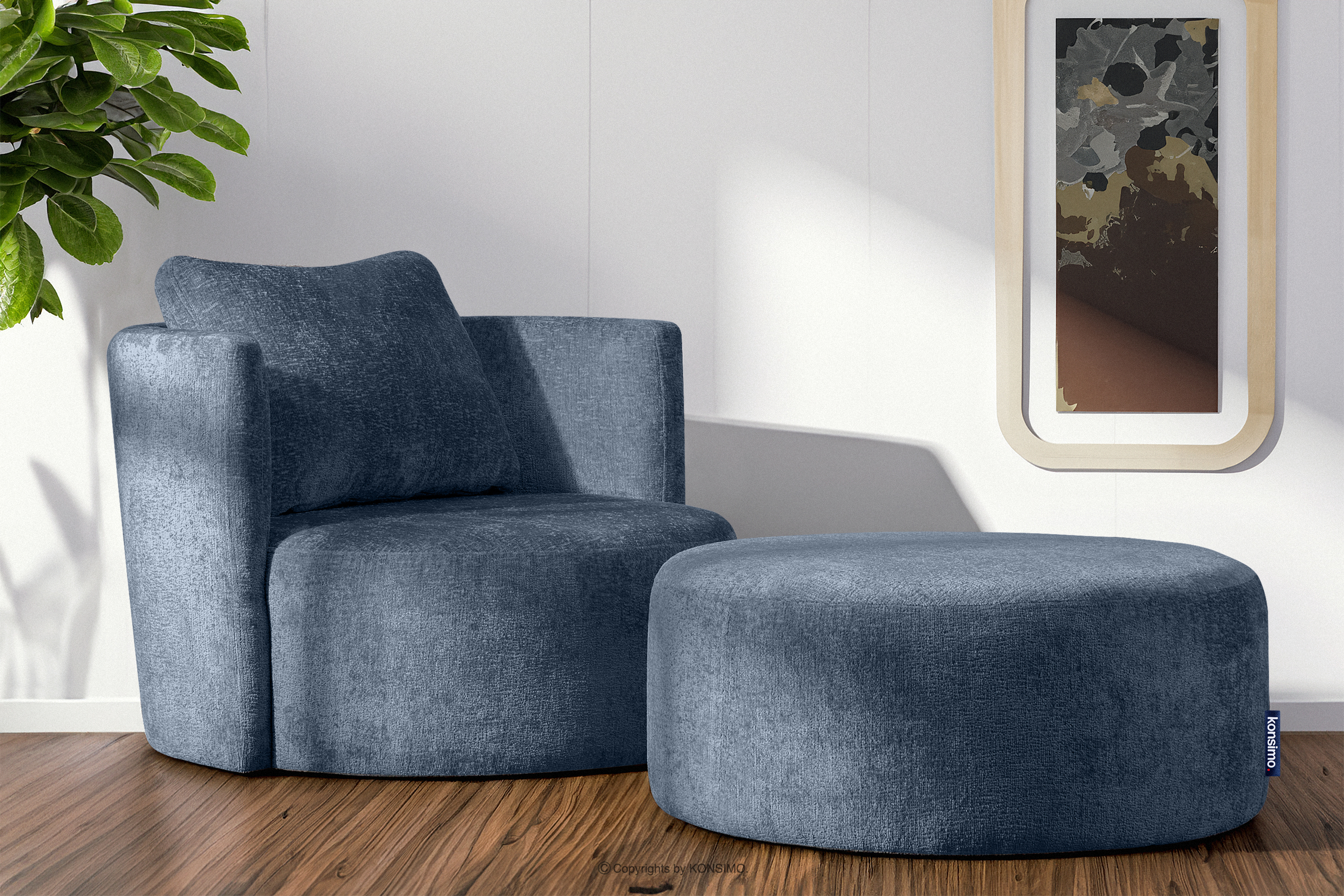 RAGGI Objav celú kolekciu Súprava kresla a otočného pufu v tmavomodrej šenilovej látke- farba tmavomodrá