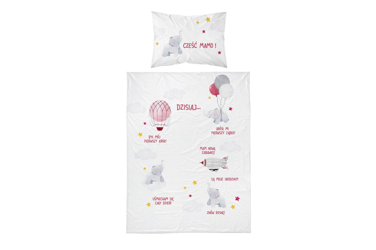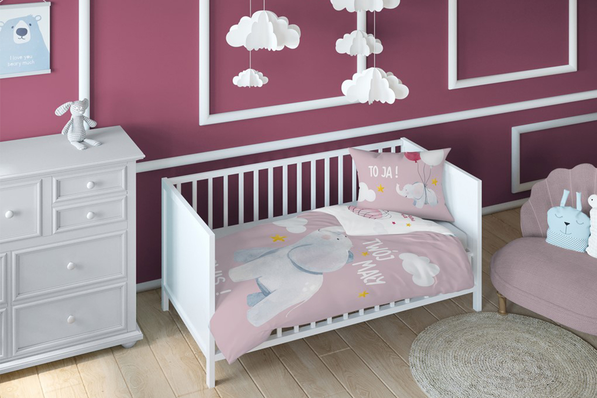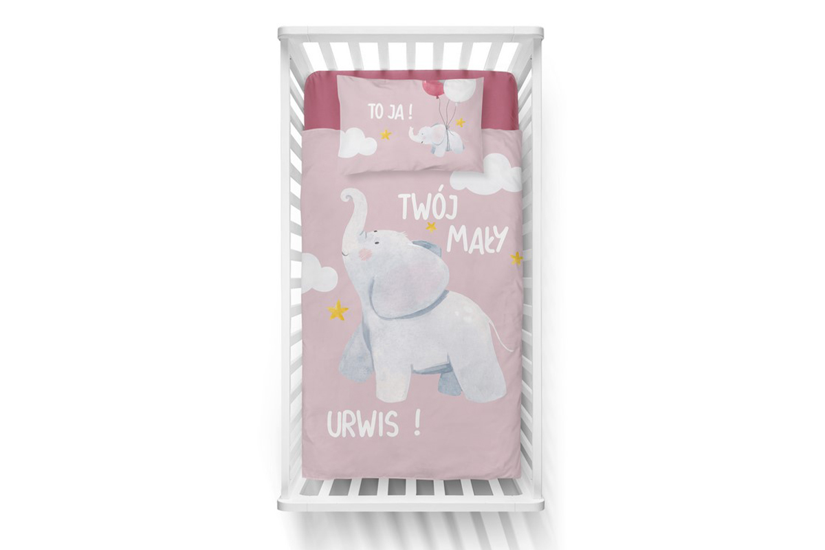 LULA Objav celú kolekciu Ružovo-biele detské obliečky so slonom, 90x120 cm- farba růžová/bílá