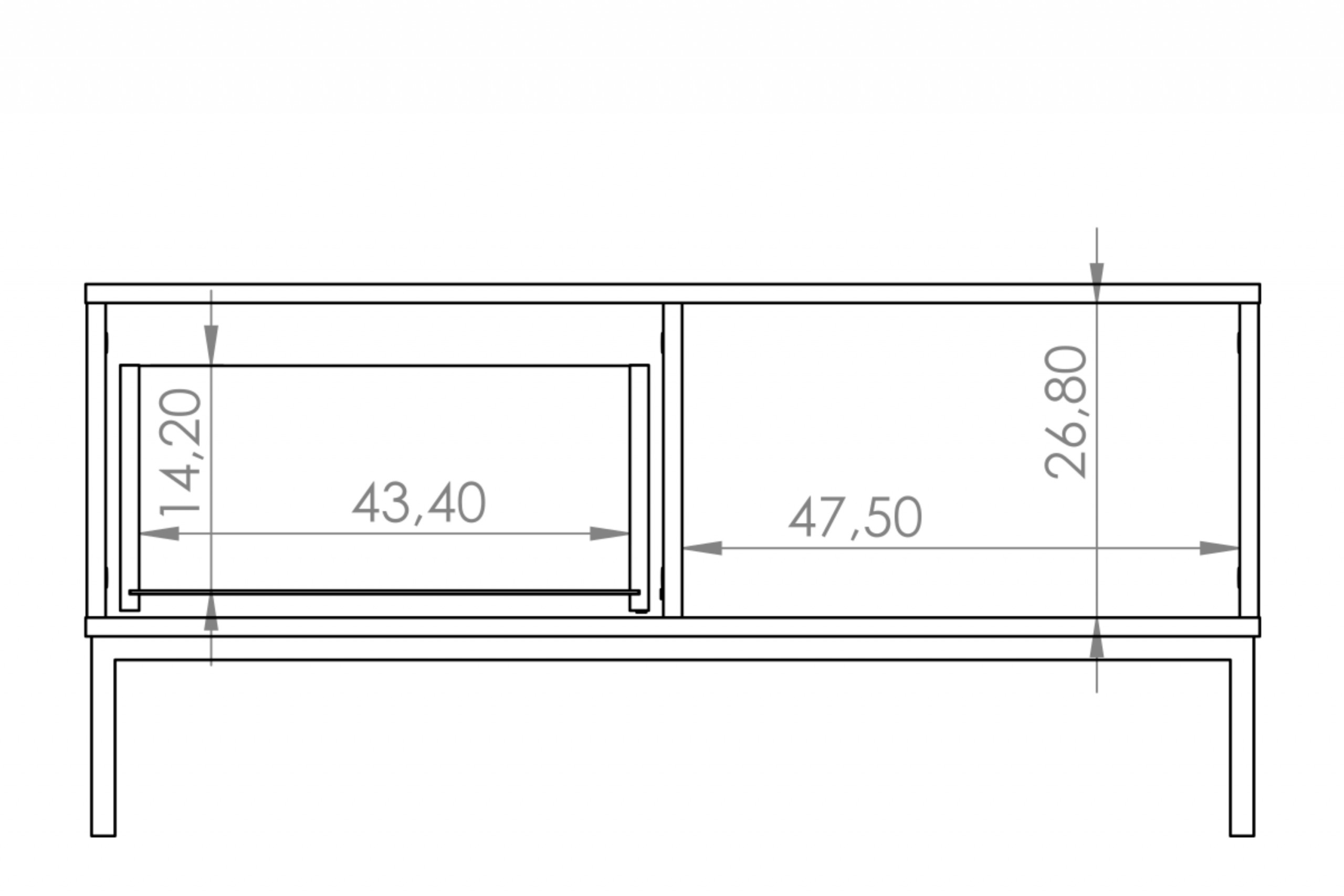 Konferenčný stolík je vyrobený z drevotrieskovej dosky, ktorá zaručuje stabilitu a odolnosť na dlhé roky, a zadná doska je vyrobená z HDF. Má dve zásuvky so spodnými koľajničkami, takže nevypadávajú, sú robustné a menej viditeľné ako štandardné zásuvky. Možno ich použiť na odkladanie praktických predmetov, ako sú diaľkové ovládače alebo noviny, a udržiavať tak v miestnosti poriadok.