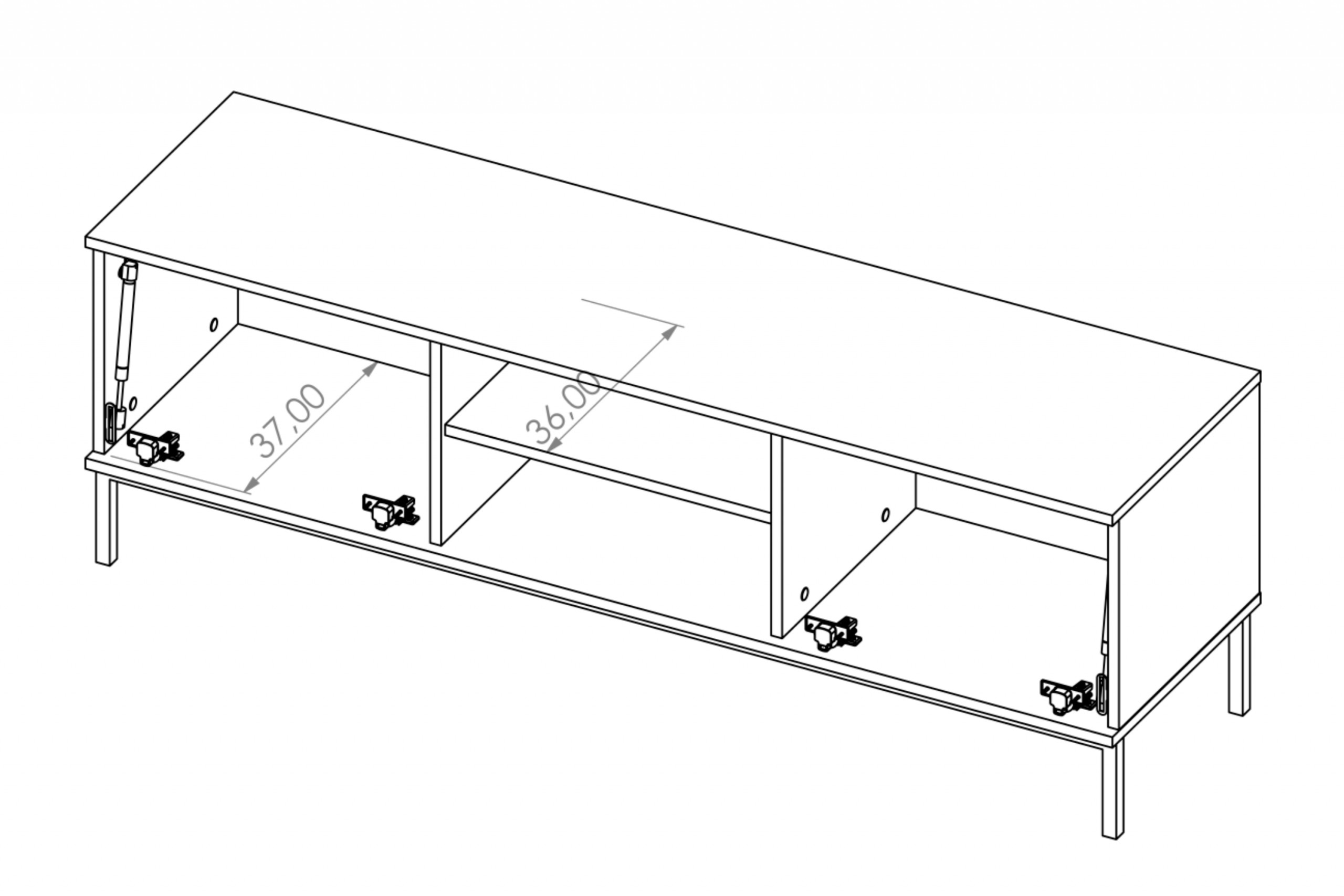 Stôl je vyrobený z drevotrieskovej dosky, ktorá zaručuje stabilitu a odolnosť na dlhé roky, a zadná stena je vyrobená z HDF. Na pravej a ľavej strane sú výklopné dvere, ktoré sa otvárajú pomocou plynových fliaš. Môžete za ne uložiť praktické predmety, ktoré nechcete nevyhnutne vystavovať.