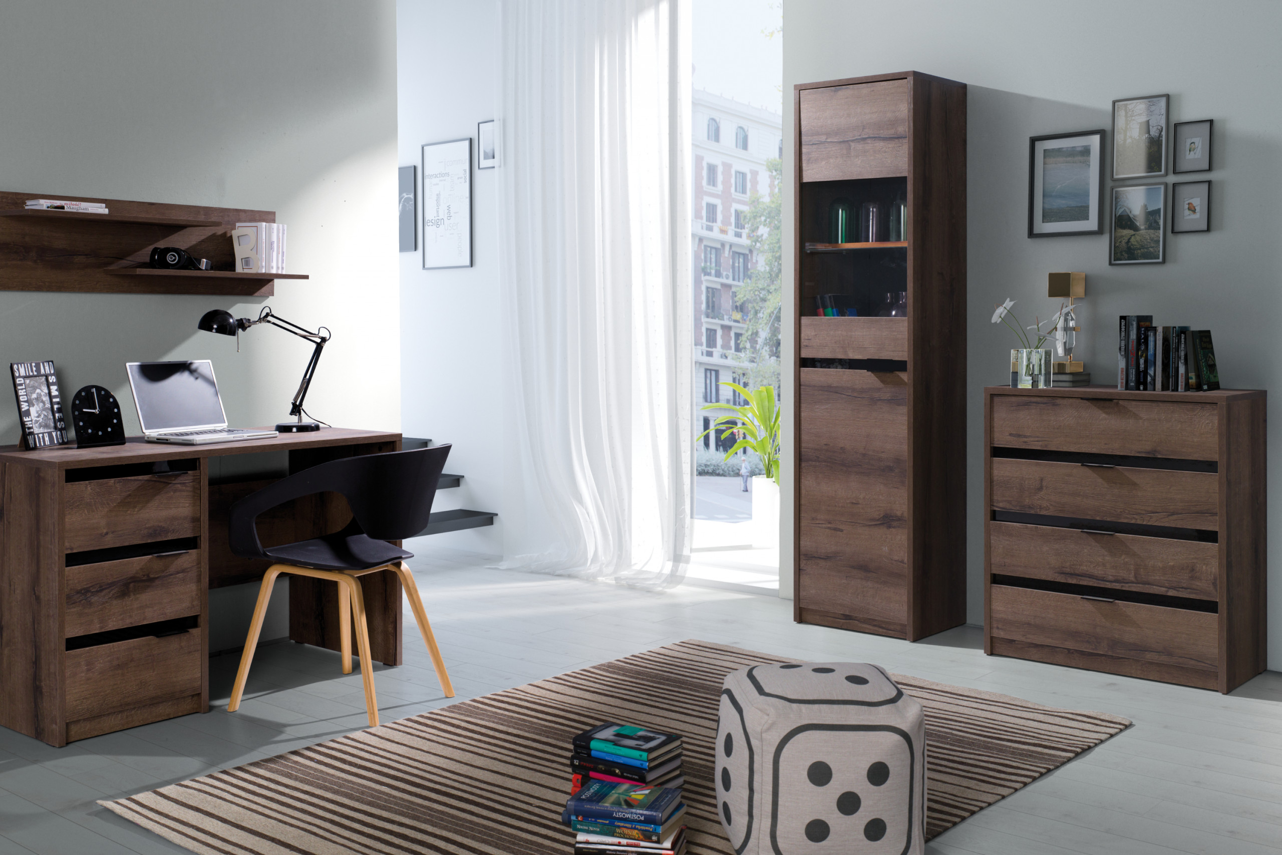MERO Objav celú kolekciu Štýlová závesná knižnica do obývacej izby- farba klášterní dub