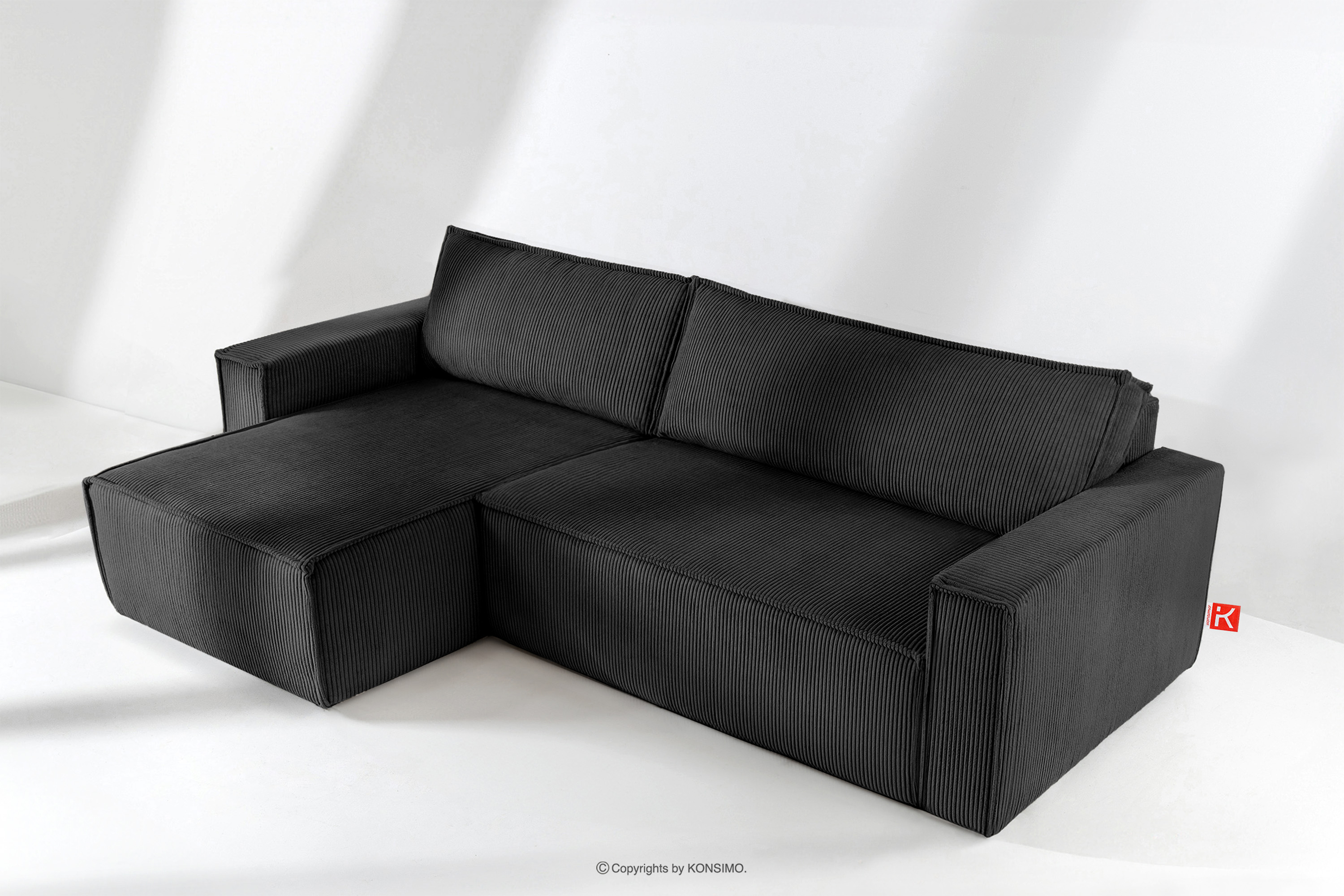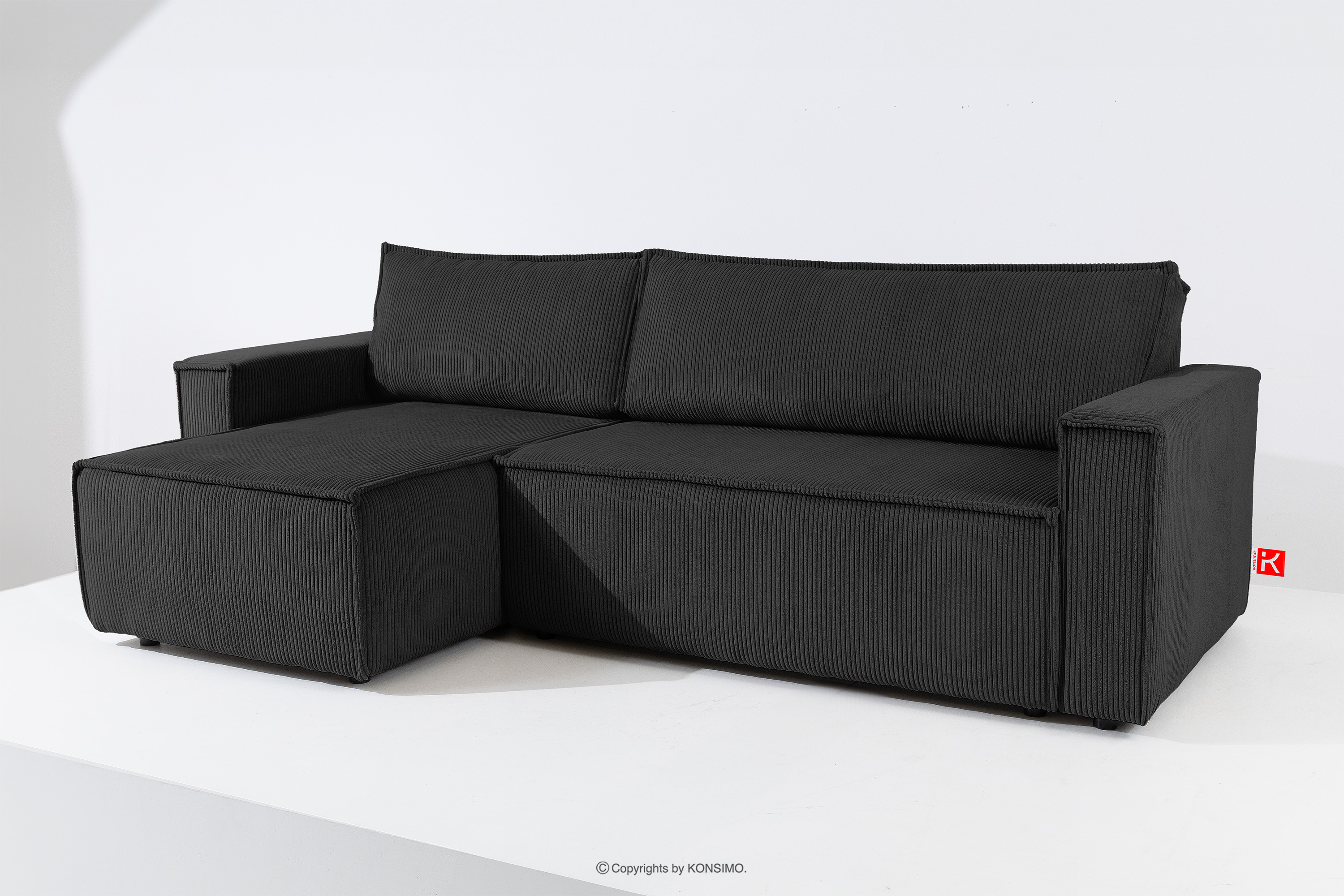NAPI Objav celú kolekciu Veľká rozkladacia rohová pohovka manšestrová čierna pravá/ľavá- farba čierna