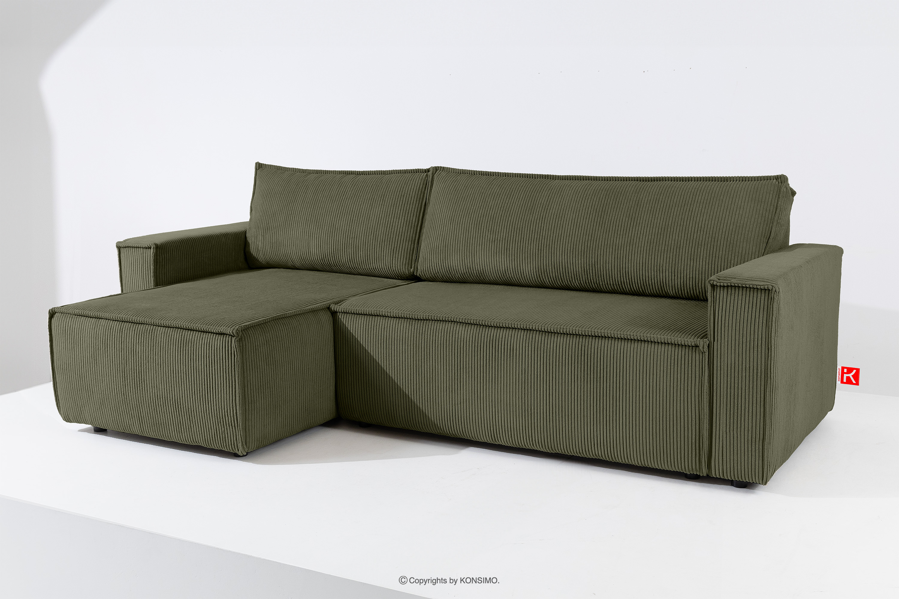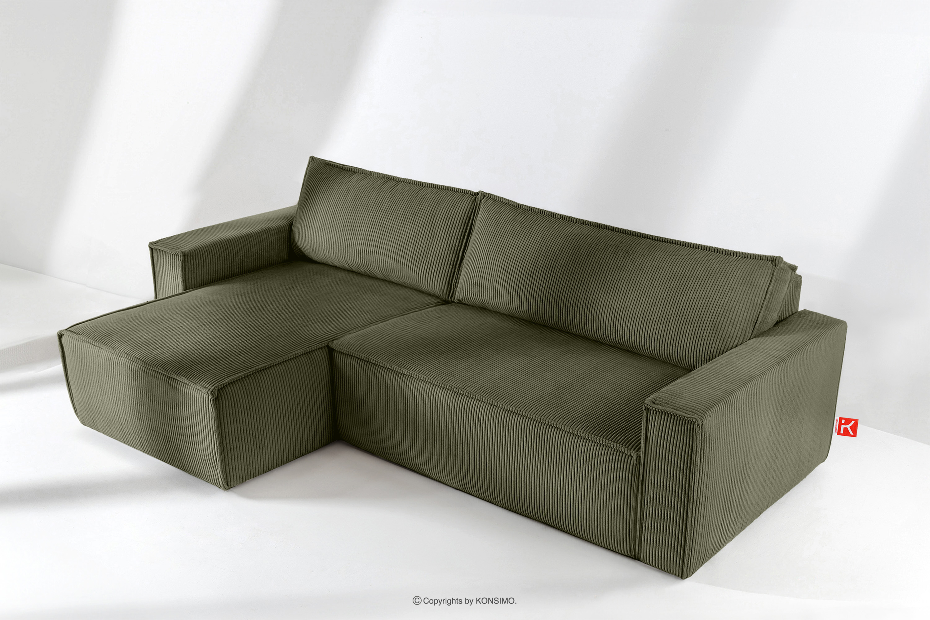 NAPI Objav celú kolekciu Veľká rozkladacia rohová sedačka z manšestru olivová pravá/ľavá- farba olivová