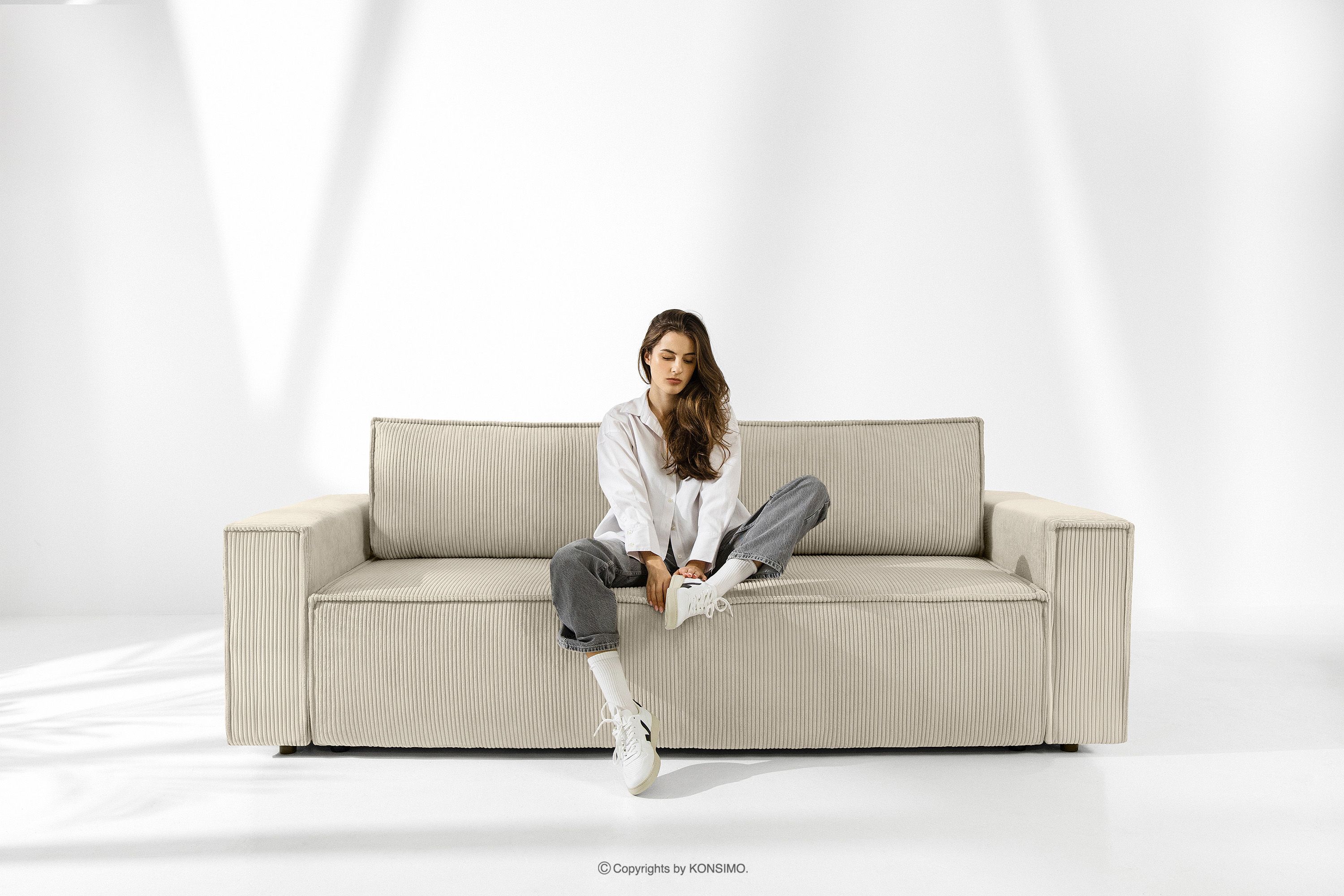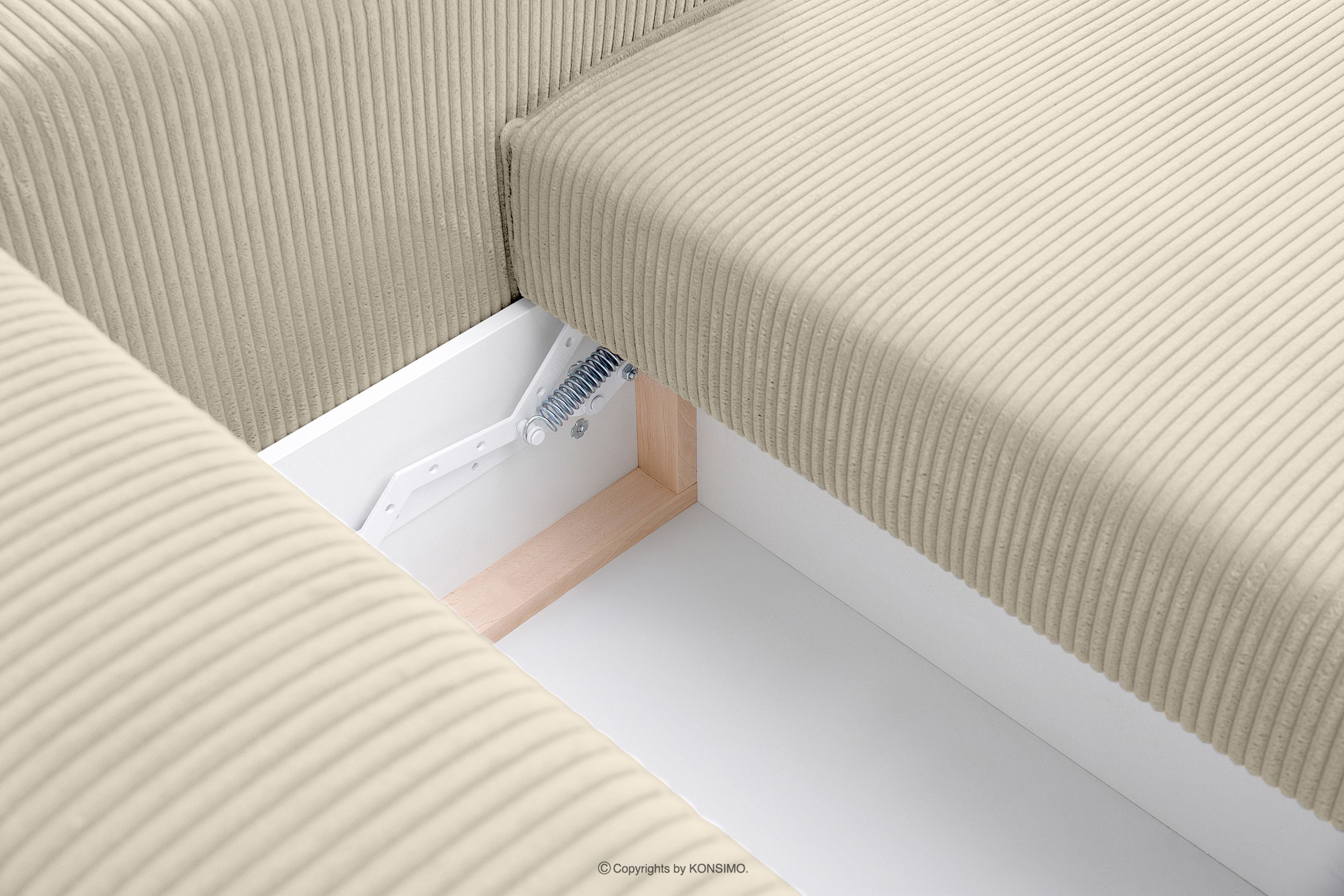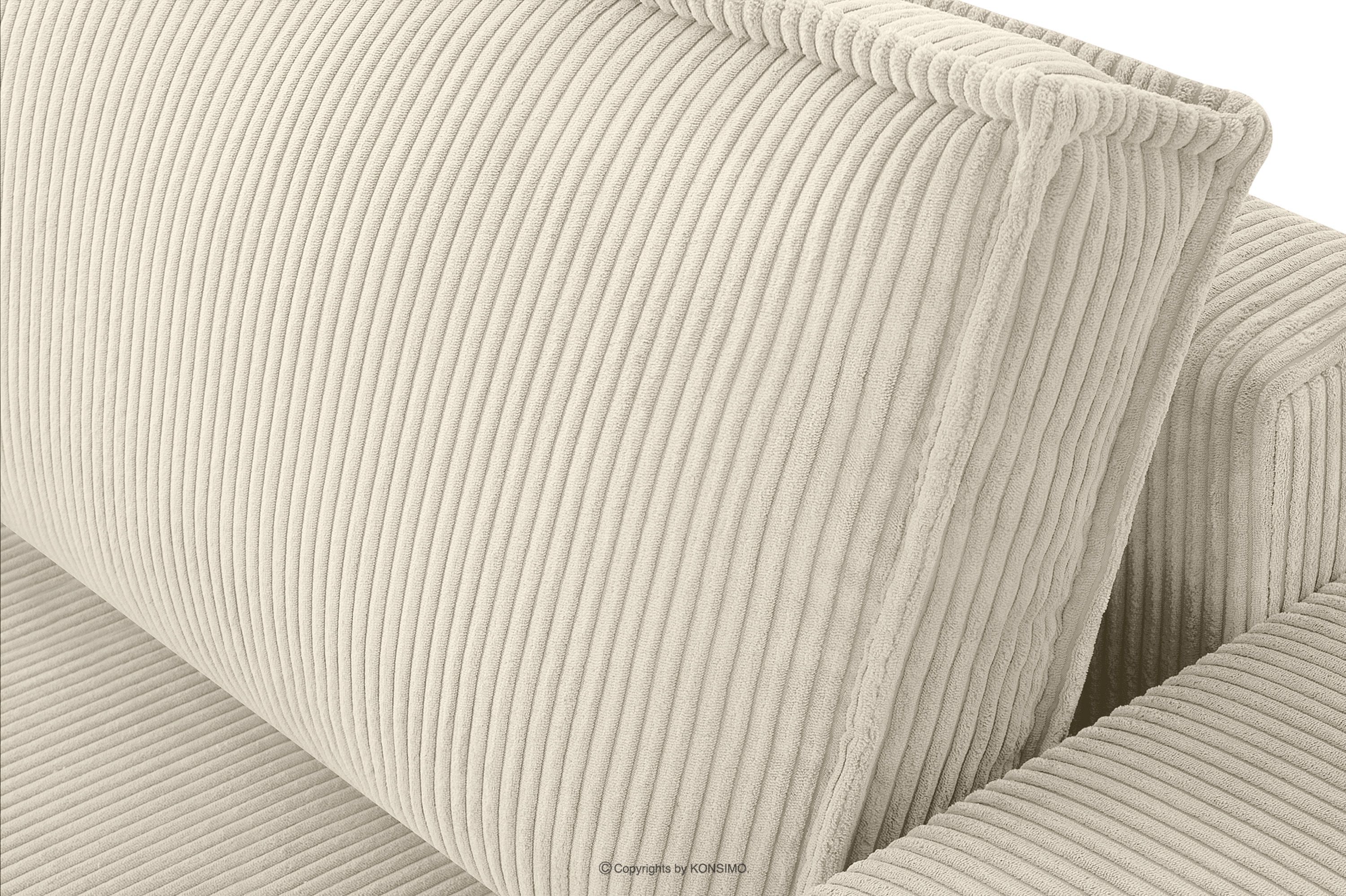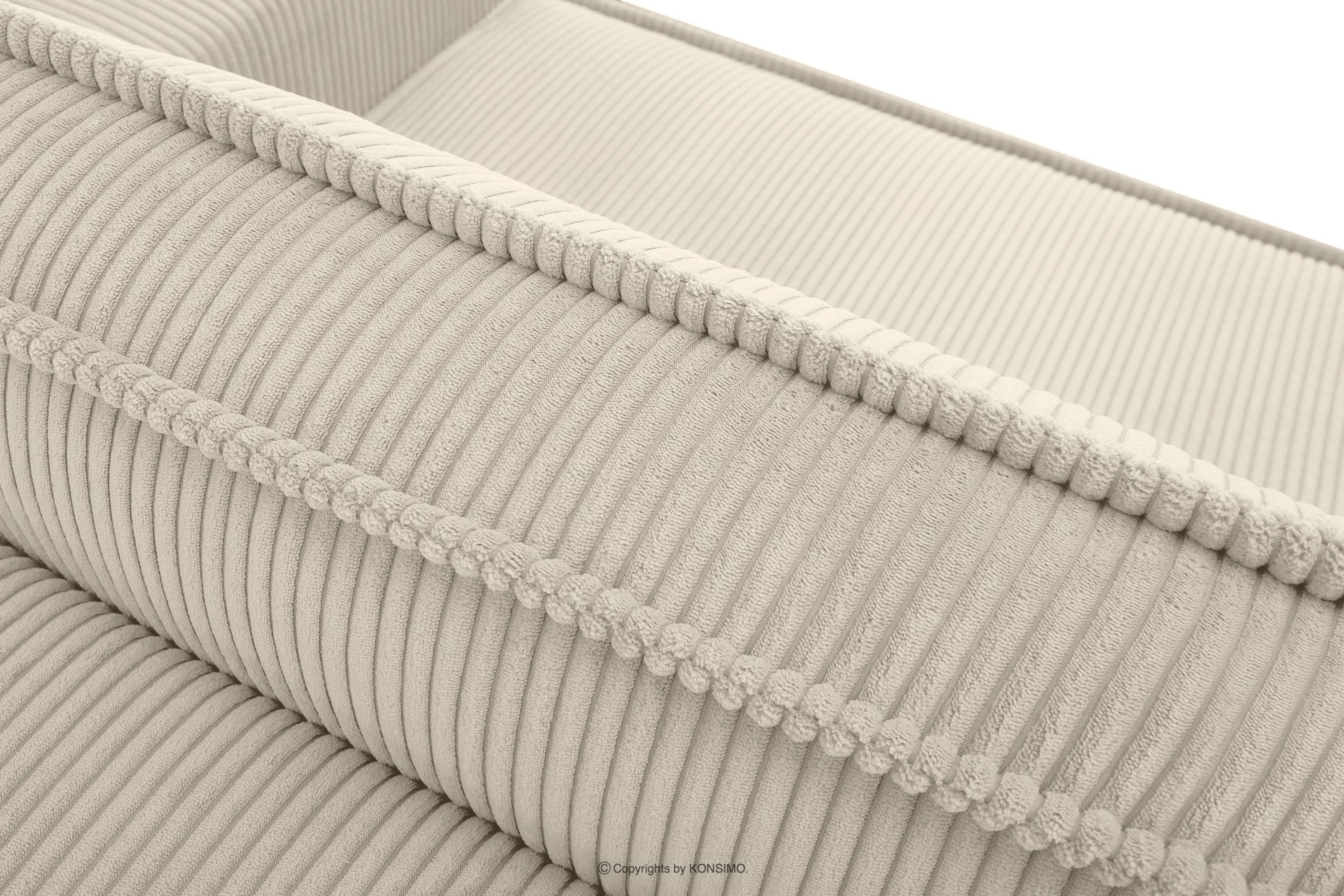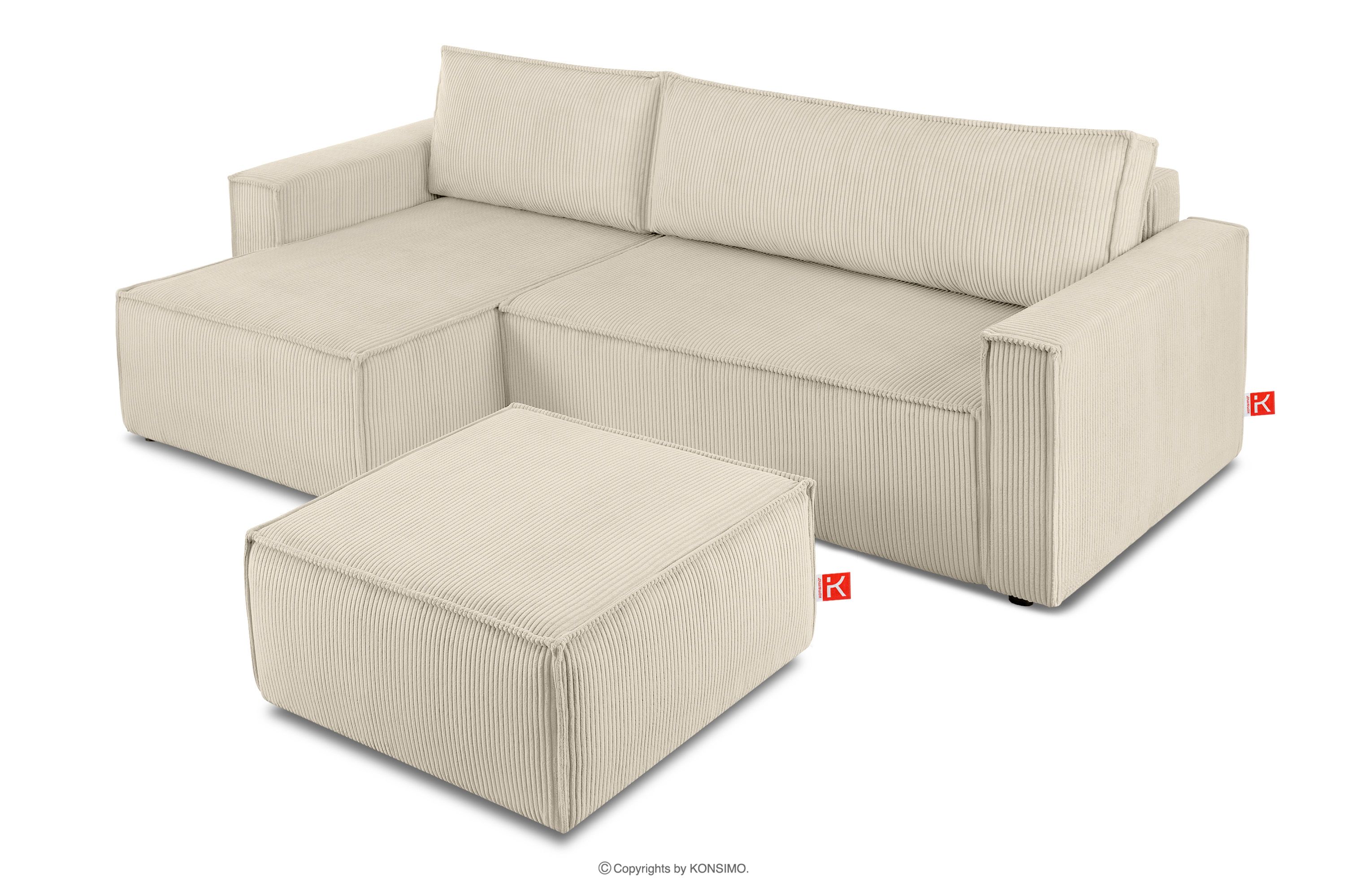 Veľká rozkladacia manšestrová krémová rohová pohovka pravá/ľavá je kus nábytku v modernistickom štýle. Jej charakteristické široké boky ju vyčleňujú z radu štandardného nábytku. To je však len začiatok jej mimoriadnych možností. Ide o univerzálnu rohovú pohovku, čo znamená, že má navyše tú vlastnosť, že si sama vyberie, na ktorej strane chcete mať rozkladacie kreslo.