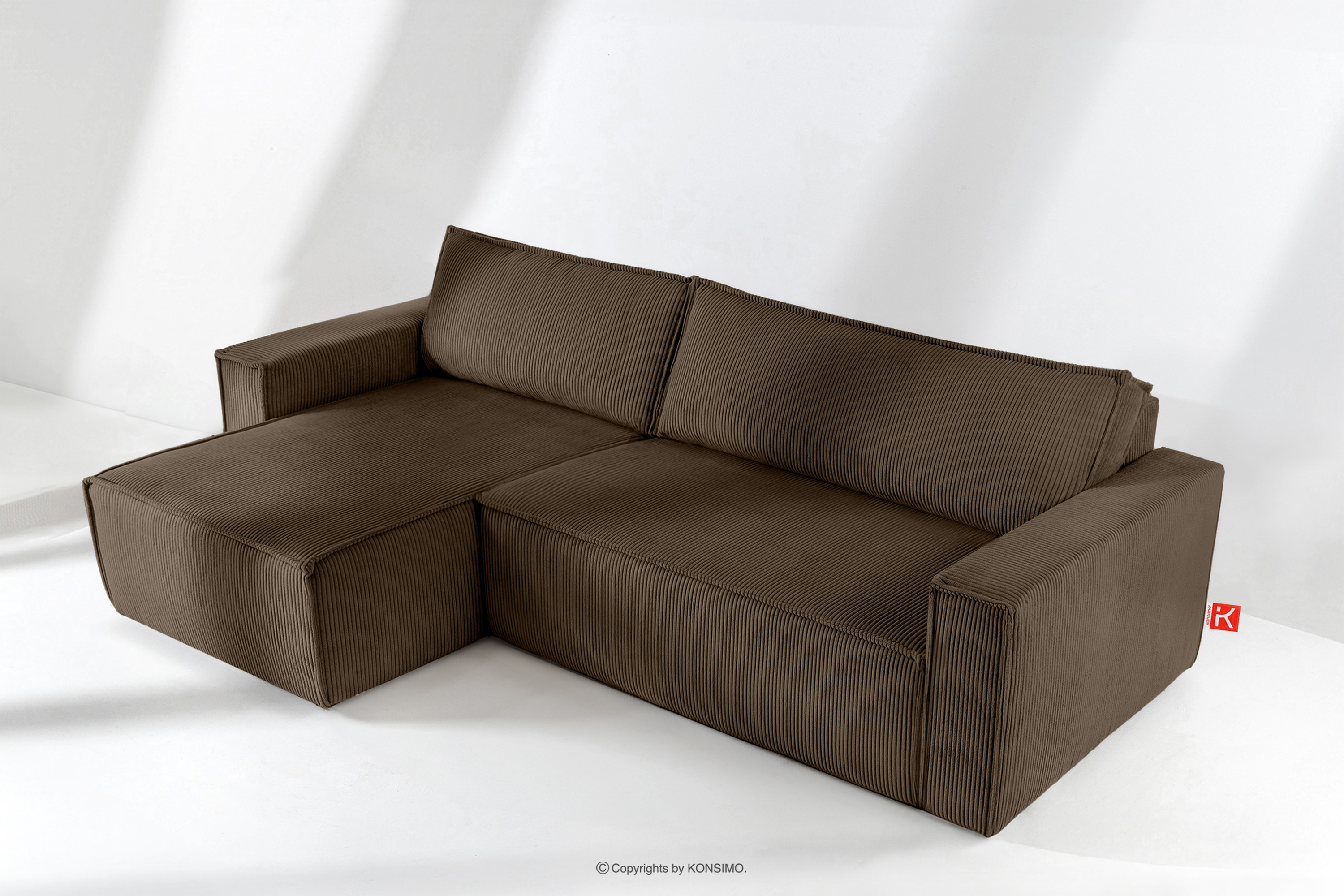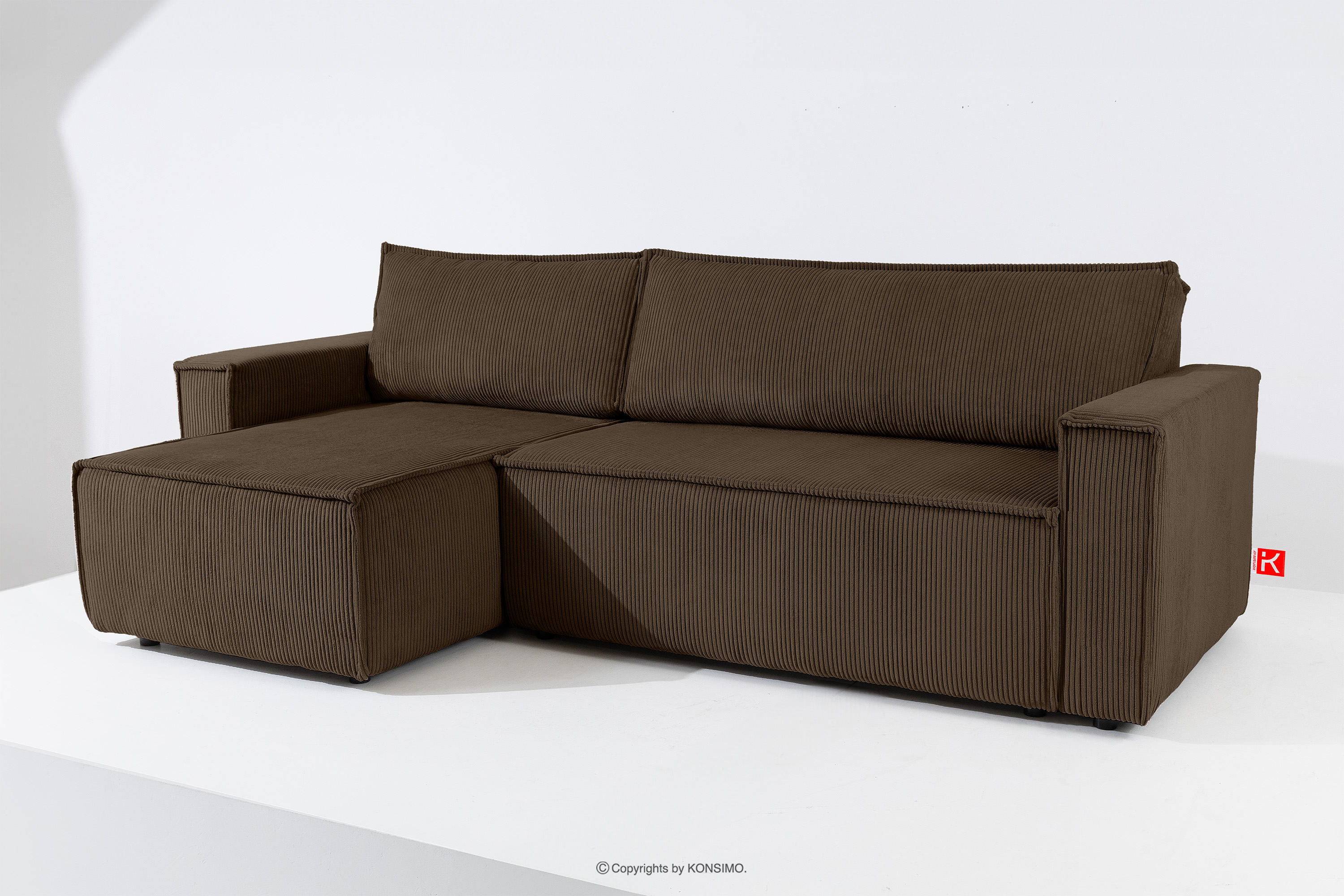 NAPI Objav celú kolekciu Veľká rozkladacia rohová pohovka manšestrová tmavohnedá vpravo/vľavo- farba tmavohnedá