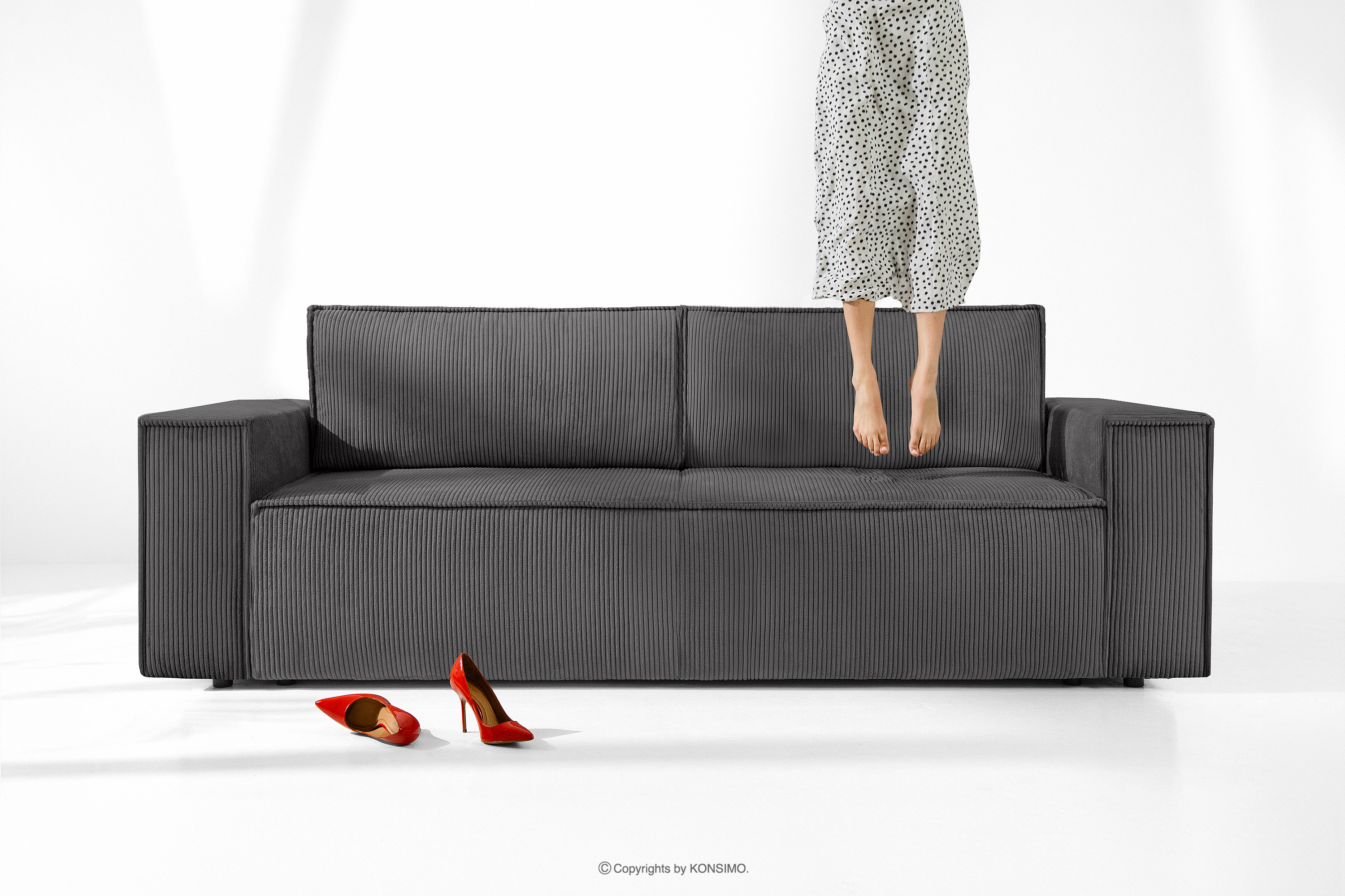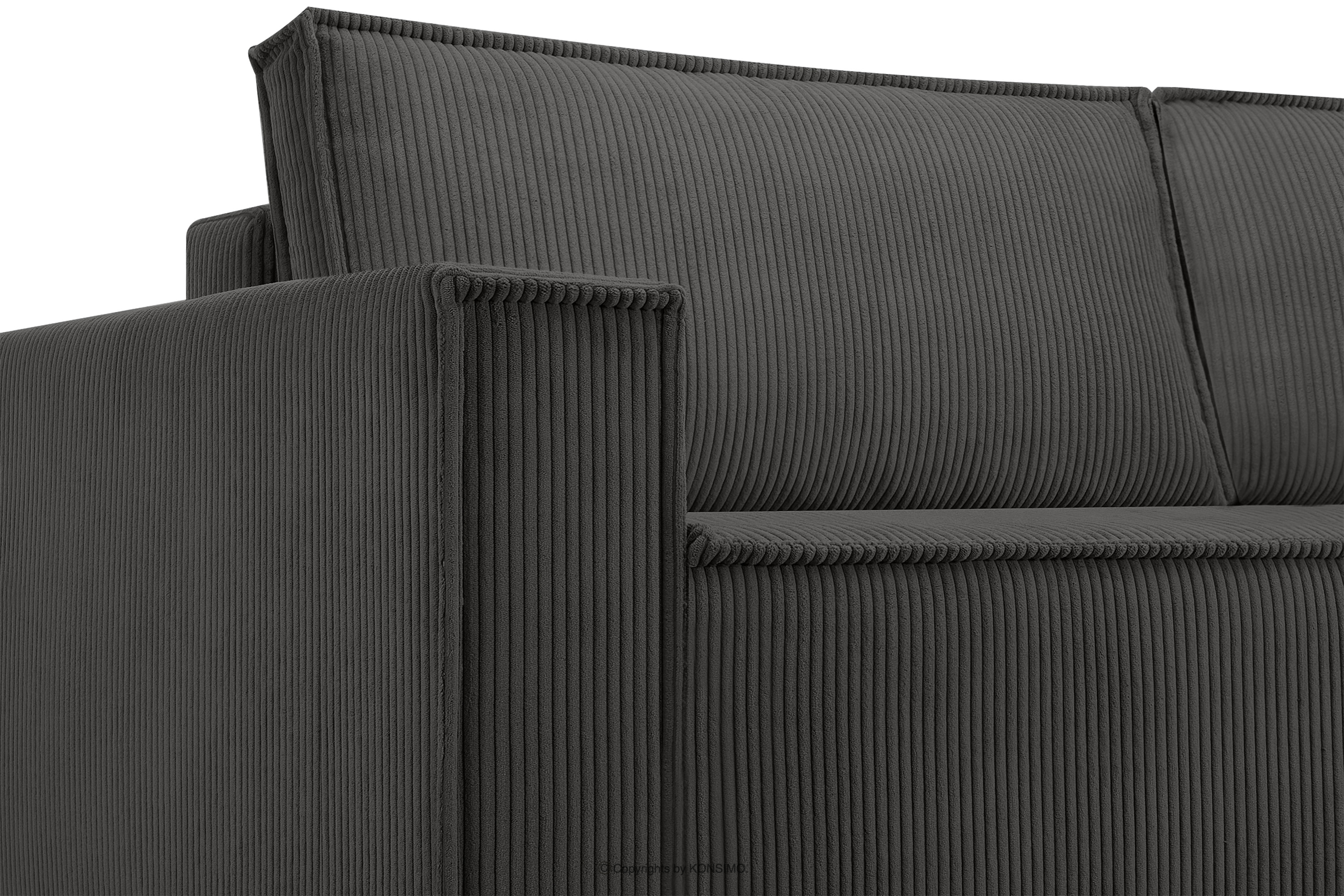 Pohovka 3 rozkladacia manšestrová sivá je kus nábytku v modernistickom štýle. Jej charakteristické široké boky ju vyčleňujú z radu štandardného nábytku. To je však len začiatok jej mimoriadnych možností. Opierkové vankúše poskytujú ideálnu oporu pre váš chrbát a vďaka svojim veľkým rozmerom aj skvele vyzerajú. Celé čalúnenie tohto výnimočného kusu nábytku je vyrobené z manšestrovej látky, ktorá je nielen príjemná na dotyk, ale aj si dlho zachováva svoj neporušený vzhľad.