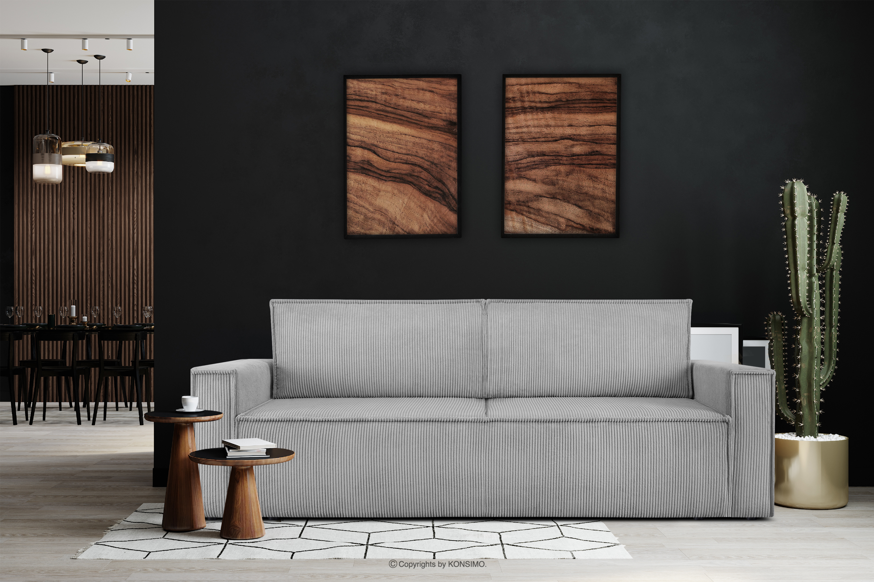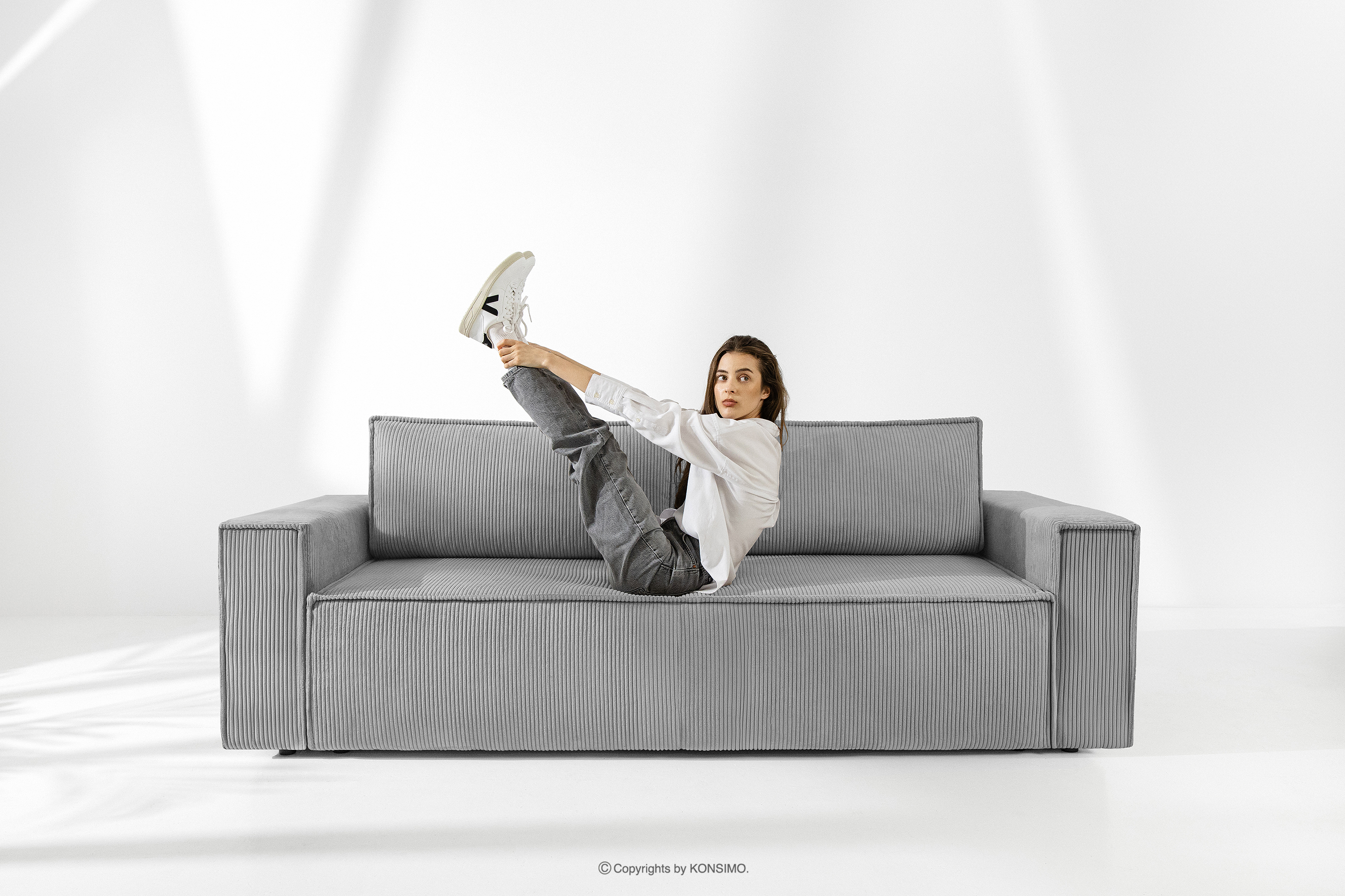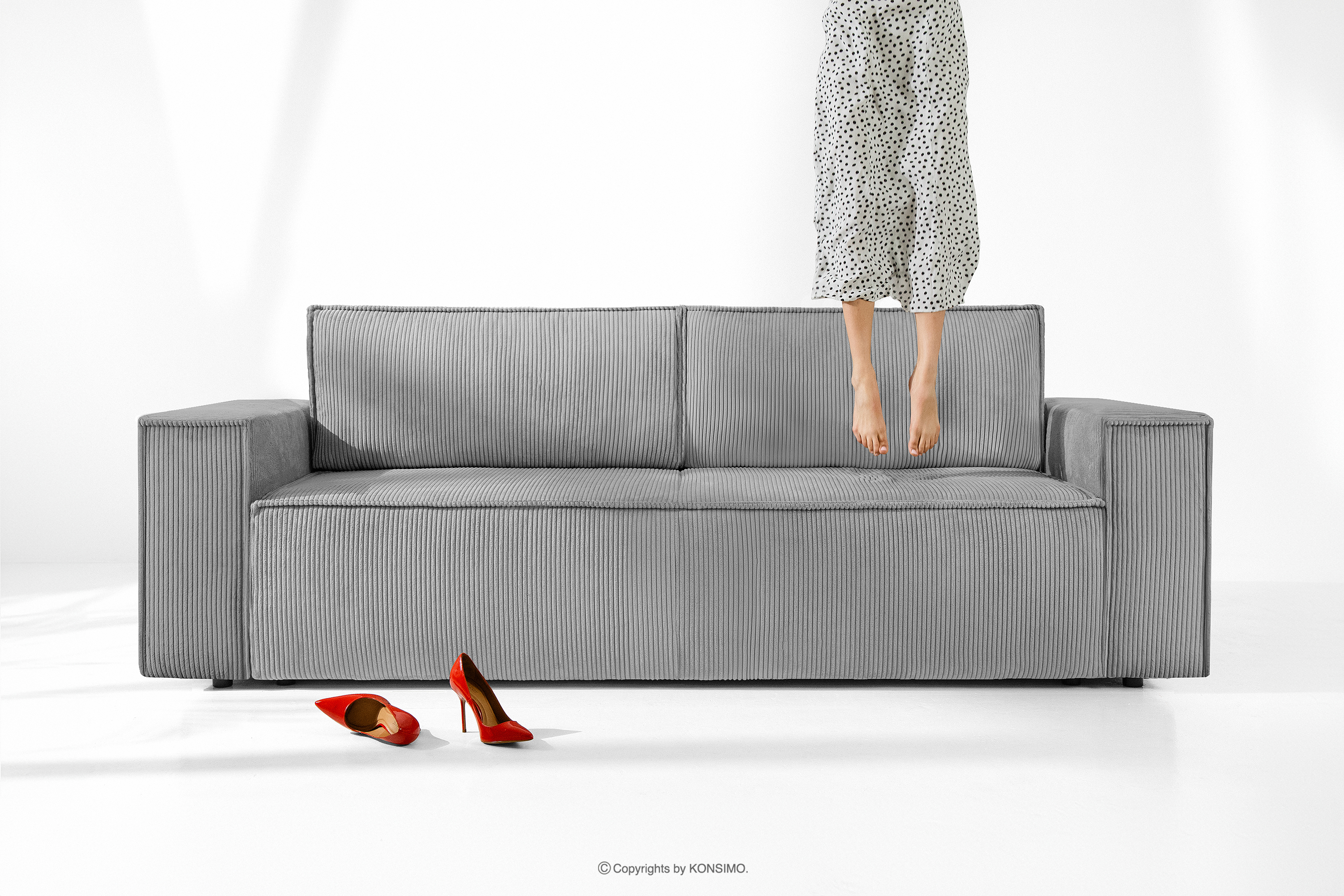Pohovka 3 rozkladacia manšestrová svetlosivá je kus nábytku v modernistickom štýle. Jej charakteristické široké boky ju vyčleňujú z radu štandardného nábytku. To je však len začiatok jej mimoriadnych možností. Opierkové vankúše poskytujú ideálnu oporu pre váš chrbát a vďaka svojim veľkým rozmerom aj skvele vyzerajú. Celé čalúnenie tohto výnimočného kusu nábytku je vyrobené z manšestrovej látky, ktorá je nielen príjemná na dotyk, ale aj si dlho zachováva svoj neporušený vzhľad.