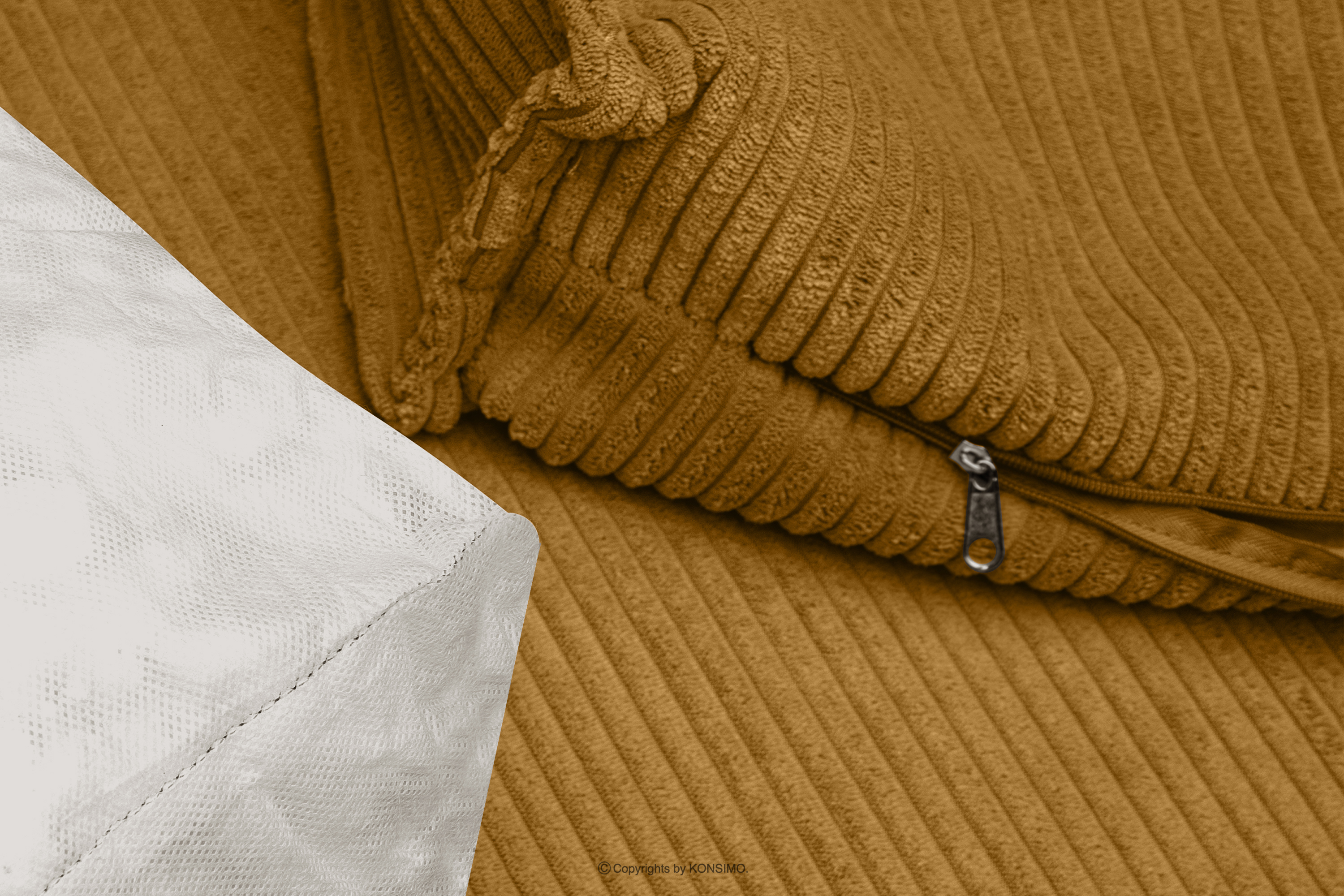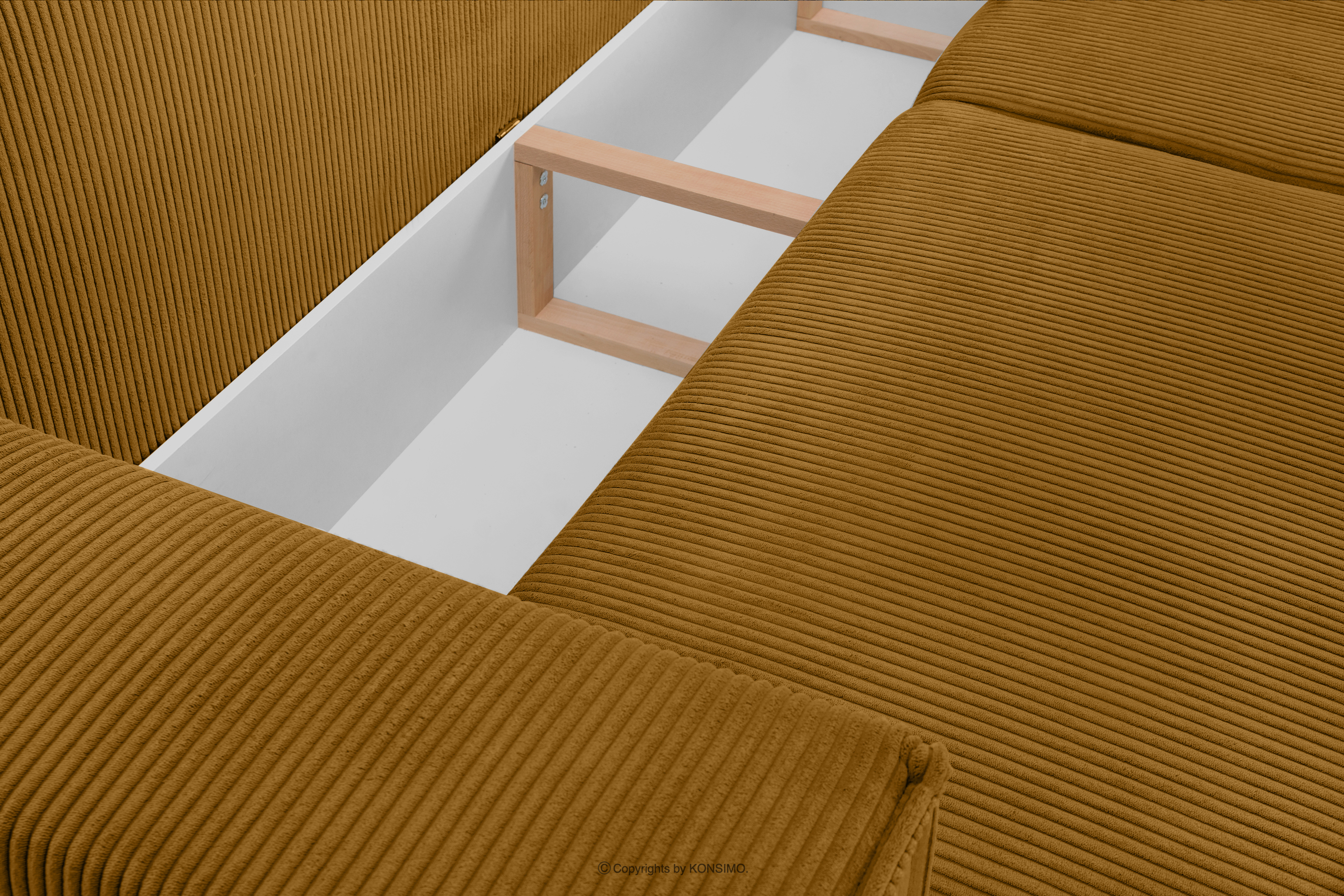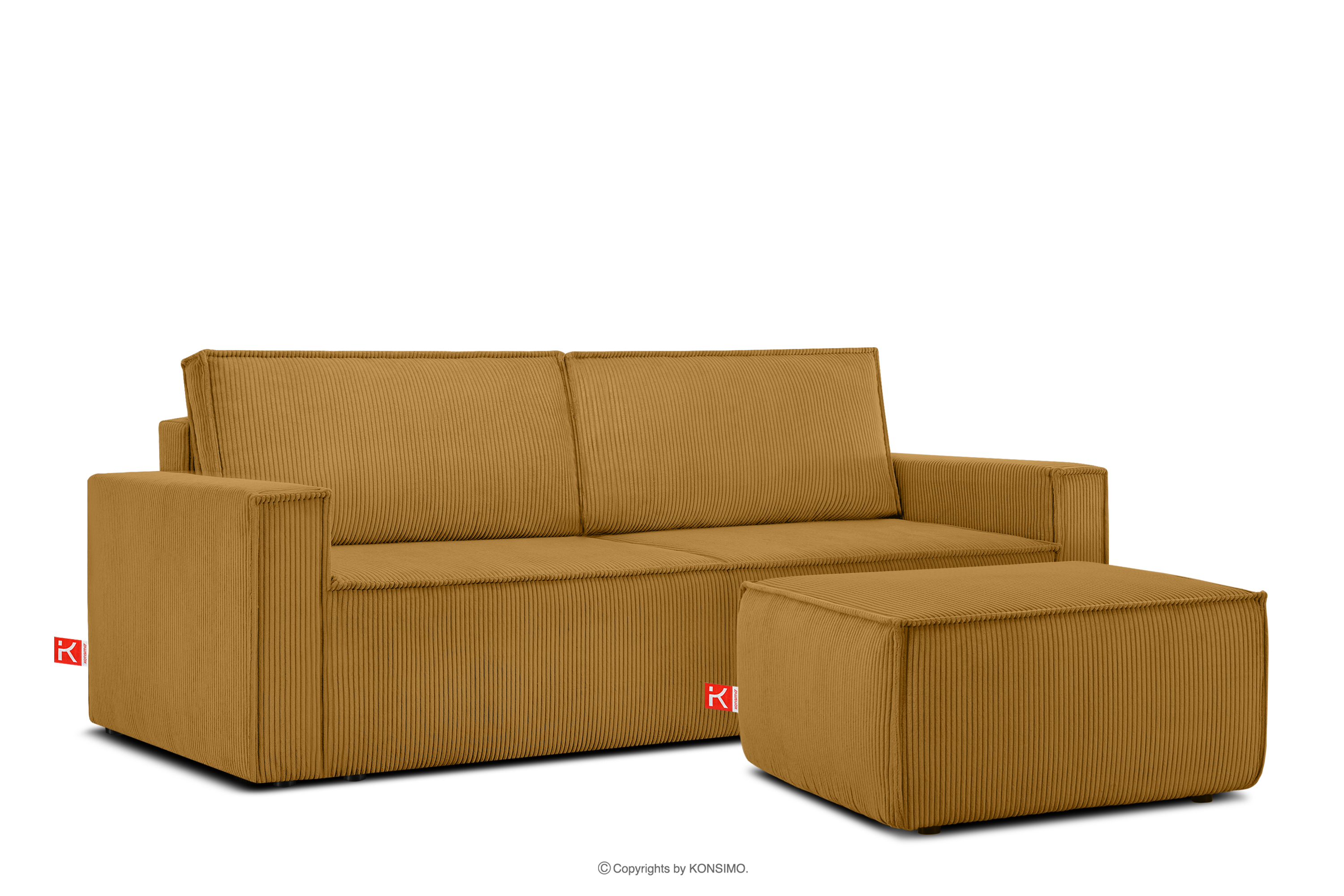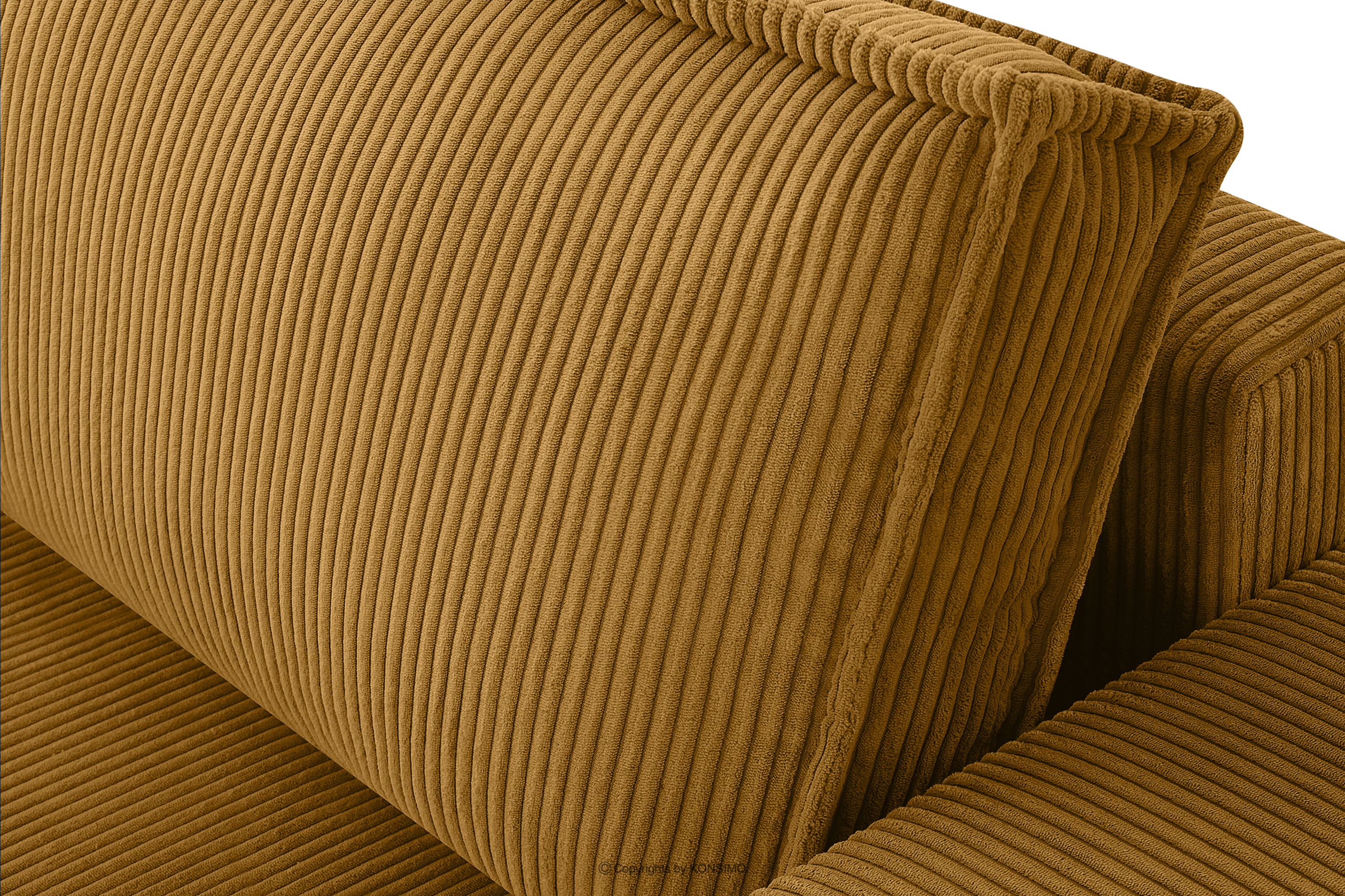 Pohovka 3 rozkladacia manšestrová žltá je kus nábytku v modernistickom štýle. Jej charakteristické široké boky ju vyčleňujú z radu štandardného nábytku. To je však len začiatok jej mimoriadnych možností. Opierkové vankúše poskytujú ideálnu oporu pre váš chrbát a vďaka svojim veľkým rozmerom aj skvele vyzerajú. Celé čalúnenie tohto výnimočného kusu nábytku je vyrobené z manšestrovej látky, ktorá je nielen príjemná na dotyk, ale aj si dlho zachováva svoj neporušený vzhľad.