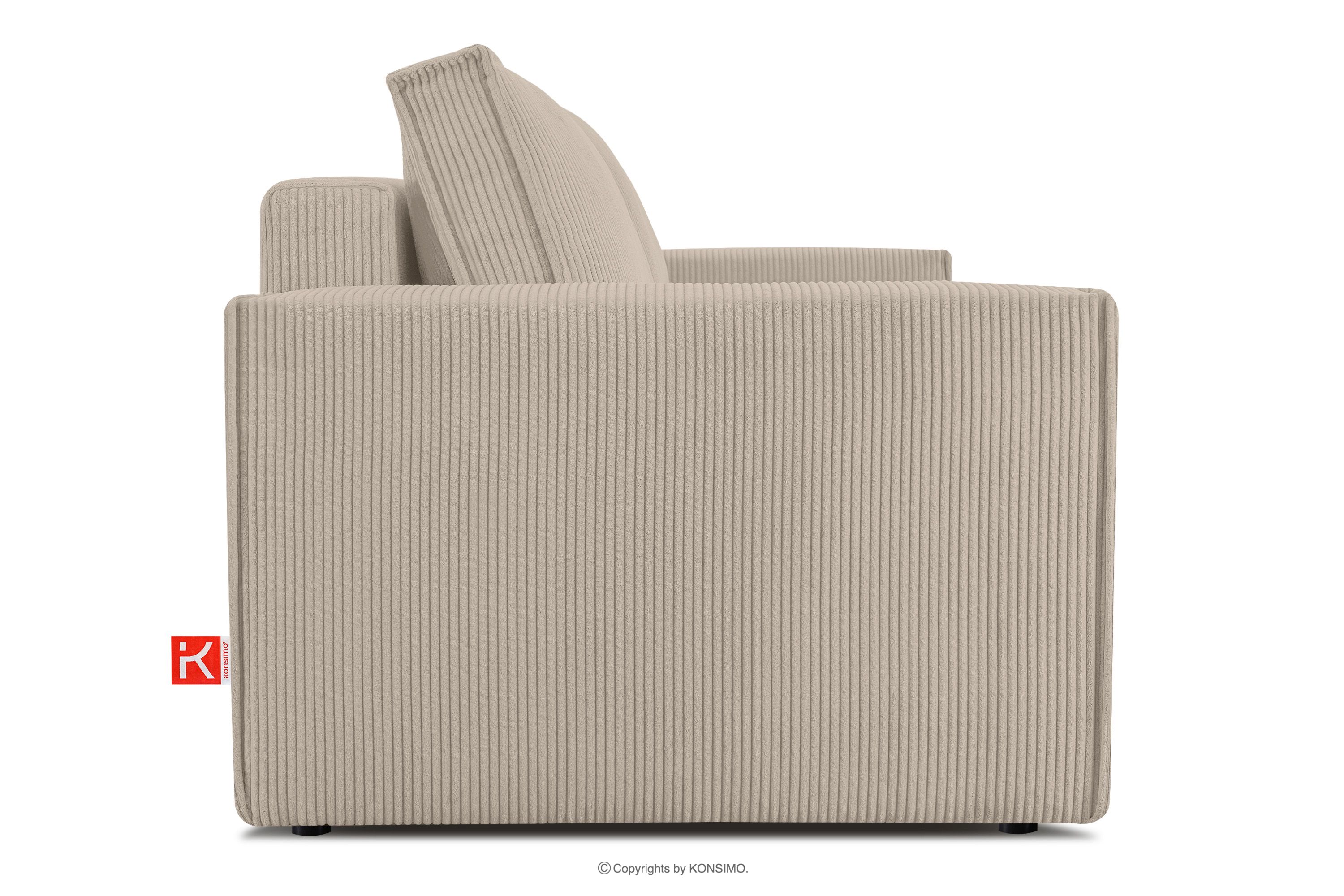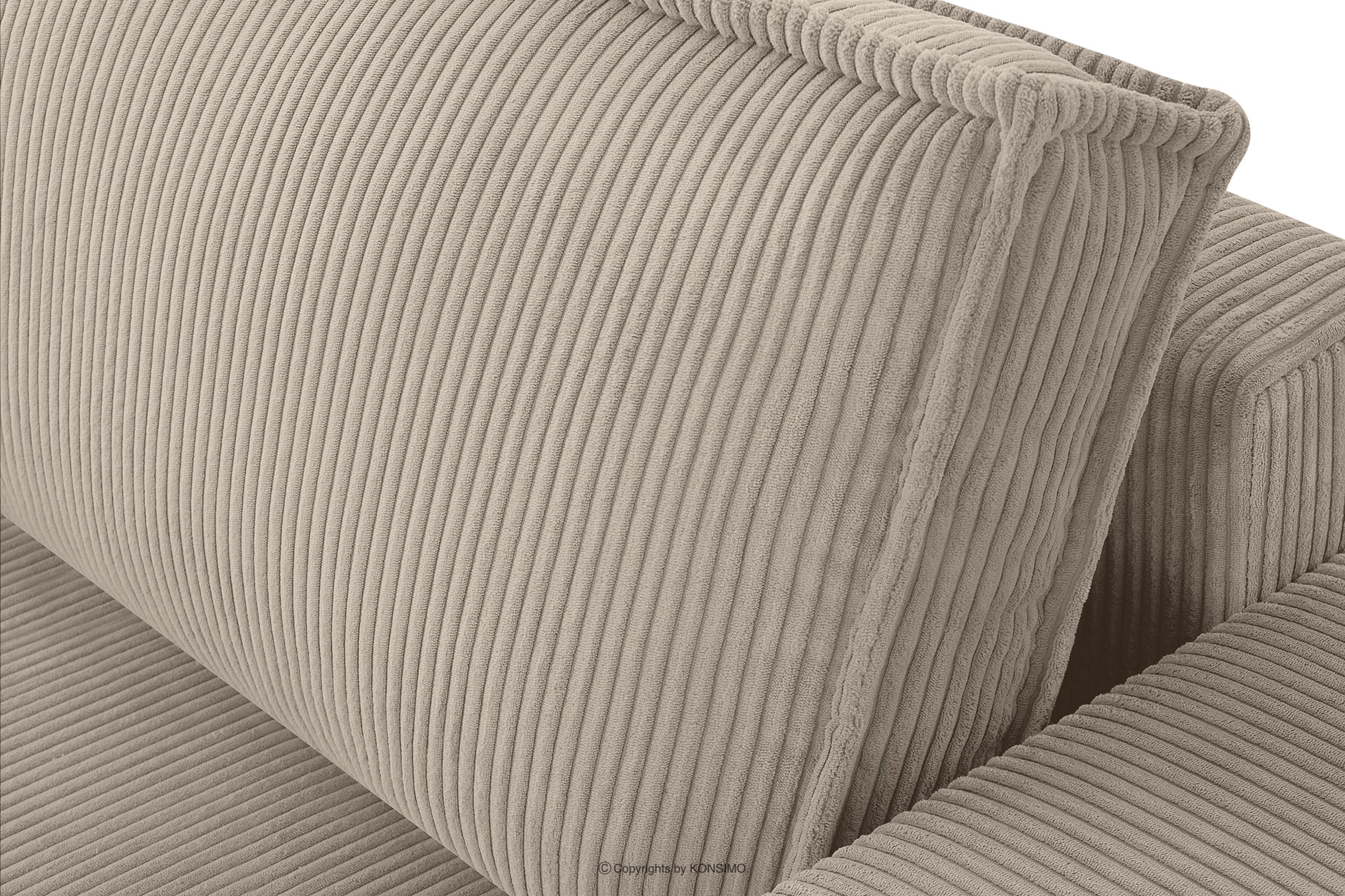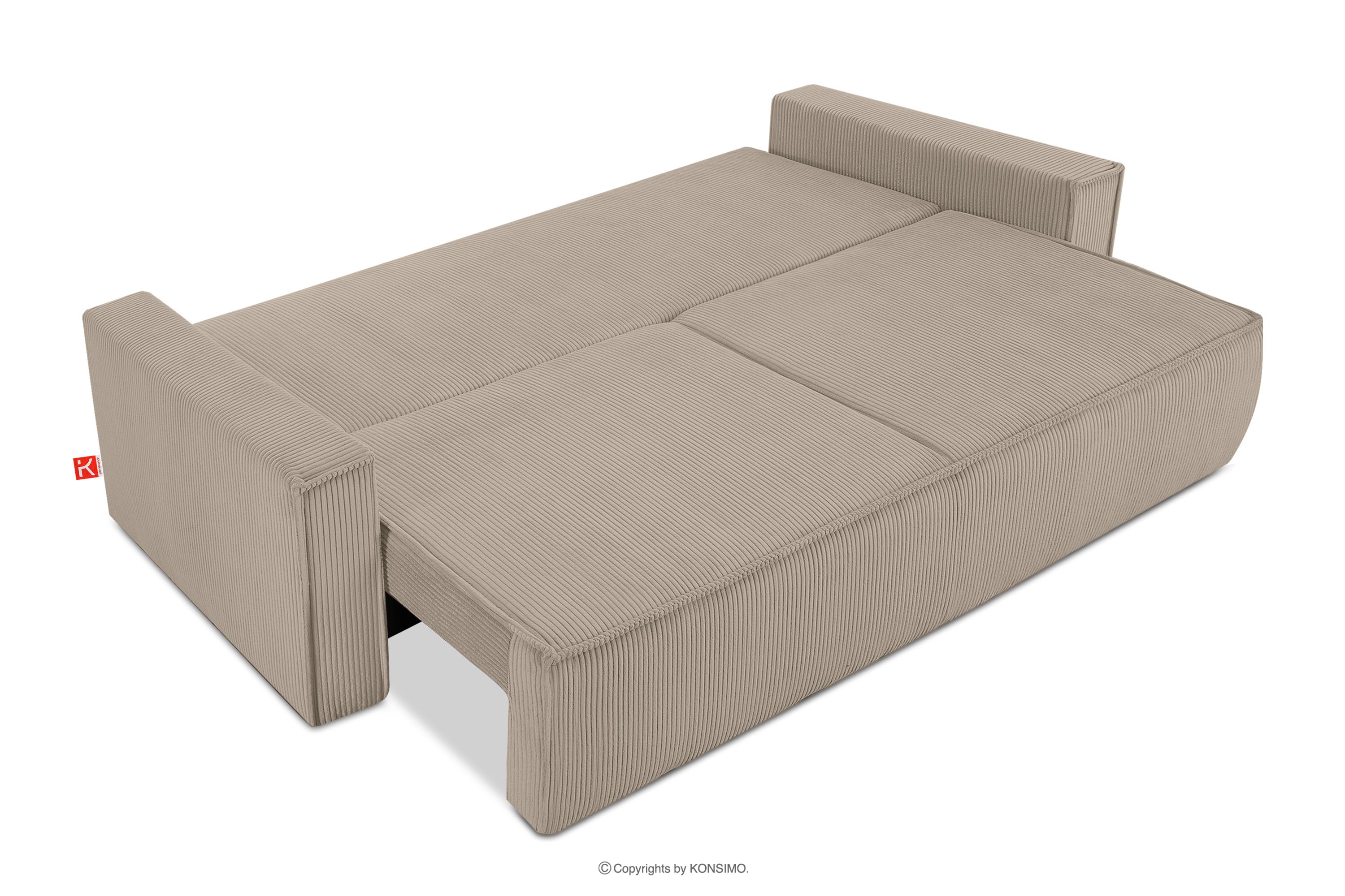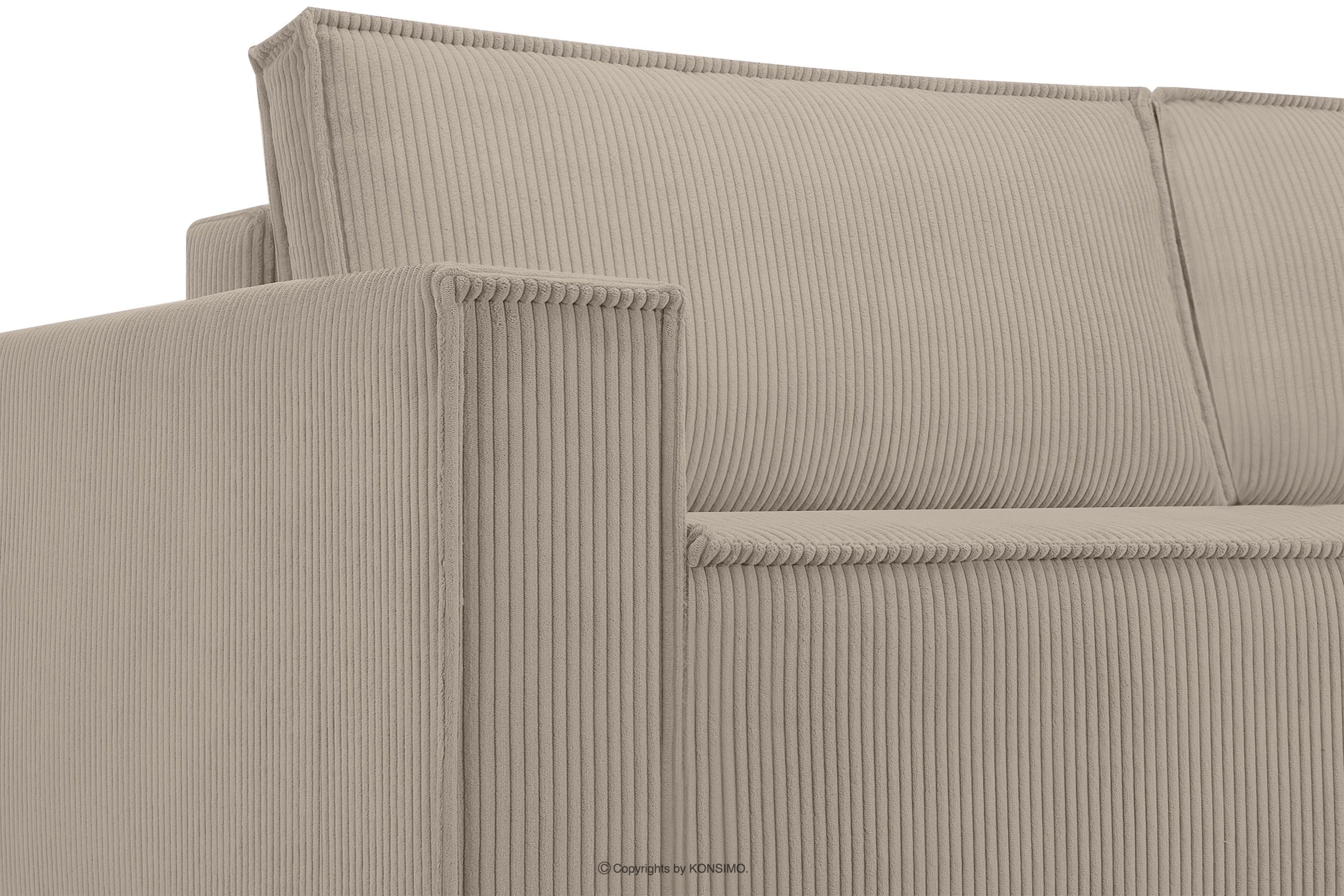 Manšestrová béžová 3 rozkladacia pohovka je kus nábytku v modernistickom štýle. Jej charakteristické široké boky ju vyčleňujú z radu štandardného nábytku. To je však len začiatok jej mimoriadnych možností. Opierkové vankúše poskytujú ideálnu oporu pre váš chrbát a vďaka svojim veľkým rozmerom aj skvele vyzerajú. Celé čalúnenie tohto výnimočného kusu nábytku je vyrobené z manšestrovej látky, ktorá je nielen príjemná na dotyk, ale aj si dlho zachováva svoj neporušený vzhľad.
