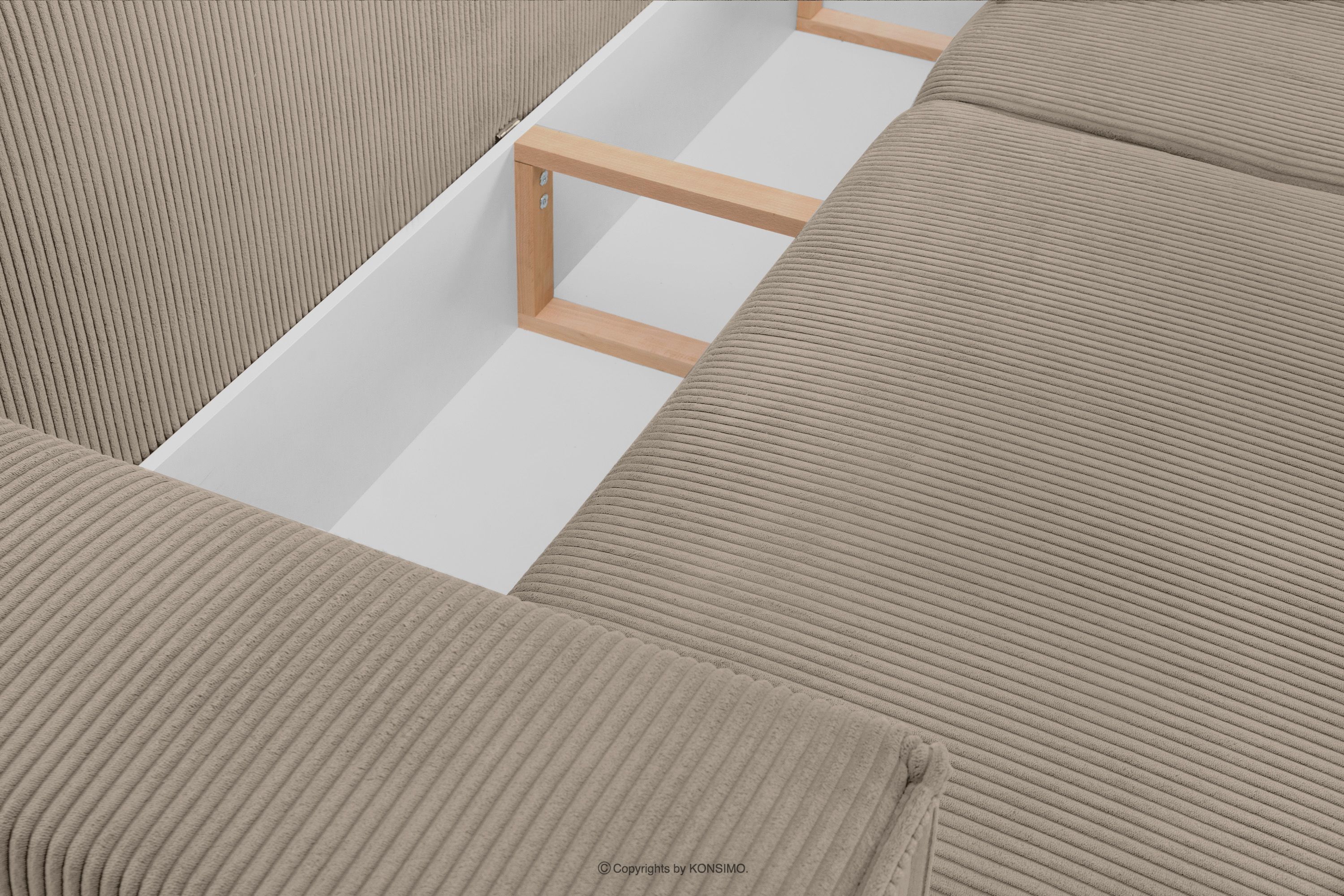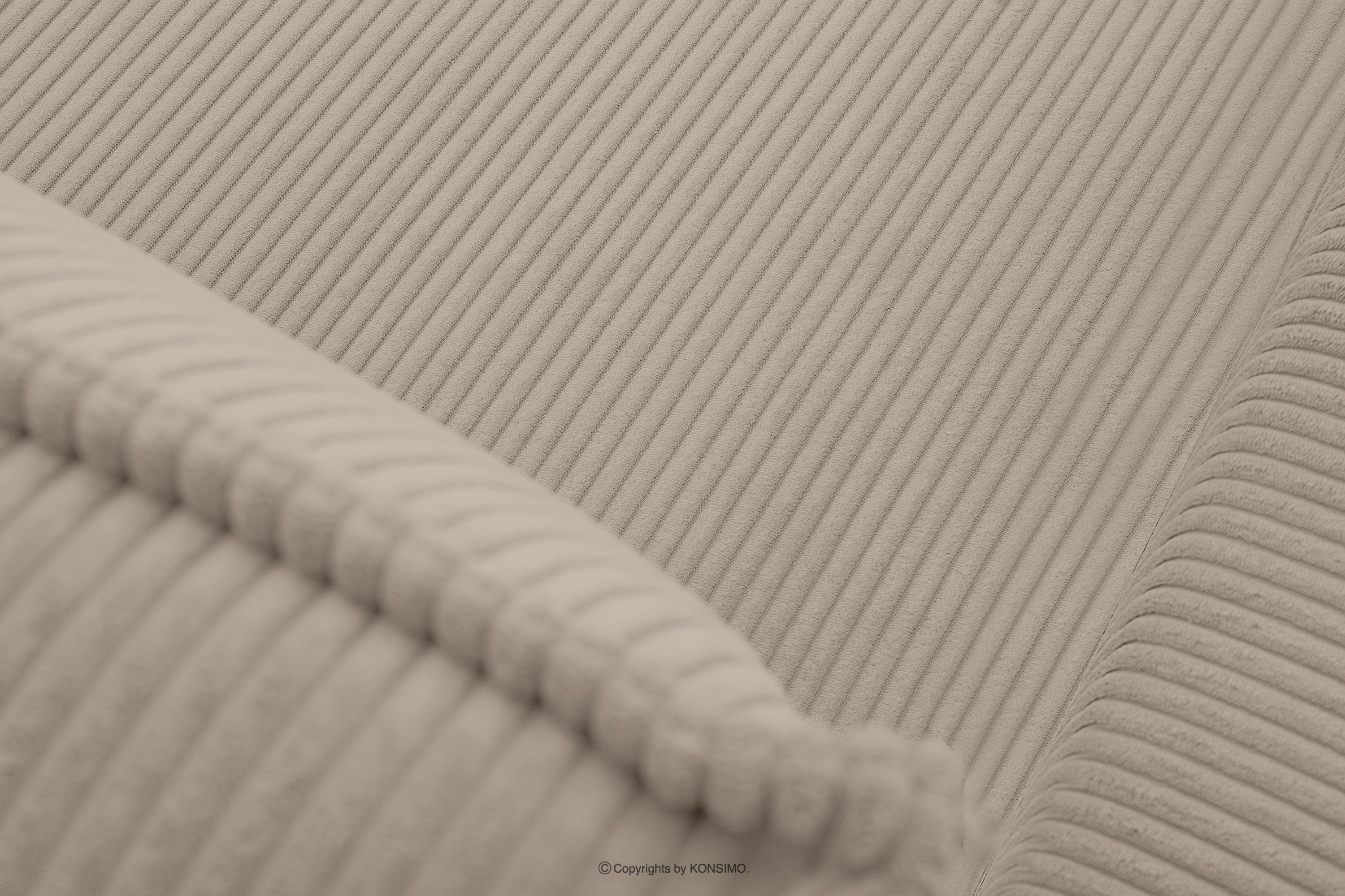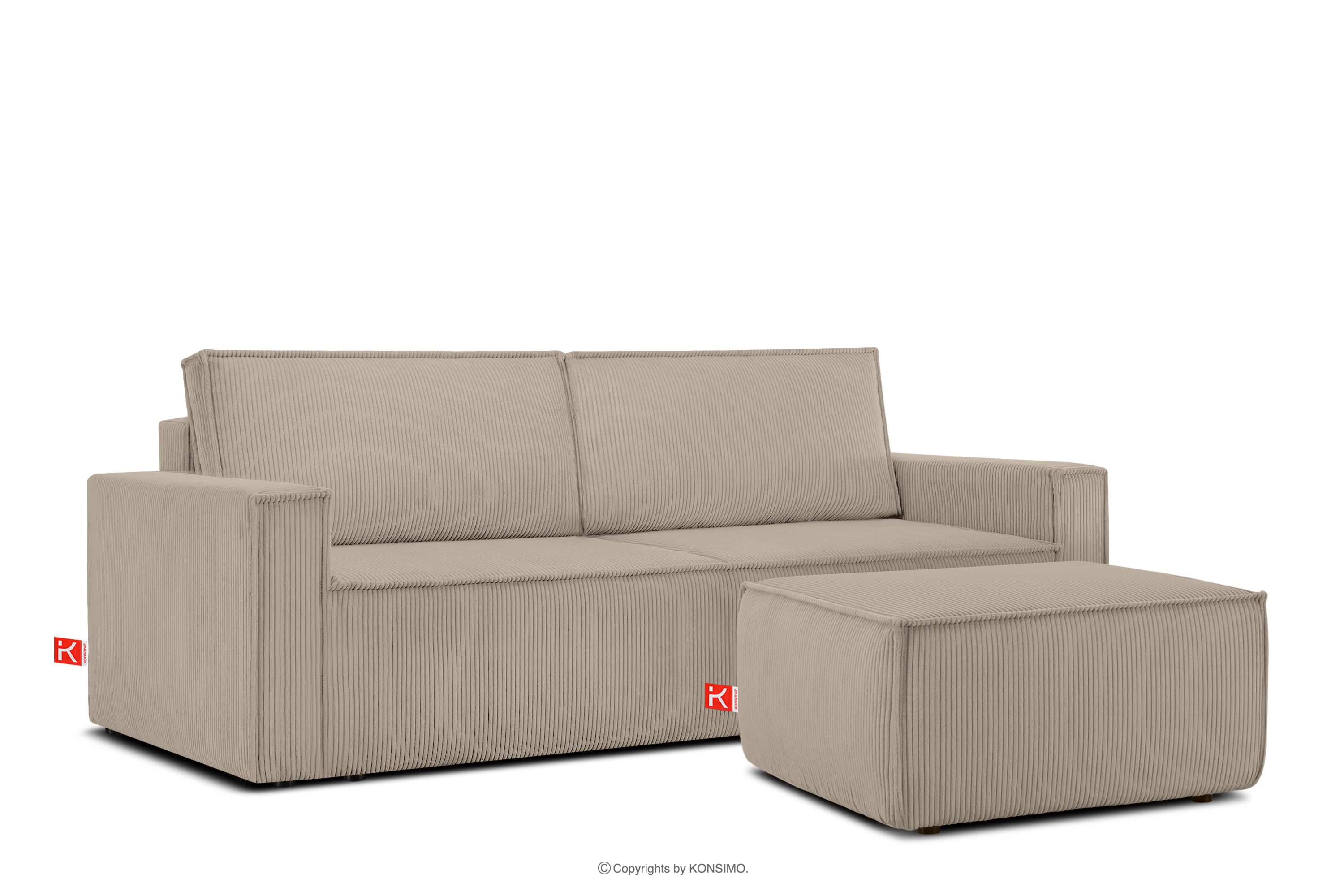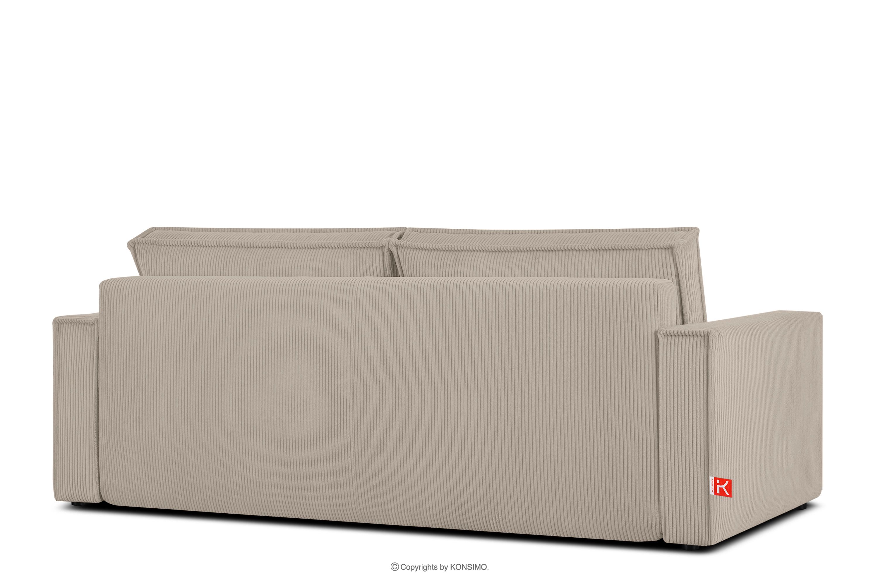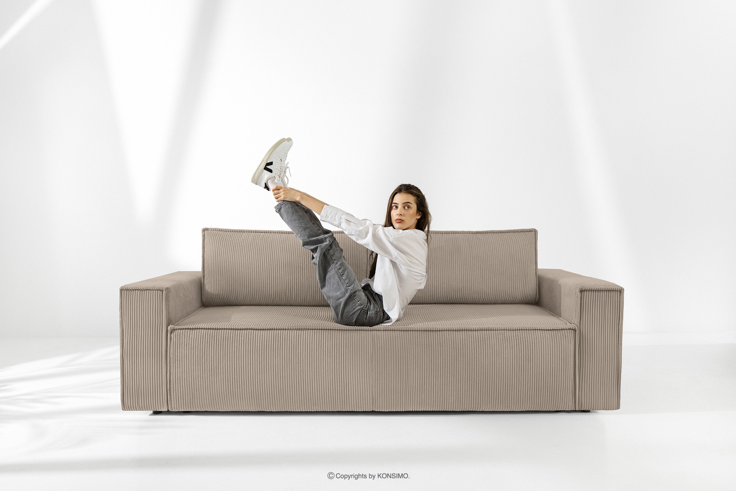 Manšestrová béžová 3 rozkladacia pohovka je kus nábytku v modernistickom štýle. Jej charakteristické široké boky ju vyčleňujú z radu štandardného nábytku. To je však len začiatok jej mimoriadnych možností. Opierkové vankúše poskytujú ideálnu oporu pre váš chrbát a vďaka svojim veľkým rozmerom aj skvele vyzerajú. Celé čalúnenie tohto výnimočného kusu nábytku je vyrobené z manšestrovej látky, ktorá je nielen príjemná na dotyk, ale aj si dlho zachováva svoj neporušený vzhľad.
