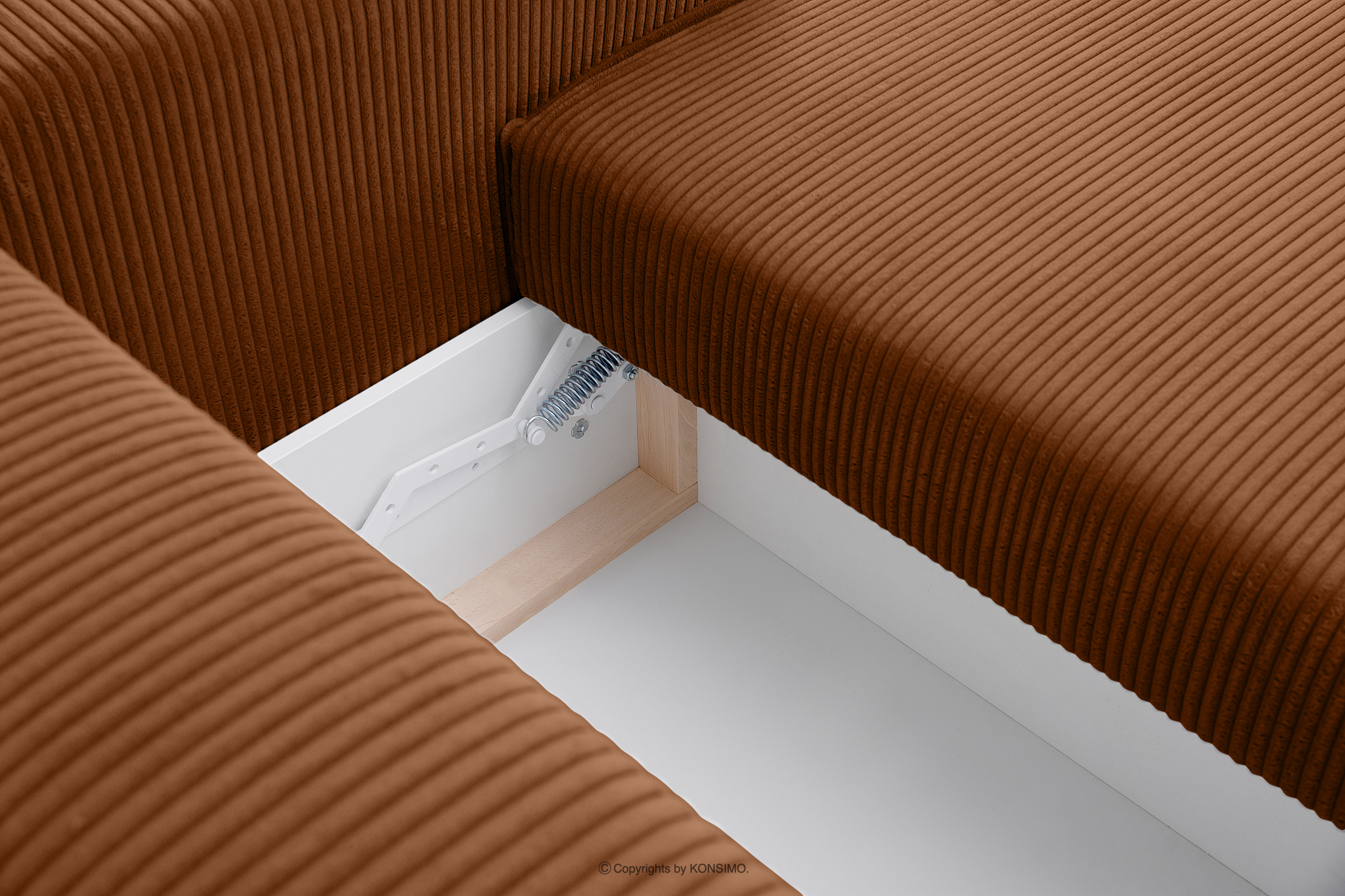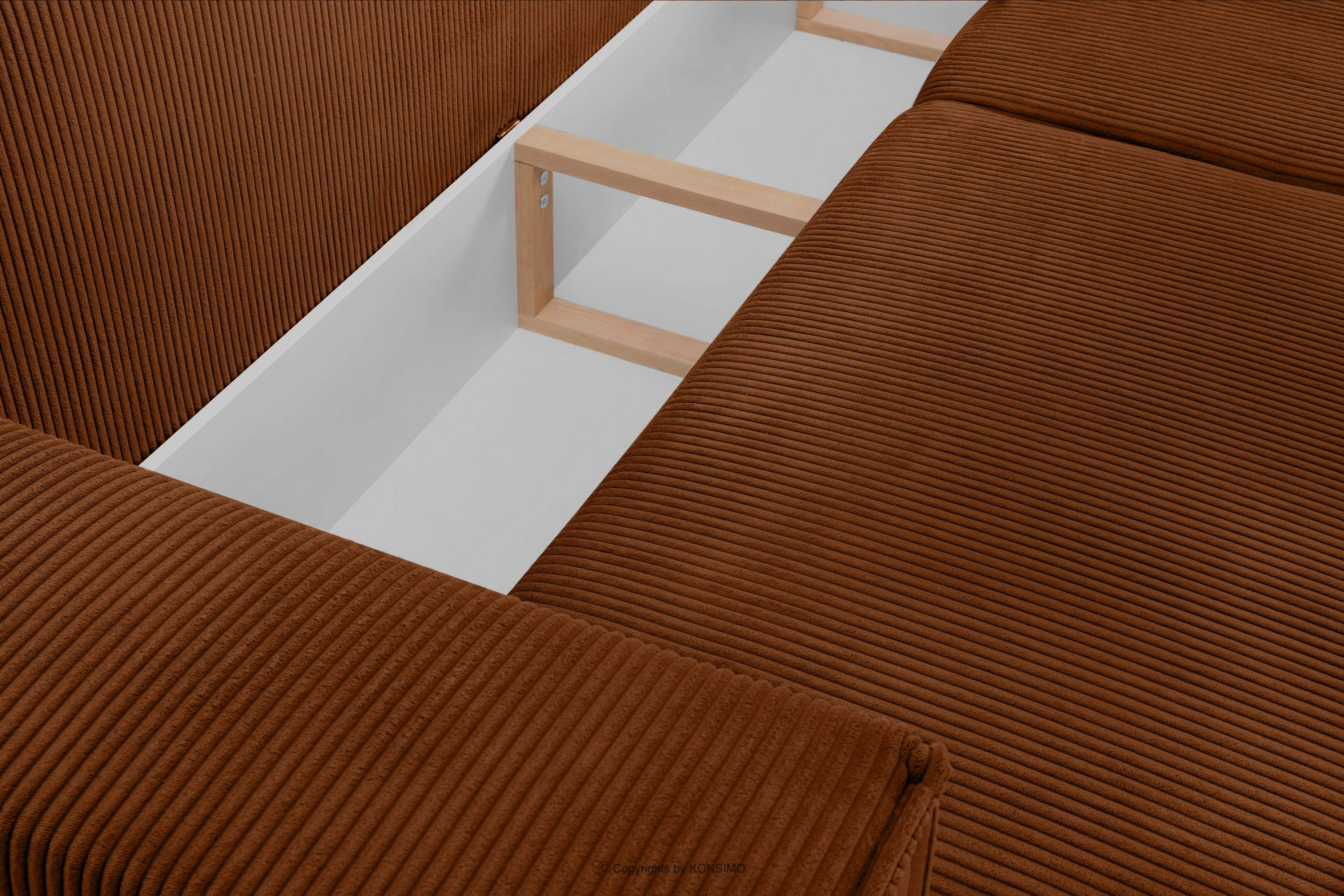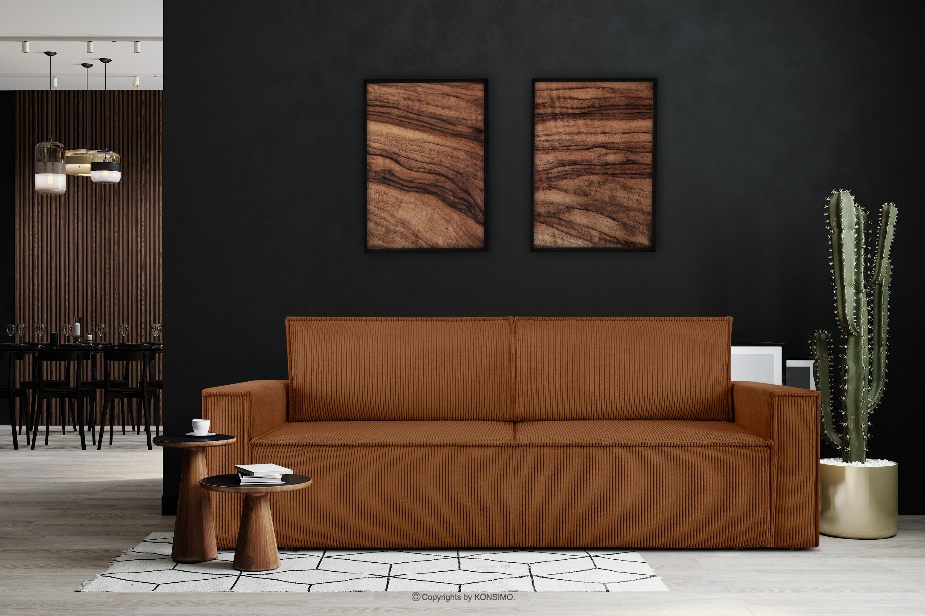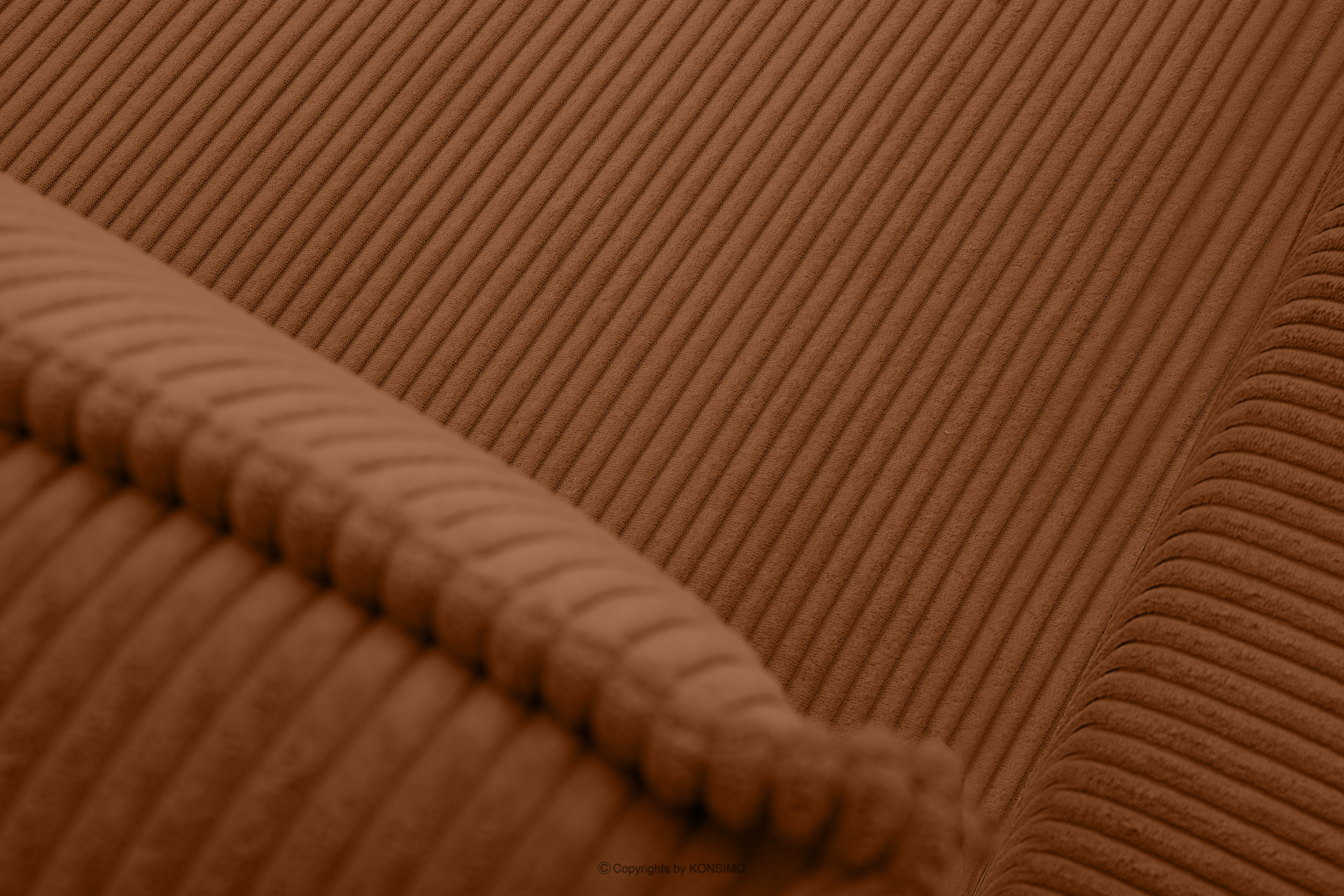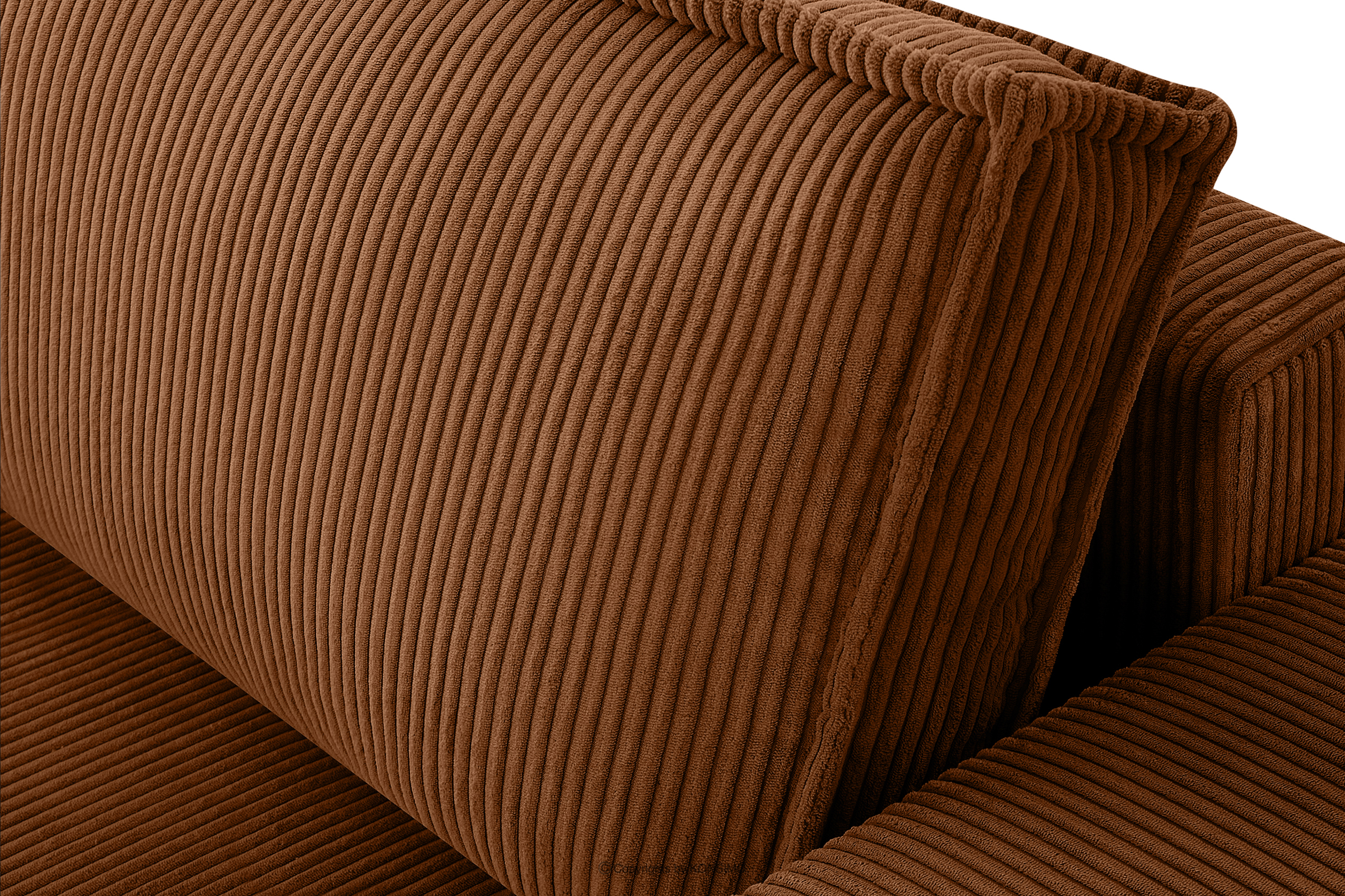 Pohovka 3 rozkladacia manšestrová rudka je kus nábytku v modernistickom štýle. Jej charakteristické široké boky ju vyčleňujú z radu štandardného nábytku. To je však len začiatok jej mimoriadnych možností. Opierkové vankúše sú dokonalou oporou pre váš chrbát a vďaka svojim veľkým rozmerom aj skvele vyzerajú. Celé čalúnenie tohto výnimočného kusu nábytku je vyrobené z manšestrovej látky, ktorá je nielen príjemná na dotyk, ale aj si dlho zachováva svoj neporušený vzhľad.