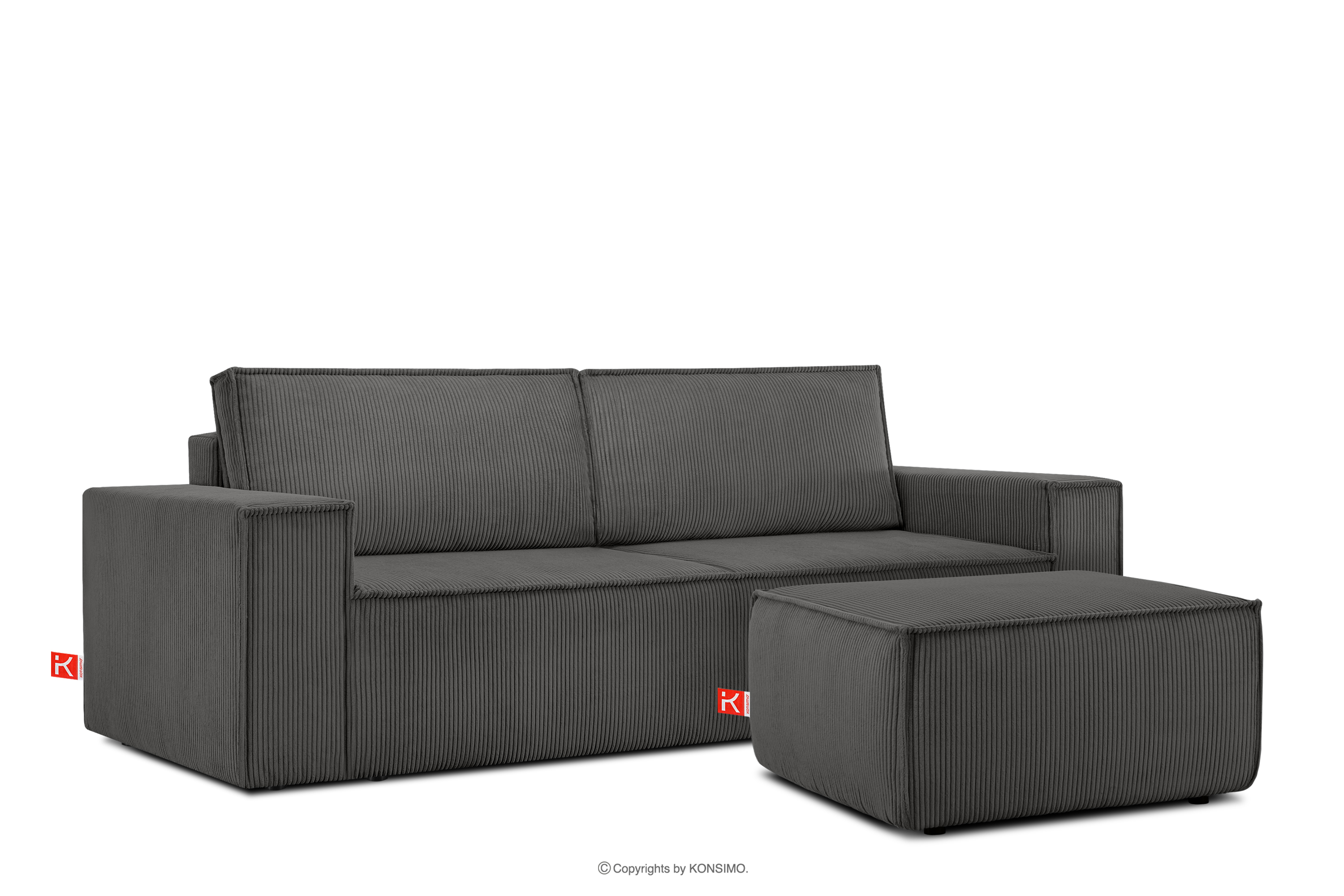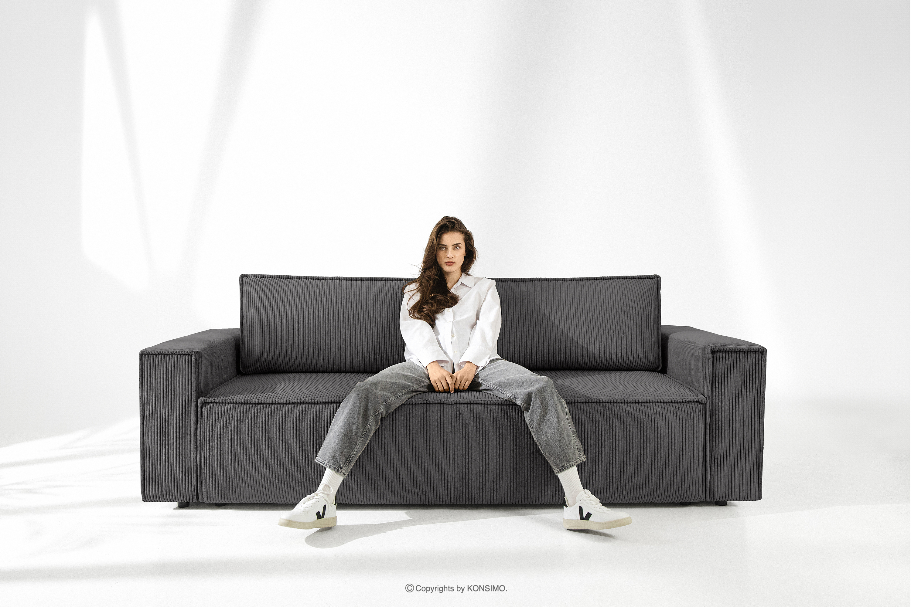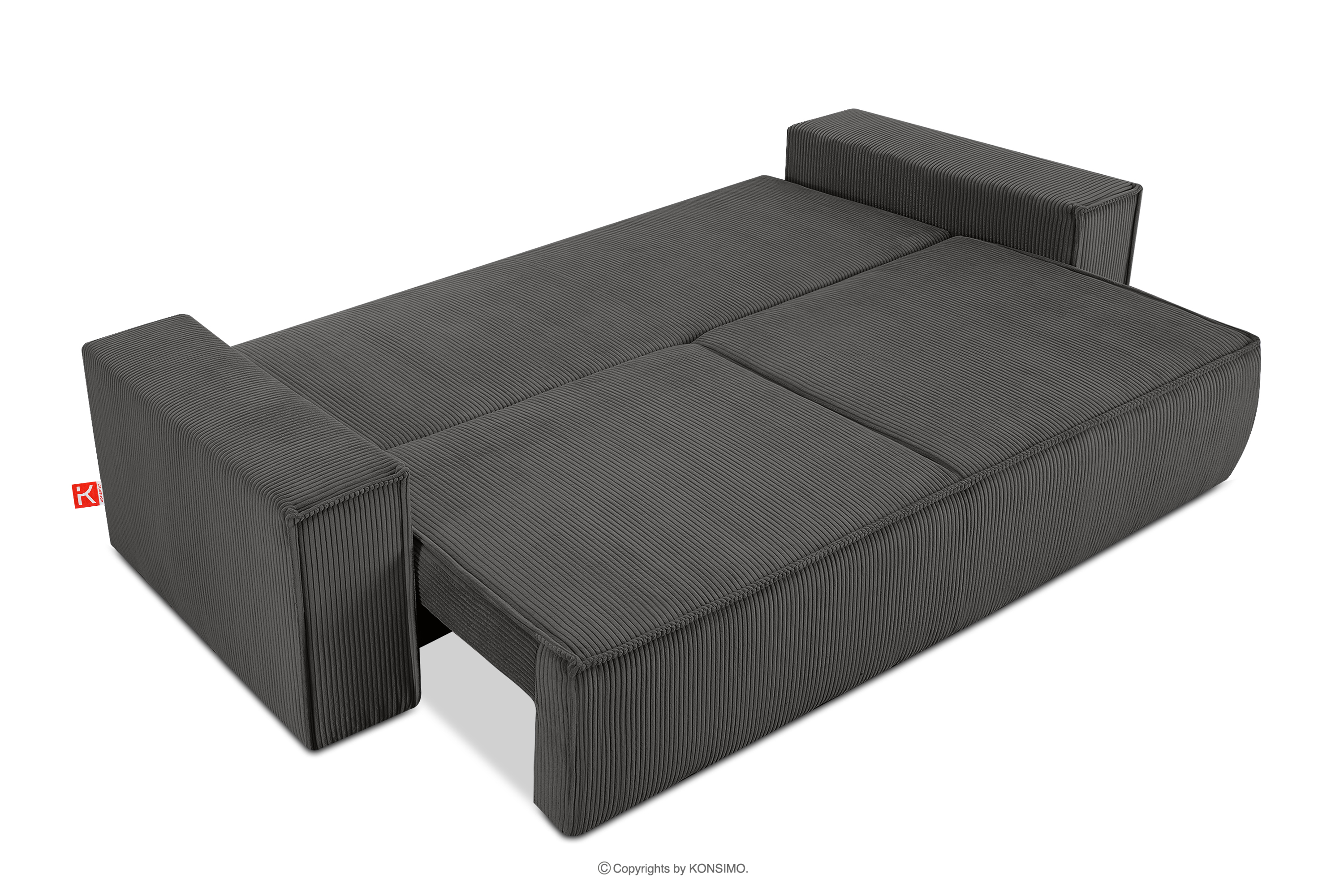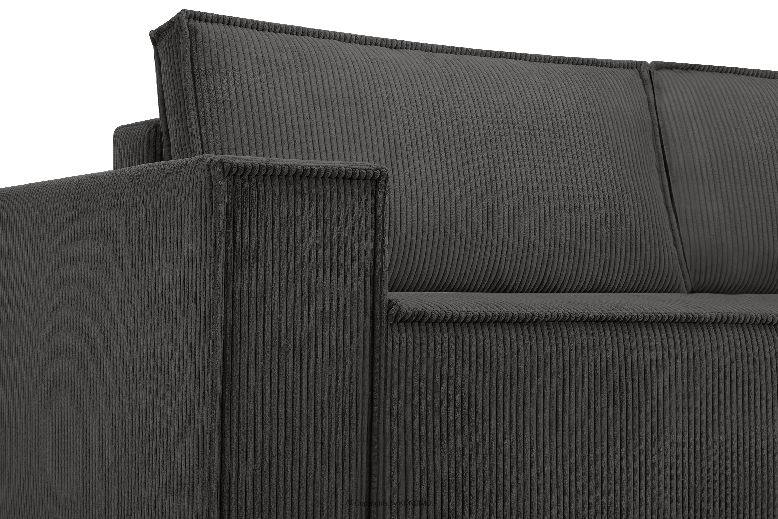 Trojmiestna pohovka s kontajnerom na posteľnú bielizeň sivá je kus nábytku v modernistickom štýle. Jej charakteristické široké boky ju vyčleňujú z radu štandardného nábytku. To je však len začiatok jej mimoriadnych možností. Opierkové vankúše poskytujú ideálnu oporu pre váš chrbát a vďaka svojim veľkým rozmerom aj skvele vyzerajú. Celé čalúnenie tohto výnimočného kusu nábytku je vyrobené z manšestrovej látky, ktorá je nielen príjemná na dotyk, ale aj si dlho zachováva svoj neporušený vzhľad.