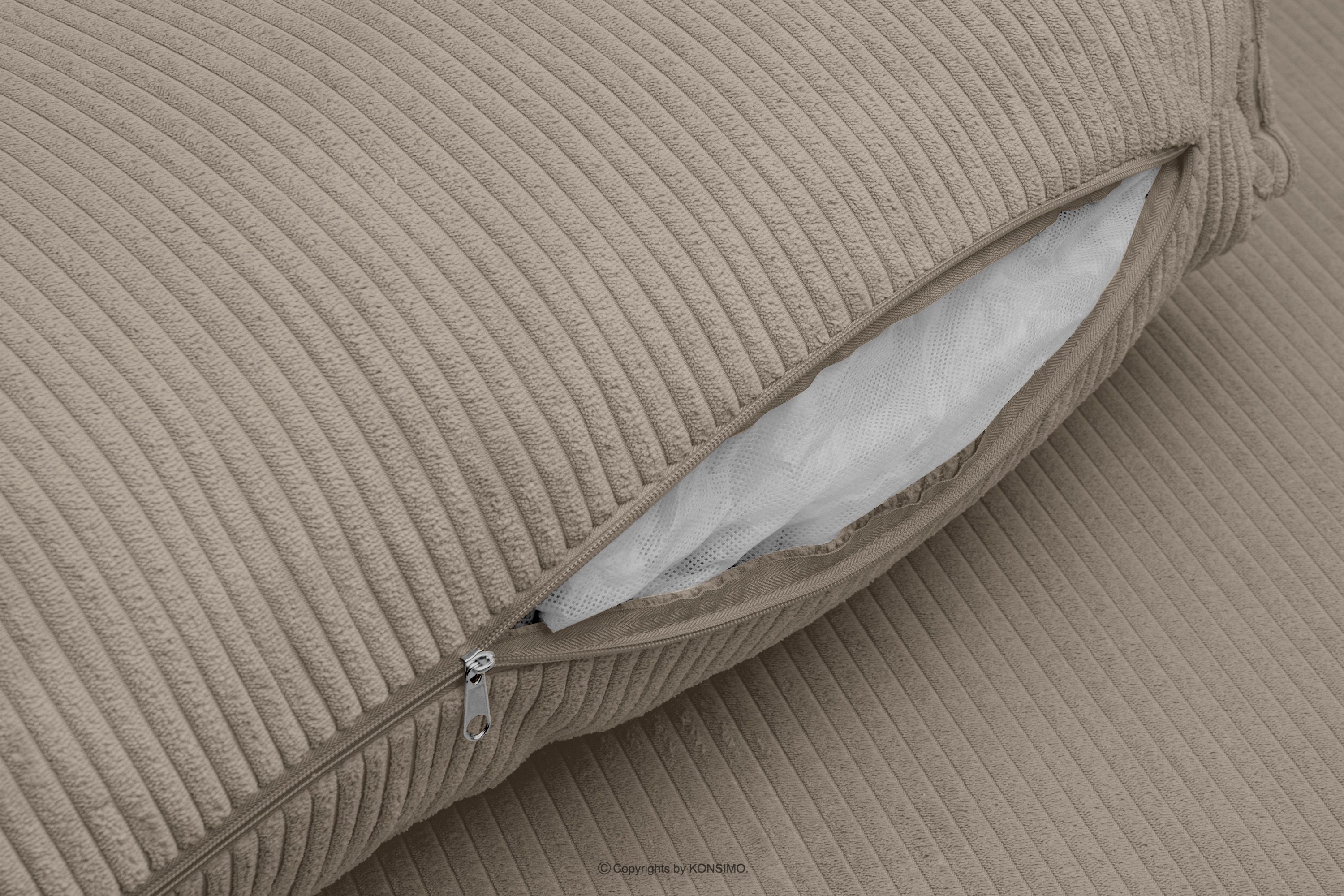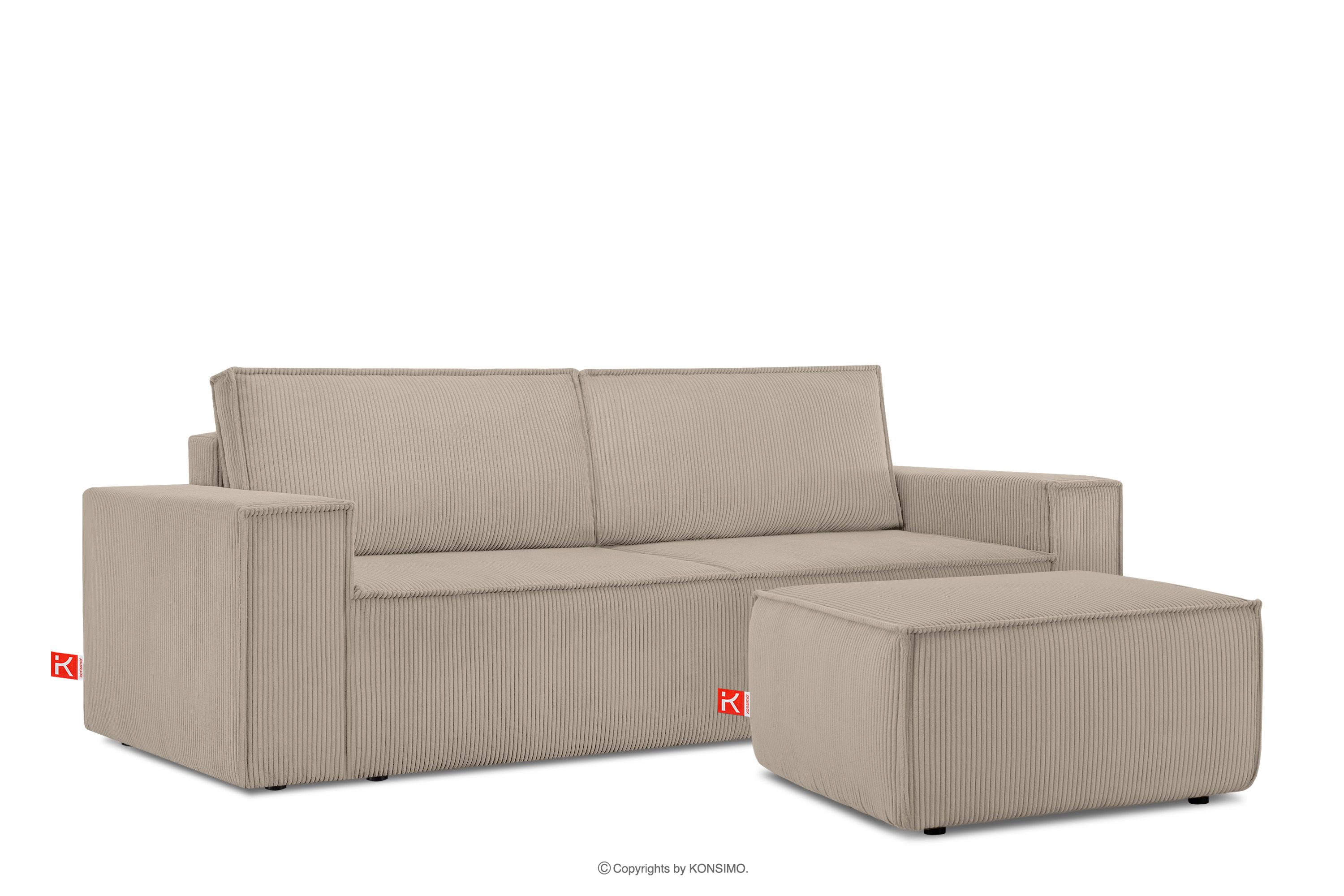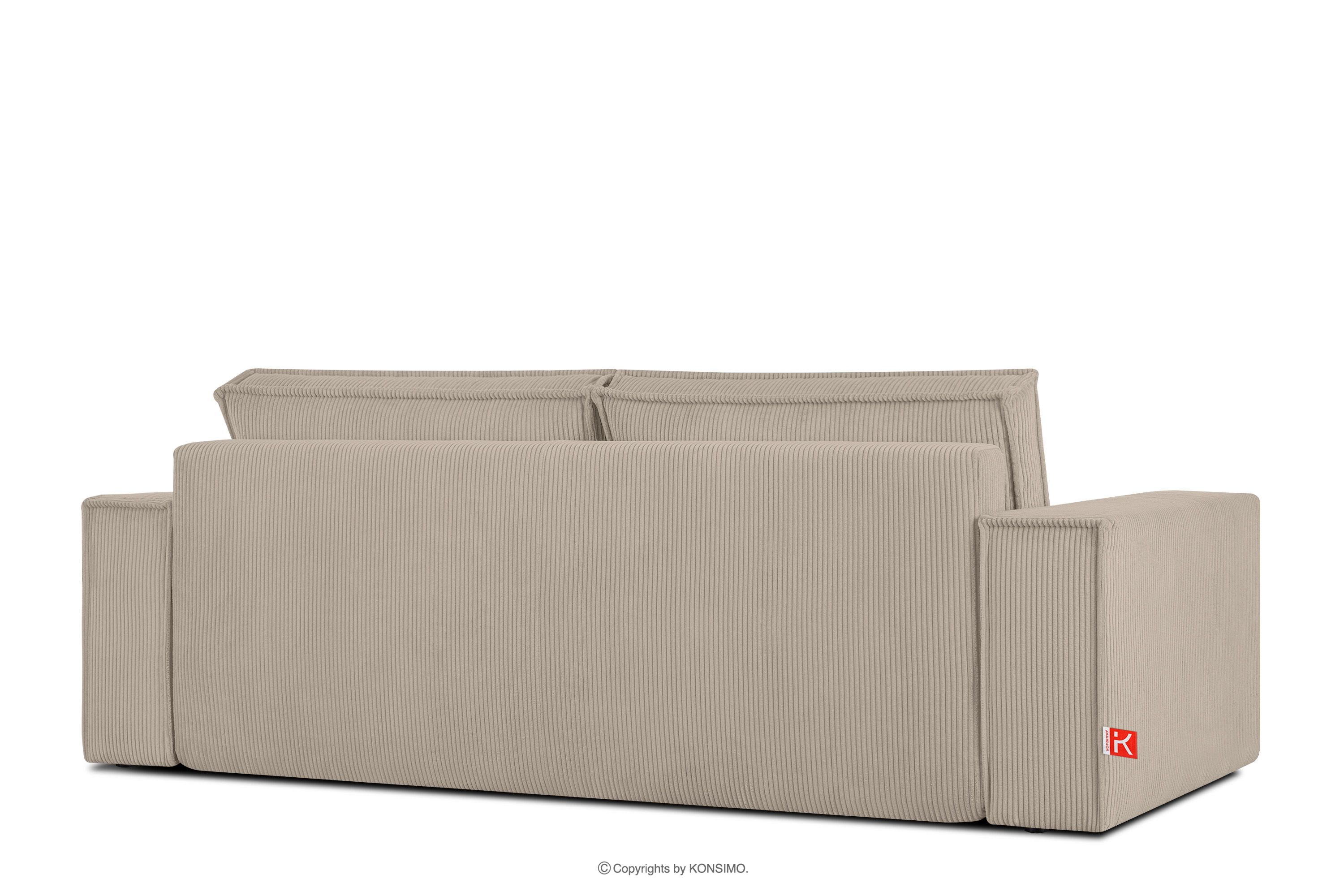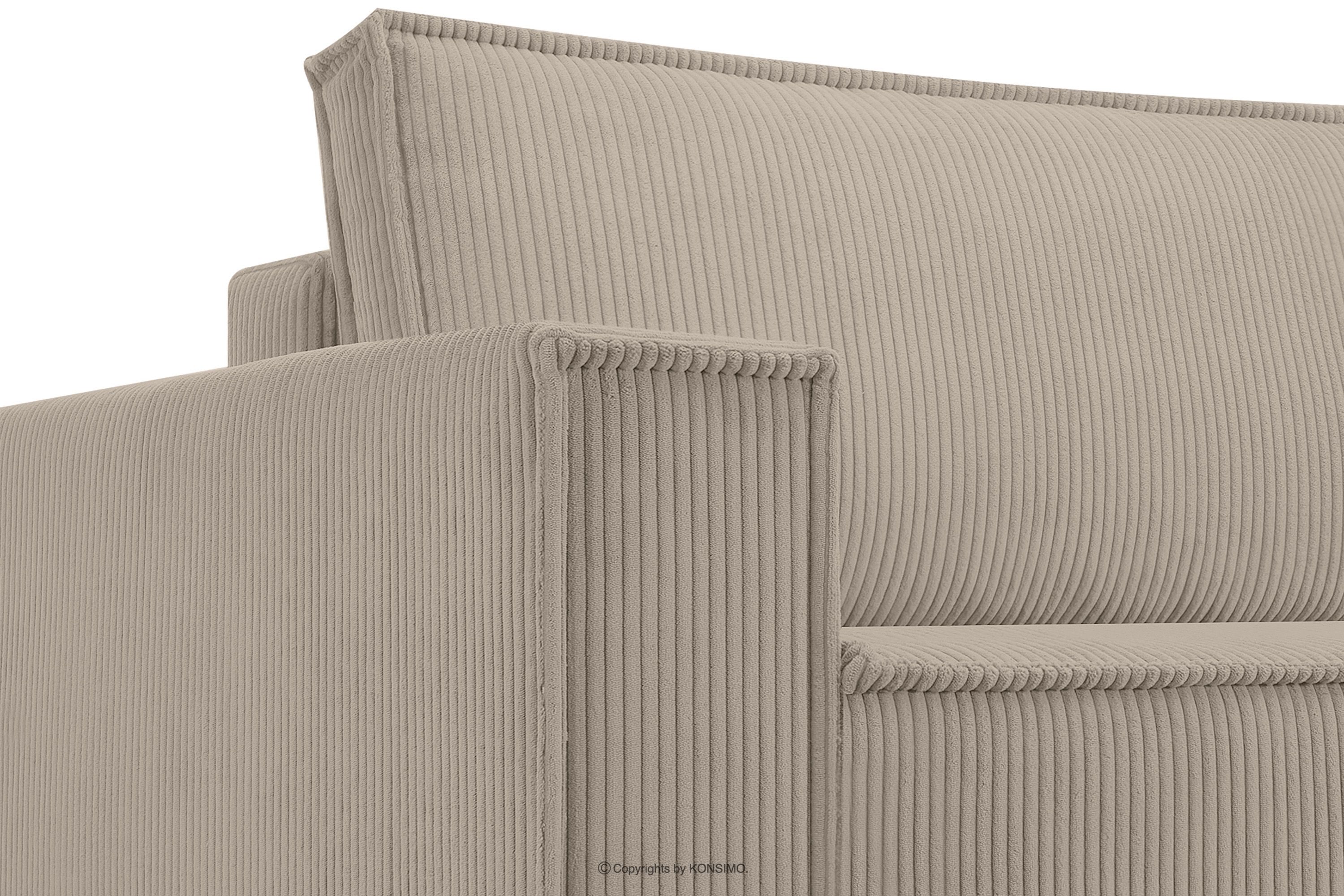 Trojmiestna pohovka s kontajnerom na lôžkoviny v béžovej farbe je kus nábytku v modernistickom štýle. Jej charakteristické široké boky ju vyčleňujú z radu štandardného nábytku. To je však len začiatok jej mimoriadnych možností. Opierkové vankúše poskytujú dokonalú oporu pre váš chrbát a navyše vďaka svojim veľkým rozmerom vyzerajú skvele. Celé čalúnenie tohto výnimočného kusu nábytku je vyrobené z manšestrovej látky, ktorá je nielen príjemná na dotyk, ale aj si dlho zachováva svoj neporušený vzhľad.