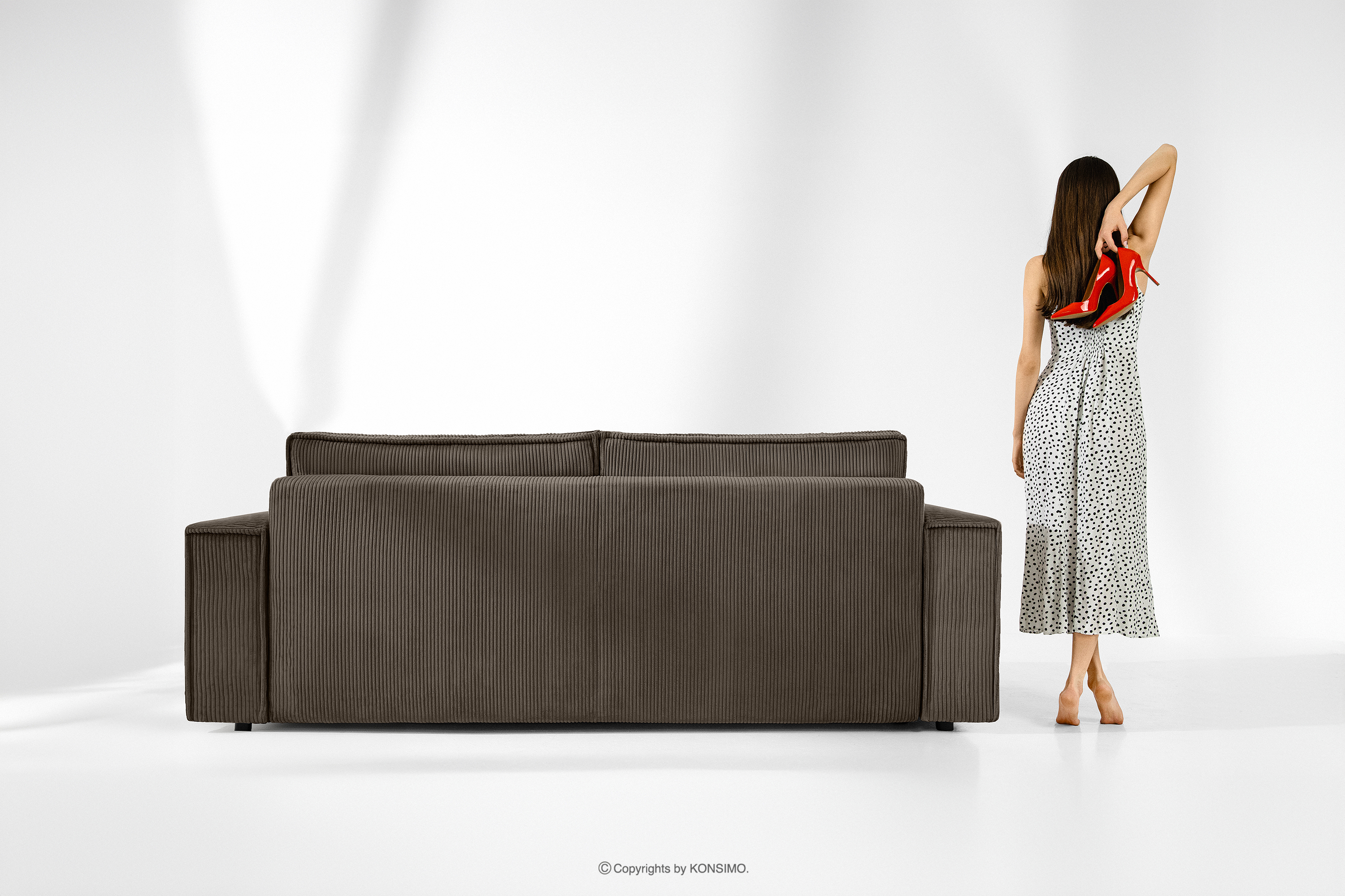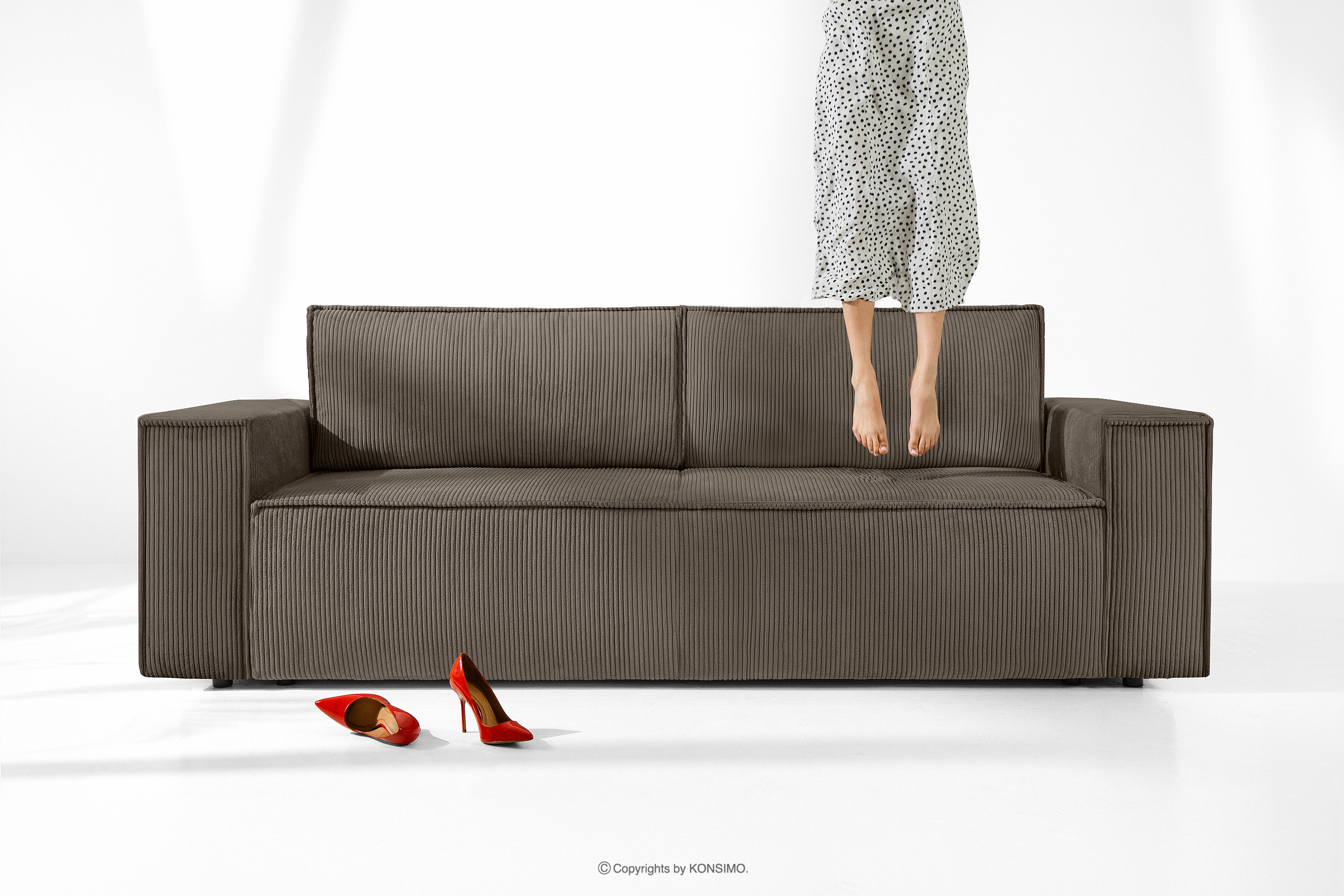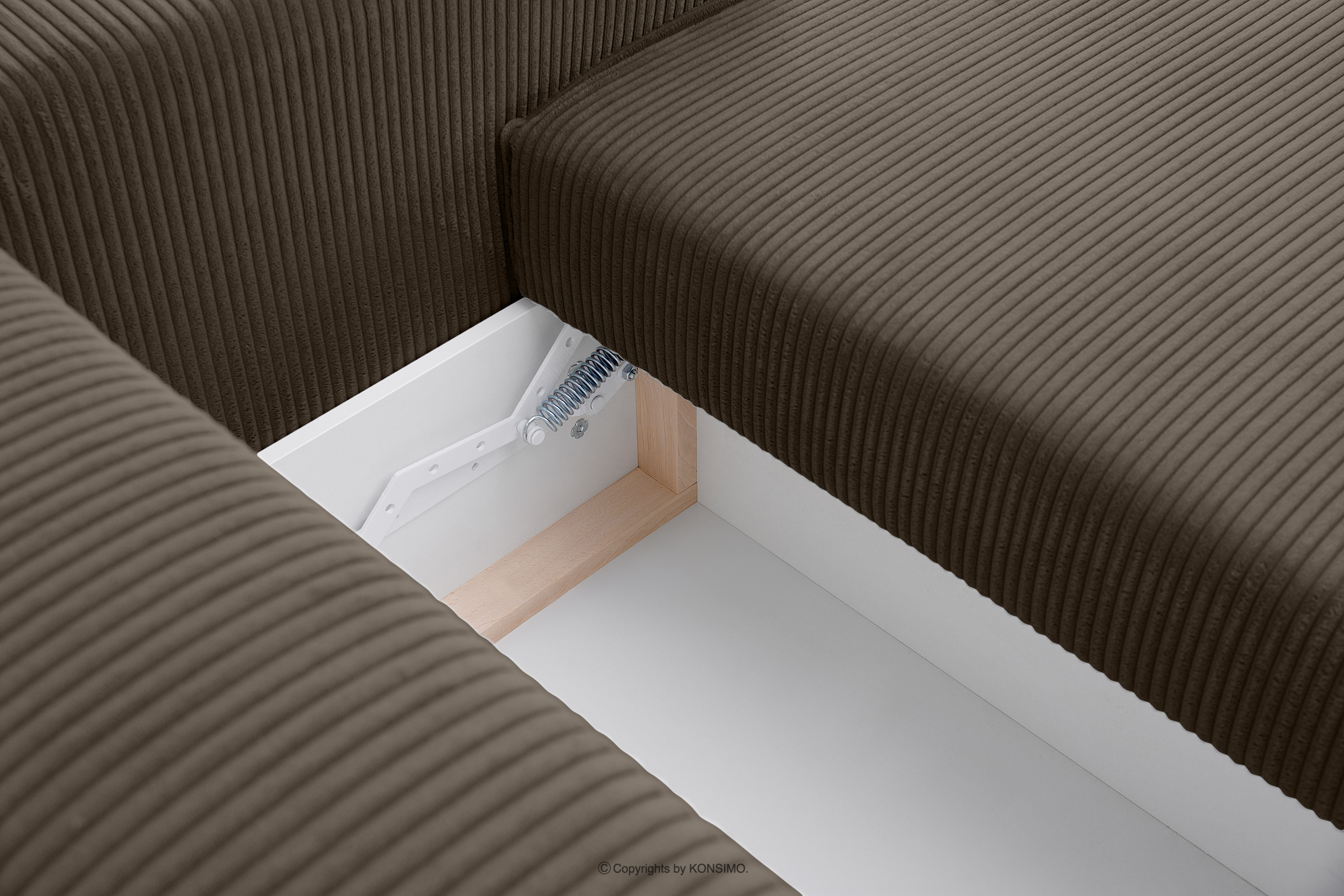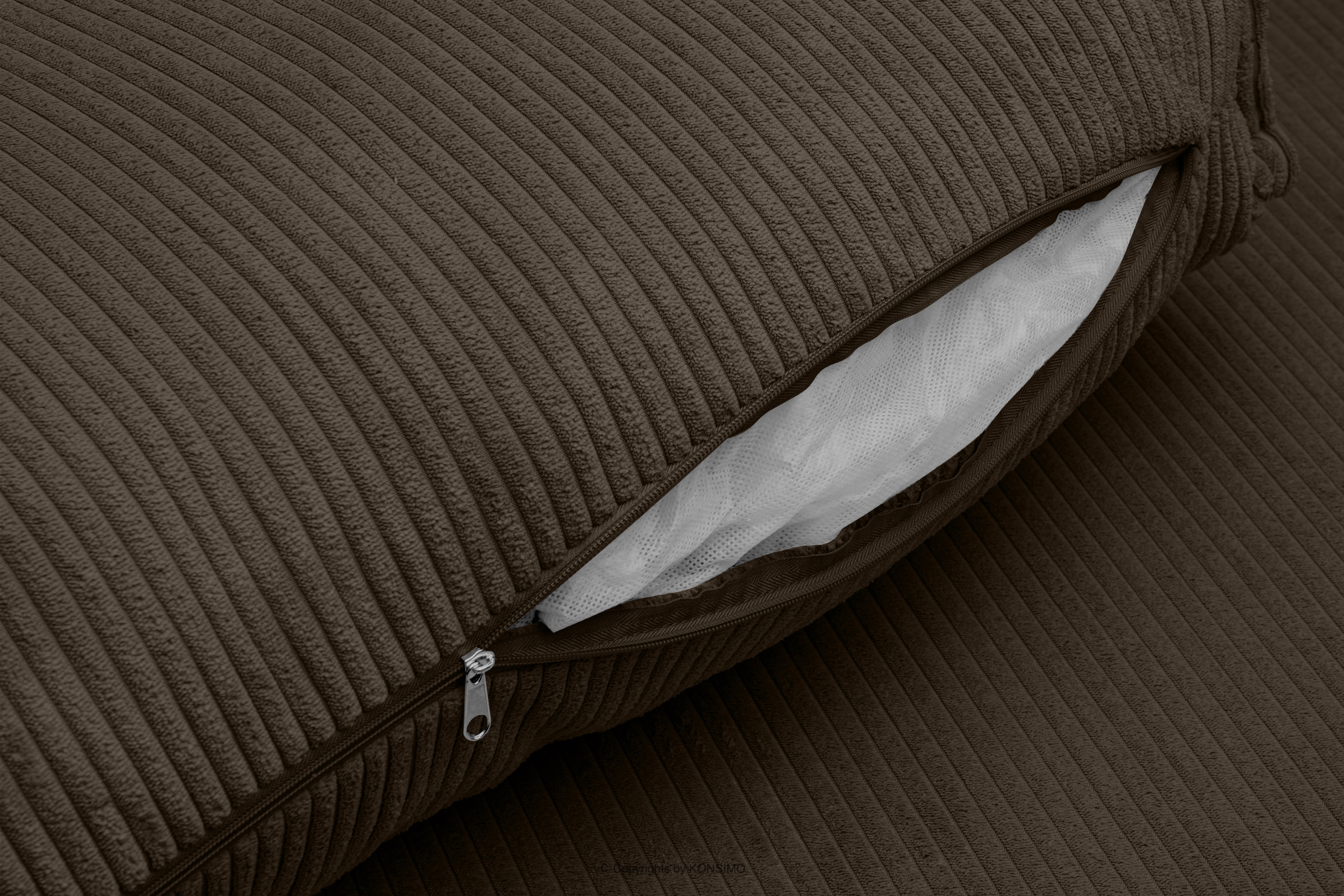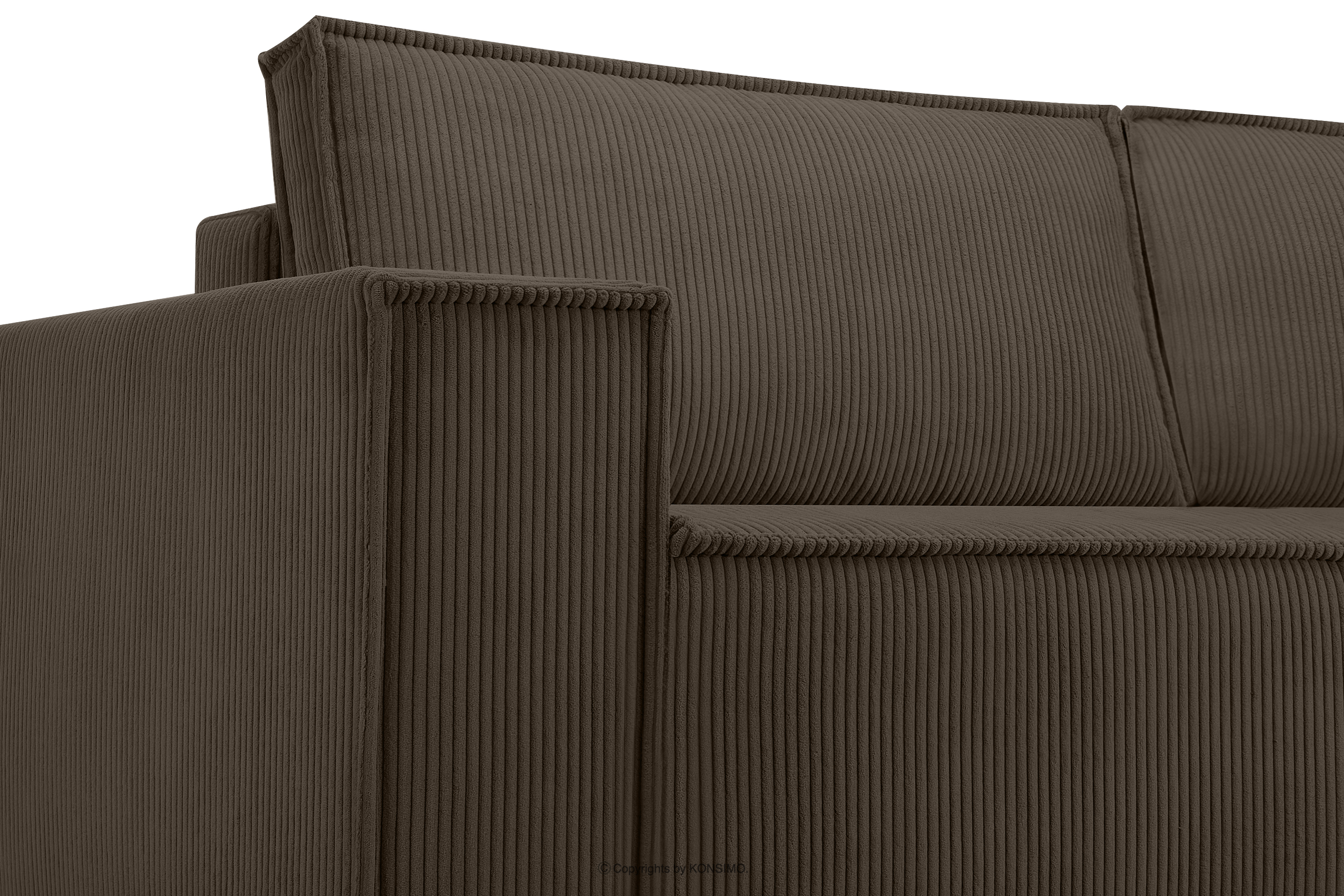 Trojmiestna pohovka s kontajnerom na lôžkoviny v hnedej farbe je kus nábytku v modernistickom štýle. Jej charakteristické široké boky ju vyčleňujú z radu štandardného nábytku. To je však len začiatok jej mimoriadnych možností. Opierkové vankúše poskytujú dokonalú oporu pre váš chrbát a navyše vďaka svojim veľkým rozmerom vyzerajú skvele. Celé čalúnenie tohto výnimočného kusu nábytku je vyrobené z manšestrovej látky, ktorá je nielen príjemná na dotyk, ale aj si dlho zachováva svoj neporušený vzhľad.