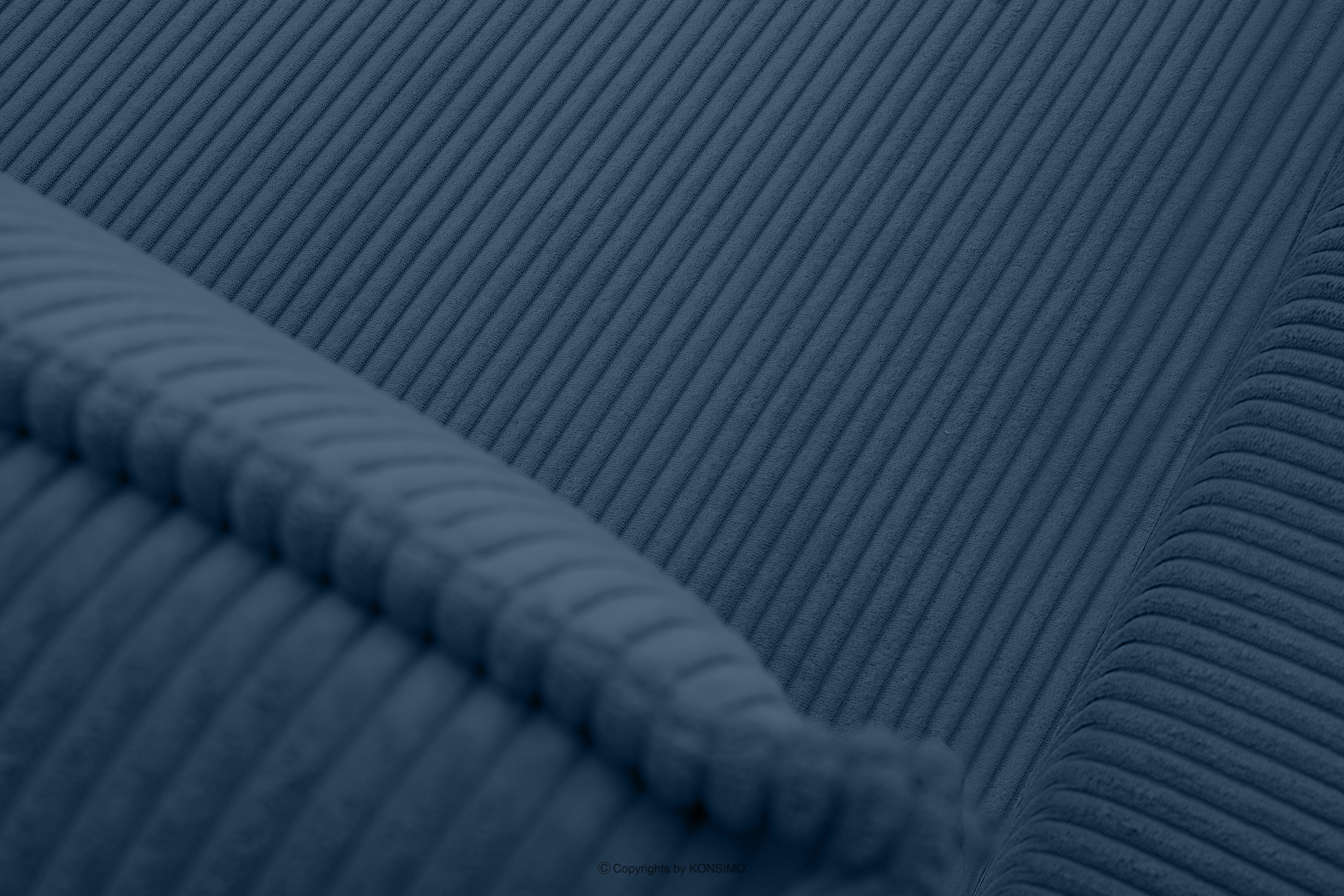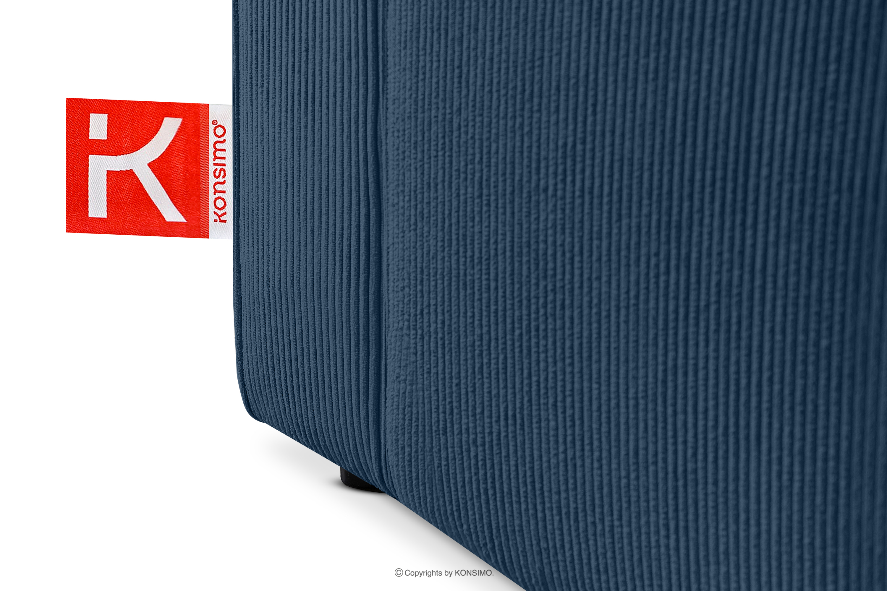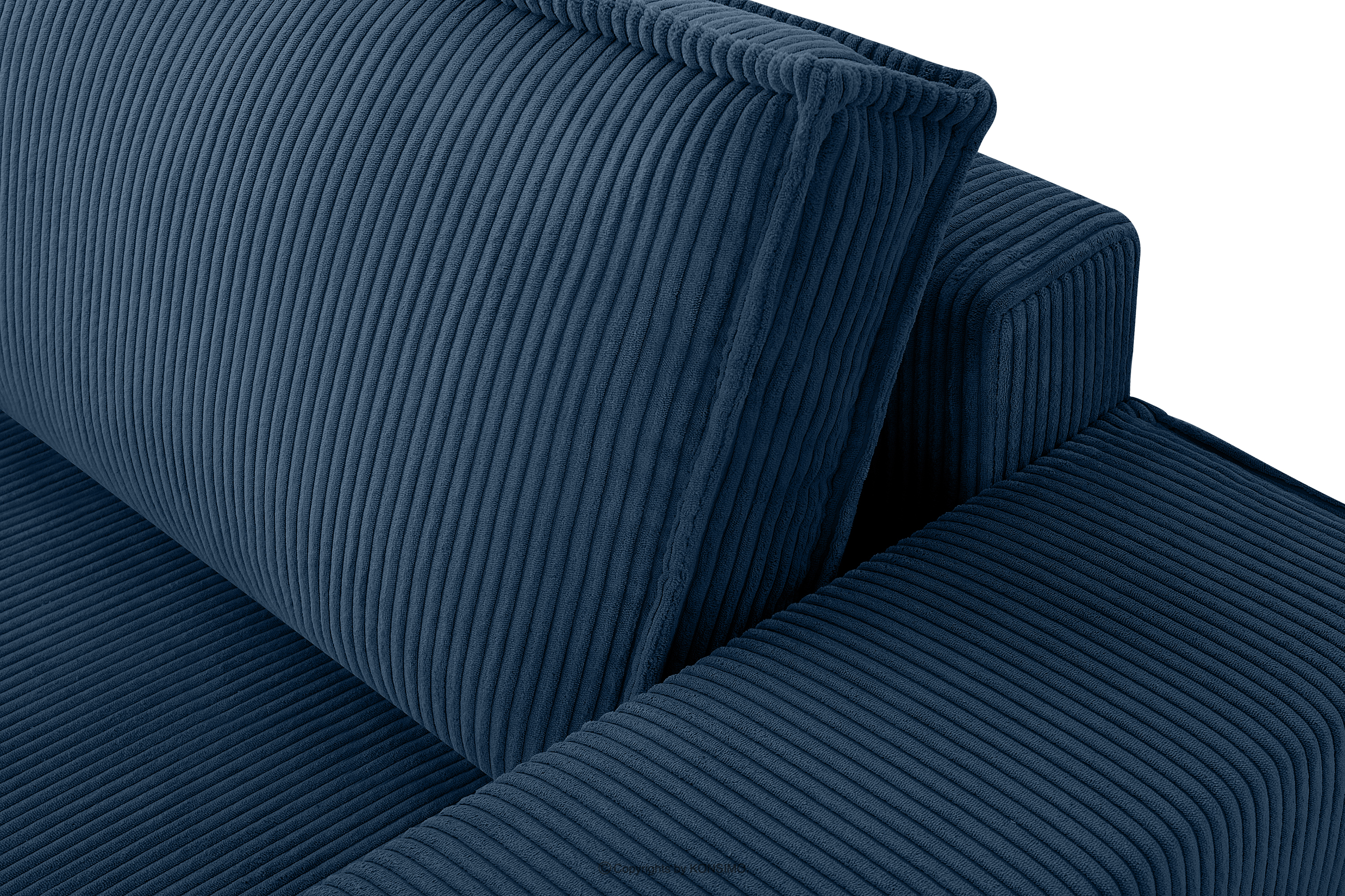 Trojmiestna pohovka s kontajnerom na posteľnú bielizeň námornícka modrá je kus nábytku v modernistickom štýle. Jej charakteristické široké boky ju vyčleňujú z radu štandardného nábytku. To je však len začiatok jej mimoriadnych možností. Opierkové vankúše sú dokonalou oporou pre váš chrbát a vďaka svojim veľkým rozmerom aj skvele vyzerajú. Celé čalúnenie tohto výnimočného kusu nábytku je vyrobené z manšestrovej látky, ktorá je nielen príjemná na dotyk, ale aj si dlho zachováva neporušený vzhľad.