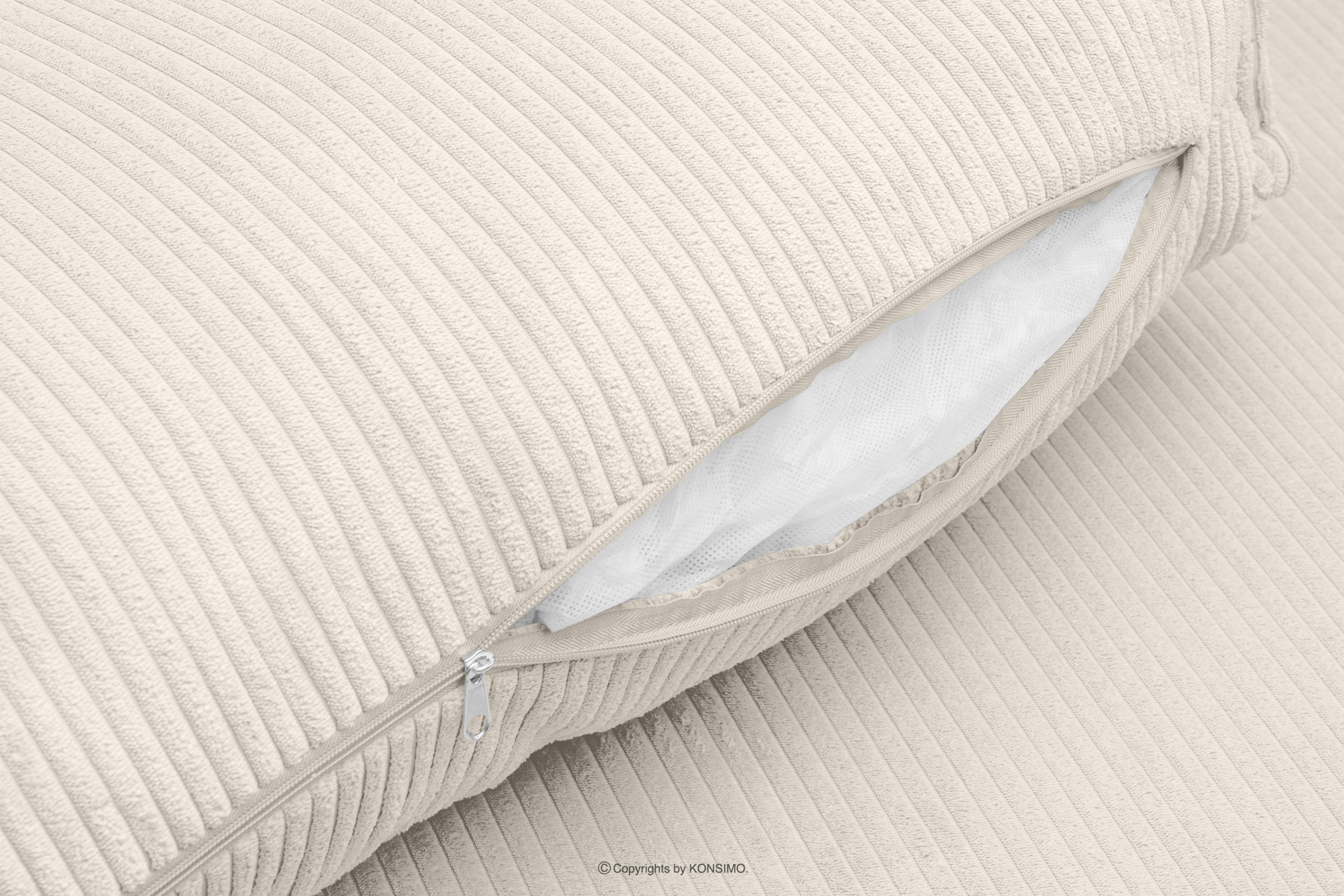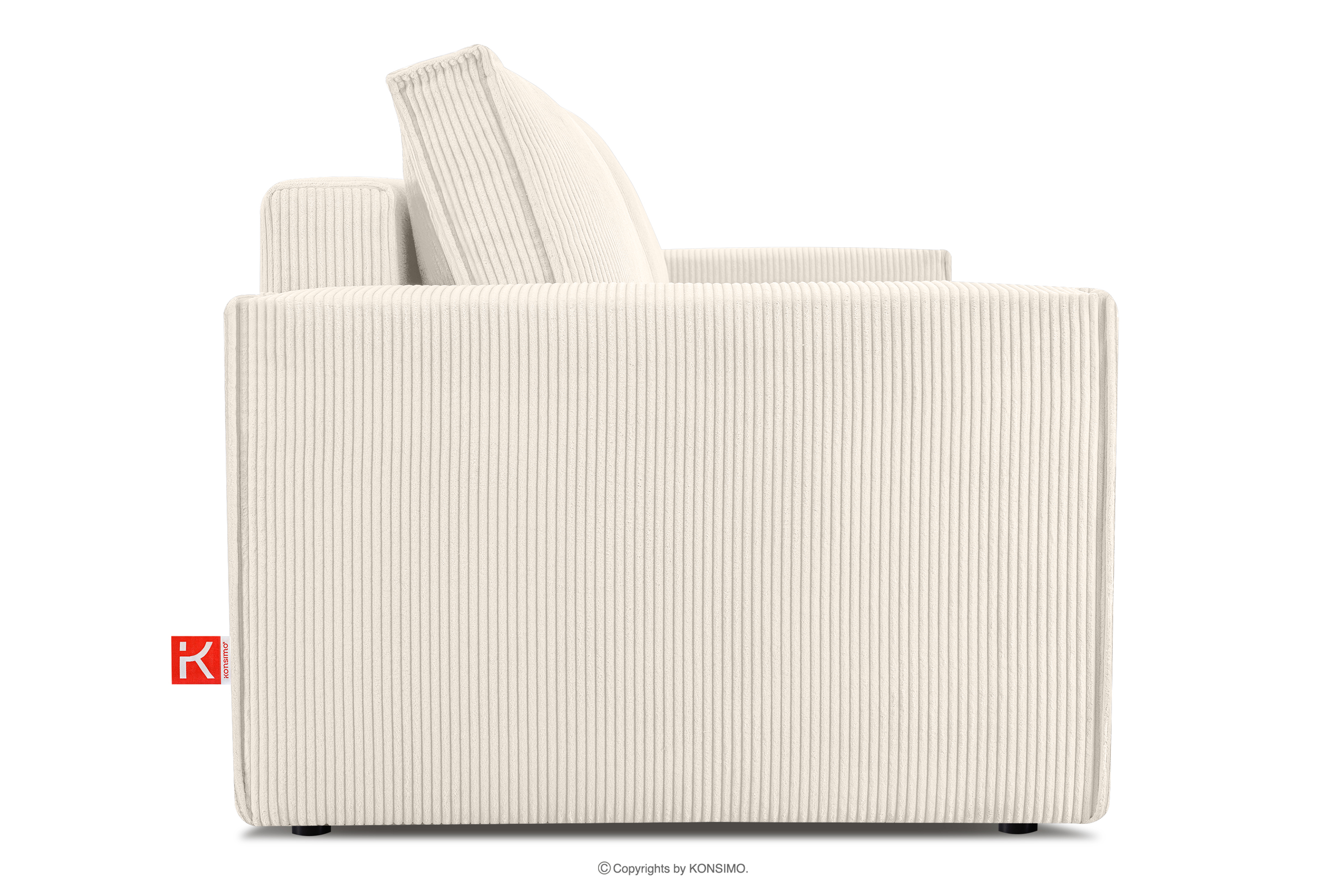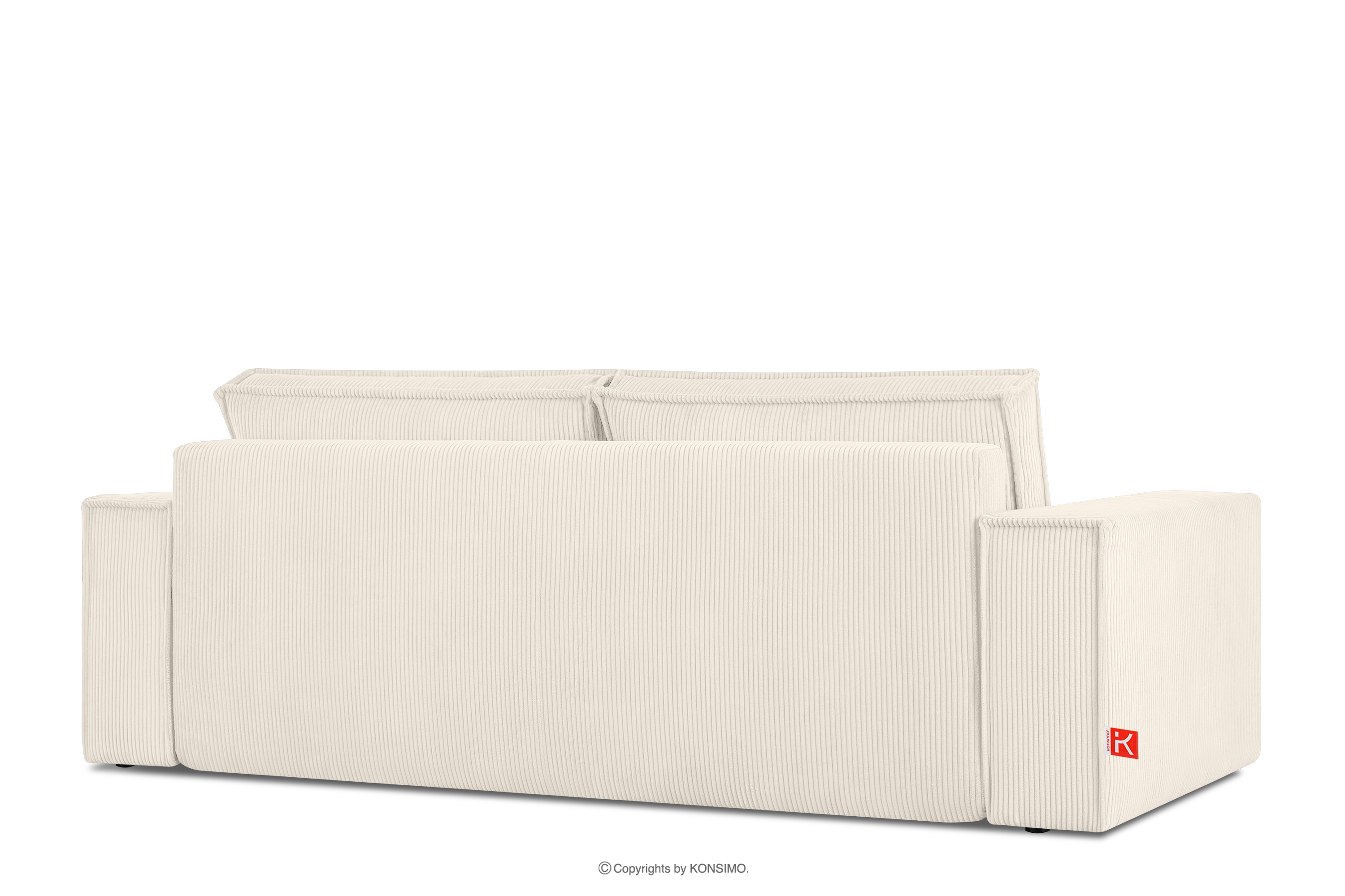 Trojmiestna pohovka s kontajnerom na lôžkoviny ecru je kus nábytku v modernistickom štýle. Jej charakteristické široké boky ju vyčleňujú z radu štandardného nábytku. To je však len začiatok jej mimoriadnych možností. Opierkové vankúše poskytujú ideálnu oporu pre váš chrbát a vďaka svojim veľkým rozmerom aj skvele vyzerajú. Celé čalúnenie tohto výnimočného kusu nábytku je vyrobené z manšestrovej látky, ktorá je nielen príjemná na dotyk, ale aj si dlho zachováva neporušený vzhľad.